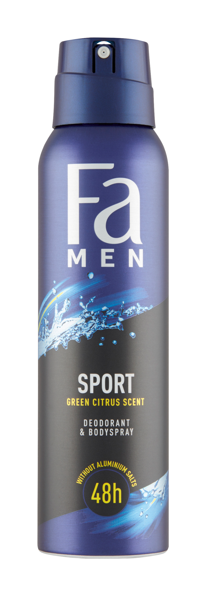 ODVAŽ SE OBJEVOVAT S FA! Osvěžte své tělo a mysl a nechejte své smysly objevit každý den jiný svět se značkou Fa. Osvěžte své tělo a mysl s deodorantem Fa Sport s vůní zelených citrusů. LEPŠÍ PRO VÁS I PLANETU - až 48 h ochrana proti vlhkosti a tělesnému pachu - bez obsahu hliníkových solí - s inspirativní vůní zelených citrusů - šetrné složení pro pokožku - doporučují 4/5 spotřebitelů*