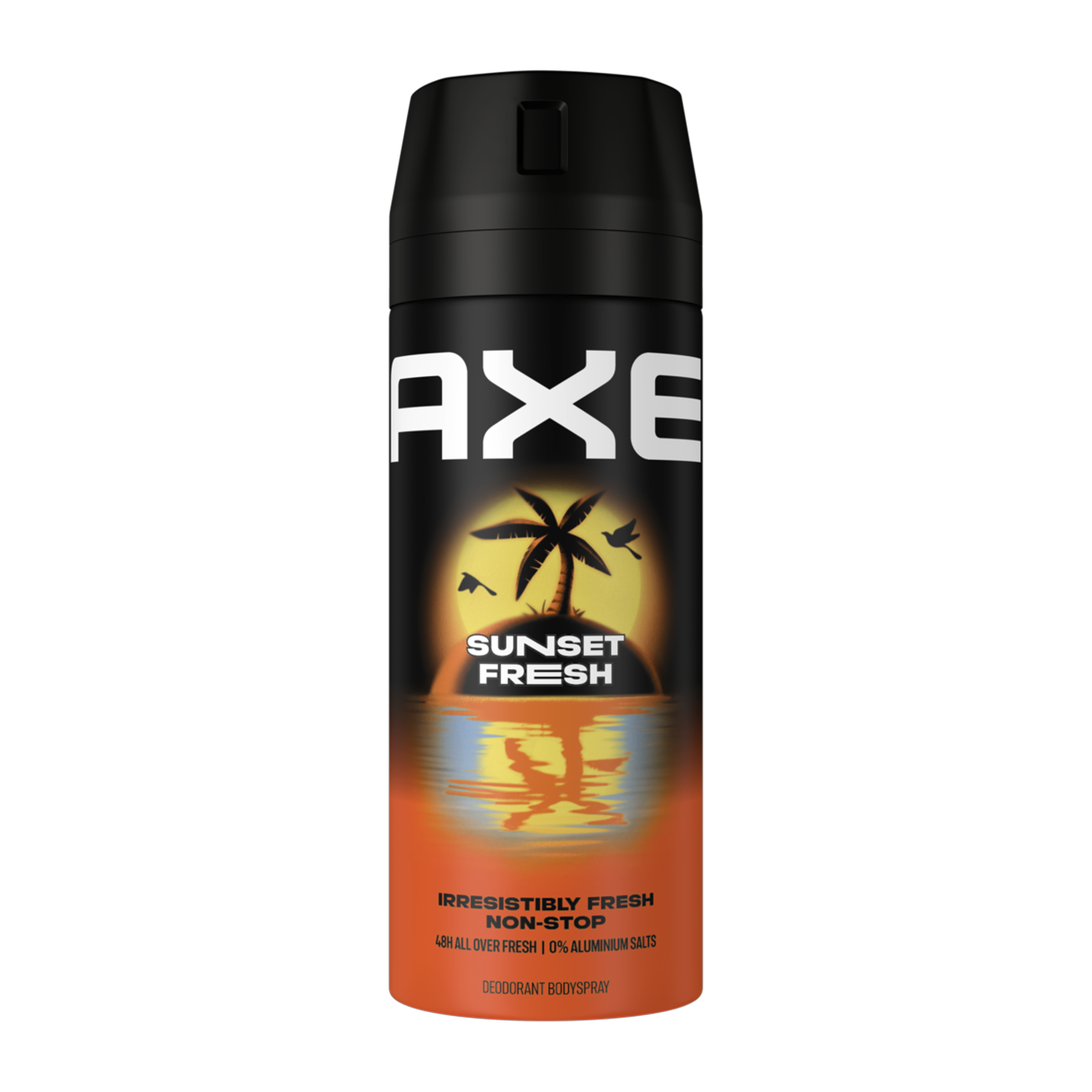 Pánský deodorant ve spreji AXE Sunset Fresh. Sofistikovaná vůně využívá to nejlepší z přírody a kombinuje neodolatelnou vůni palmových listů a ambry. Spolehlivá a dlouhotrvající ochrana proti zápachu až 48 hodin. AXE Sunset Fresh tě provede jakýmkoli každodenním dobrodružstvím! Chrání Tvůj styl. Každý den. Spolehlivě. Používej ráno do podpaží pro celodenní ochranu proti zápachu.