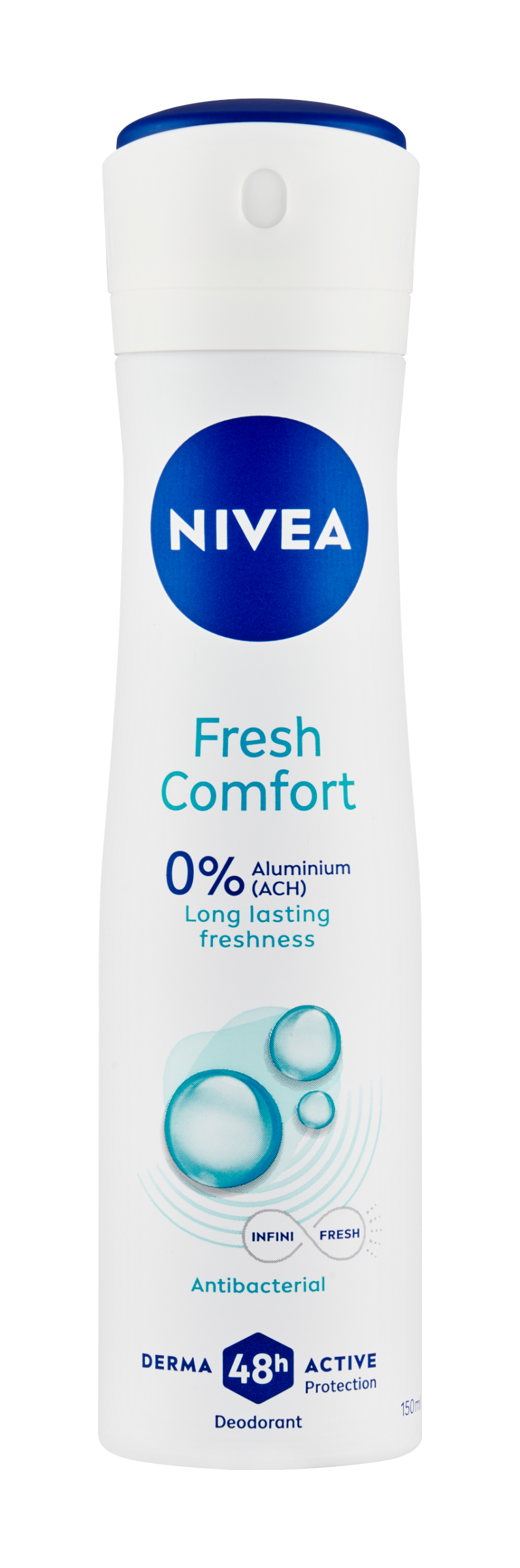 Buďte bez obav s Nivea sprej deodorant Fresh Comfort. Pomáhá proti nadměrnému pocení a zápachu až na 48h.