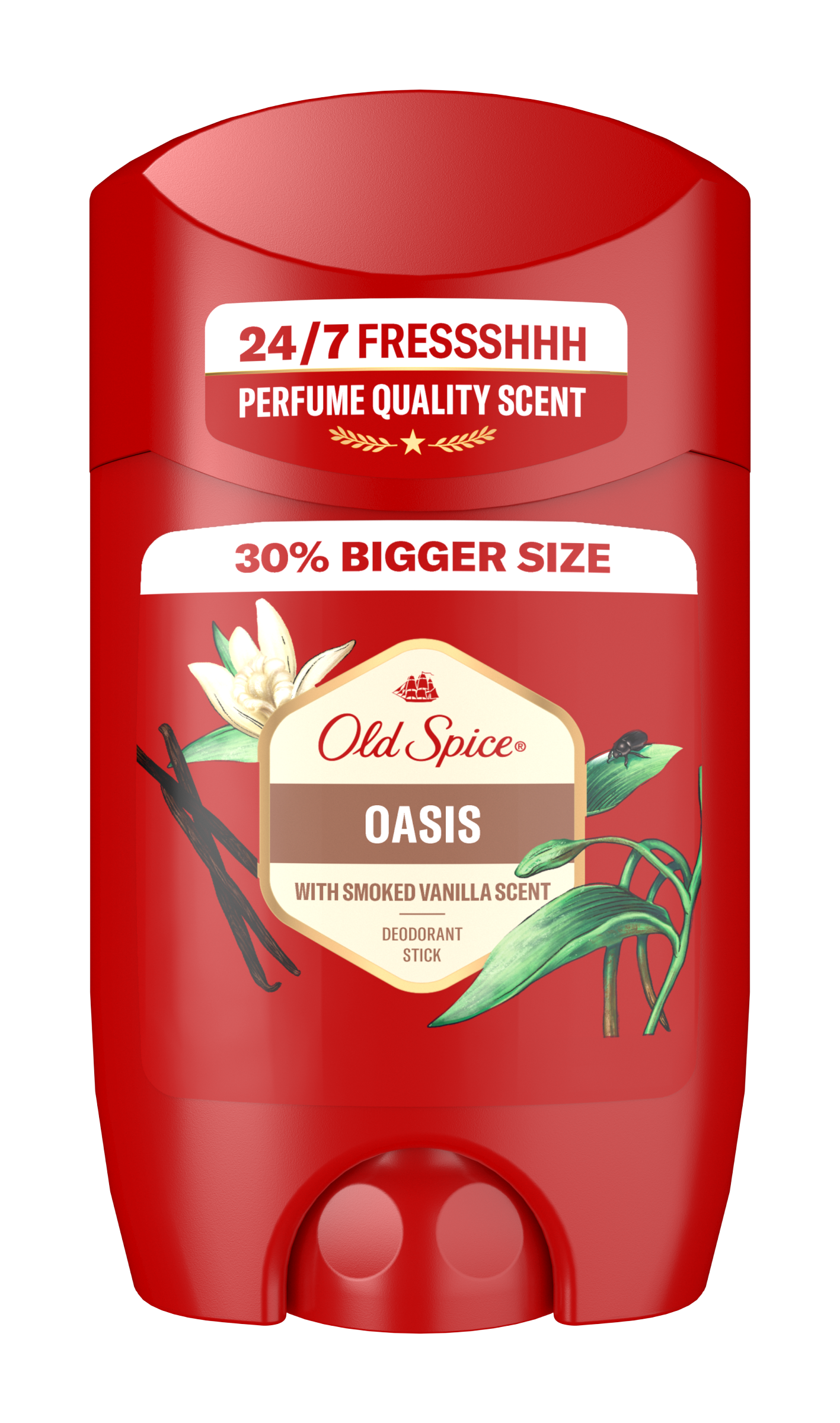 Dopřej si svěžest* 24 hodin denně, 7 dní v týdnu a voňtastické sebevědomí díky tuhému deodorantu pro muže Old Spice Oasis. A s touto úrovní bezstarostné svěžesti se můžeš soustředit na vyšší cíle, jako je uzavírání velkých obchodů nebo učení delfínů lidské řeči. Vyzkoušej tuhý deodorant pro silnou ochranu proti zápachu v podpaží díky suché a snadné aplikaci (v porovnání s deodorantem ve spreji Old Spice). Uvolněte složení 3x Active Defence: Dlouhotrvající vůně / ochrana před zápachem / se složkami proti zápachu, takže budete vonět legendárně 24 hodin denně, 7 dní v týdnu*. Vůně s gurmánským nádechem kouřově sladké vanilky a bohaté směsi jantaru s ovocnými tóny a ostružinou vytváří vůni, která bude jako dovolená pro tvé smysly. A zmínili jsme, že neobsahuje žádné hliníkové soli a zároveň je neviditelný na černém i bílém oblečení? Protože je to tak.