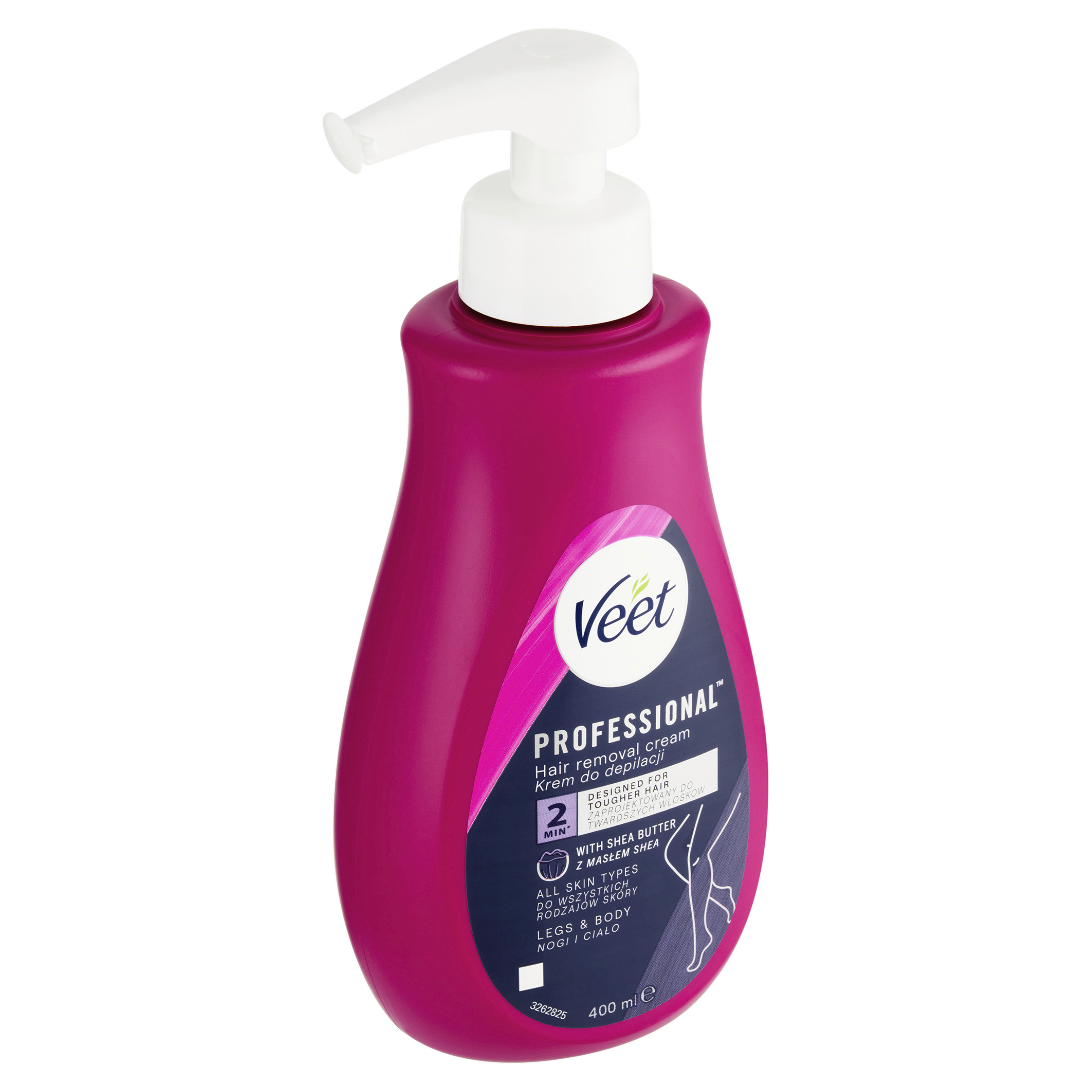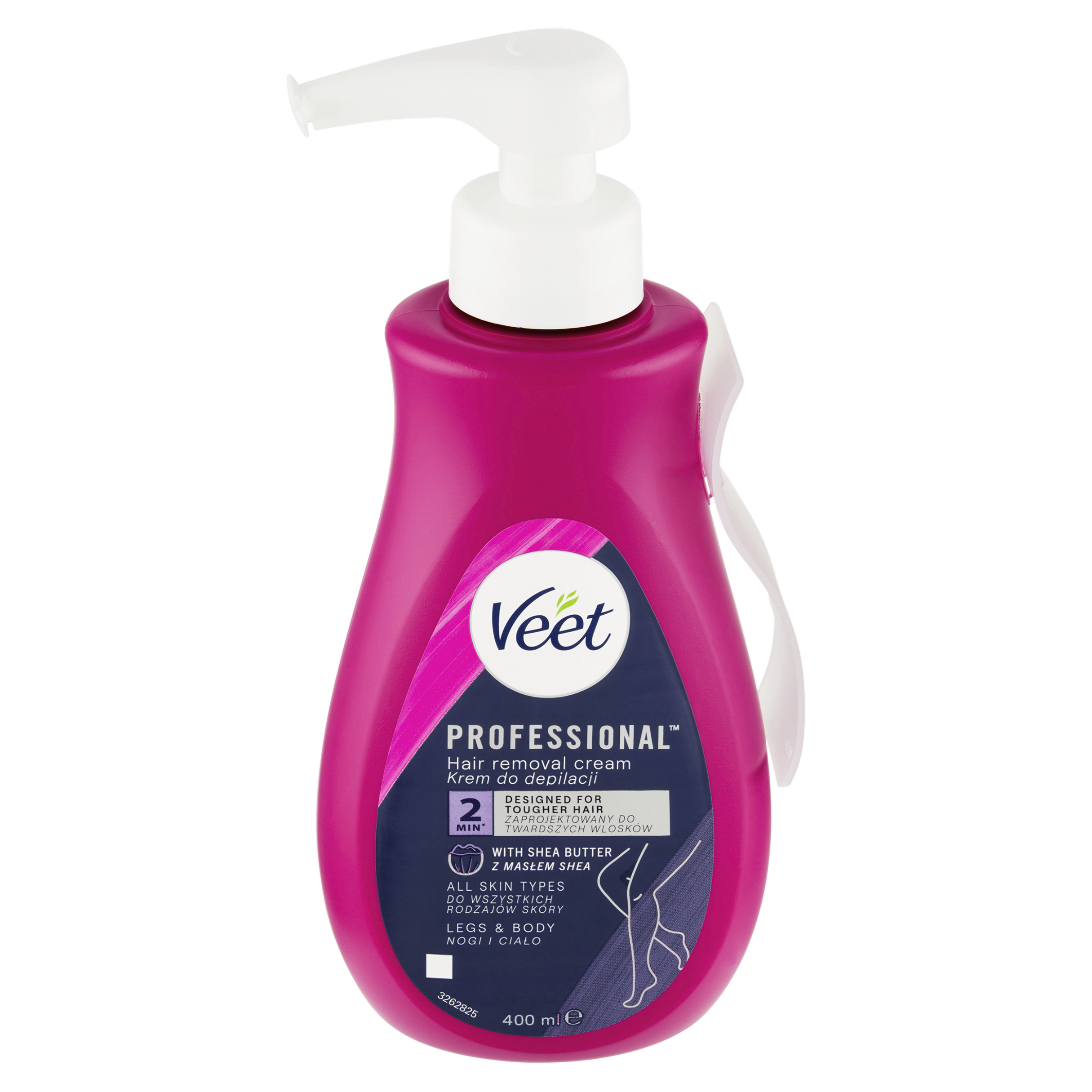 Veet Professional™ depilační krém na nohy a tělo obsahuje bambucké máslo a je obohacen o hydratační složku přirozeně se vyskytující v pokožce. Je navržen pro hůře odstranitelné chloupky, je účinný od 2 minut a udržuje pokožku hydratovanou po dobu 48 hodin. Vhodné pro všechny typy pokožky, včetně citlivé.