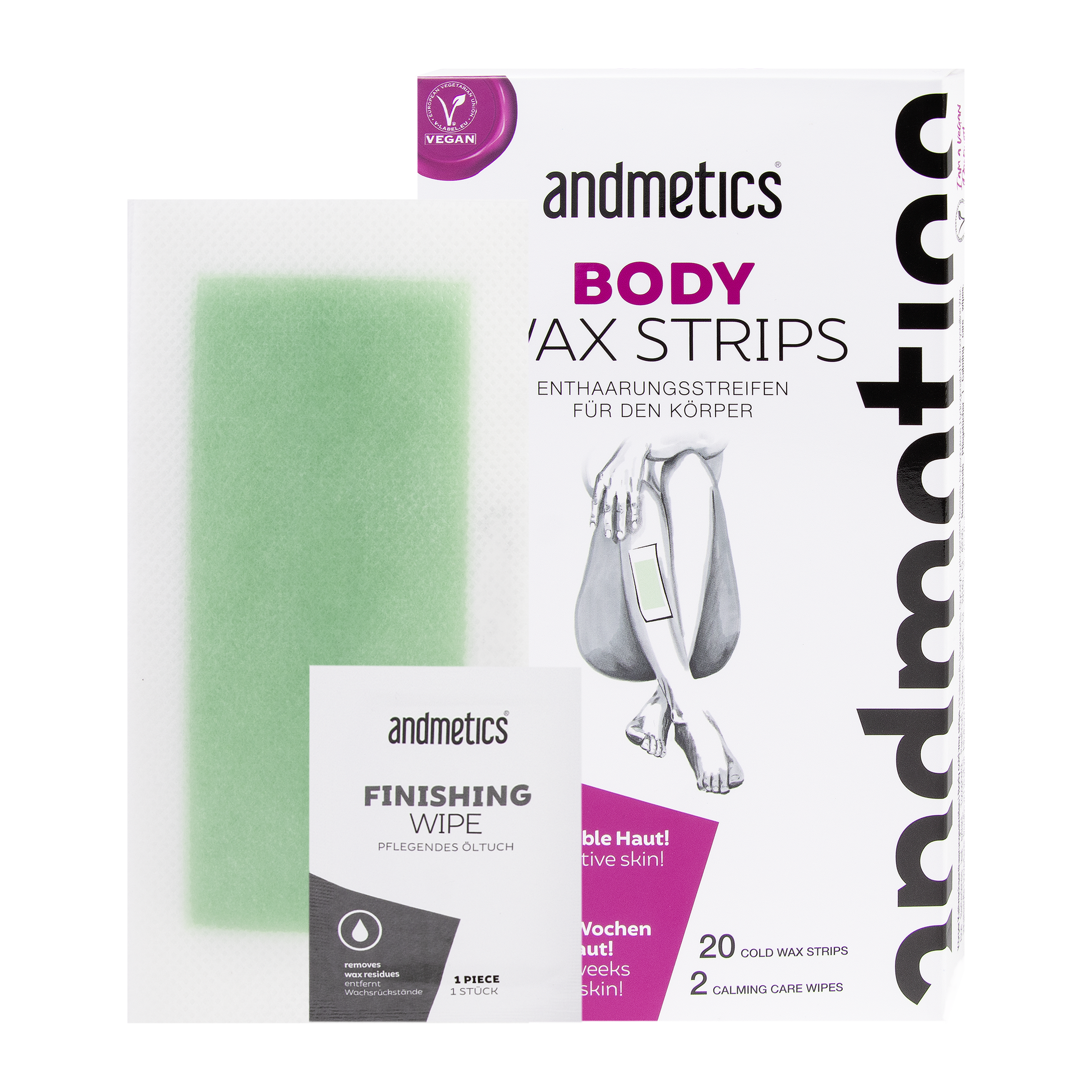 Voskové pásky Andmetics Body na celé tělo odstraňují chloupky během několika minut a lze je použít na nohy, ruce nebo záda v pohodlí vašeho domova. Aplikace je snadná a bezpečná. Proužky jsou připravené k použití - není třeba je před použitím předehřívat. Vysoce kvalitní proužky jsou veganské a obsahují zklidňující extrakt z aloe vera, aby se zabránilo podráždění citlivé pokožky. Ultra hladké výsledky vydrží až 4 týdny.