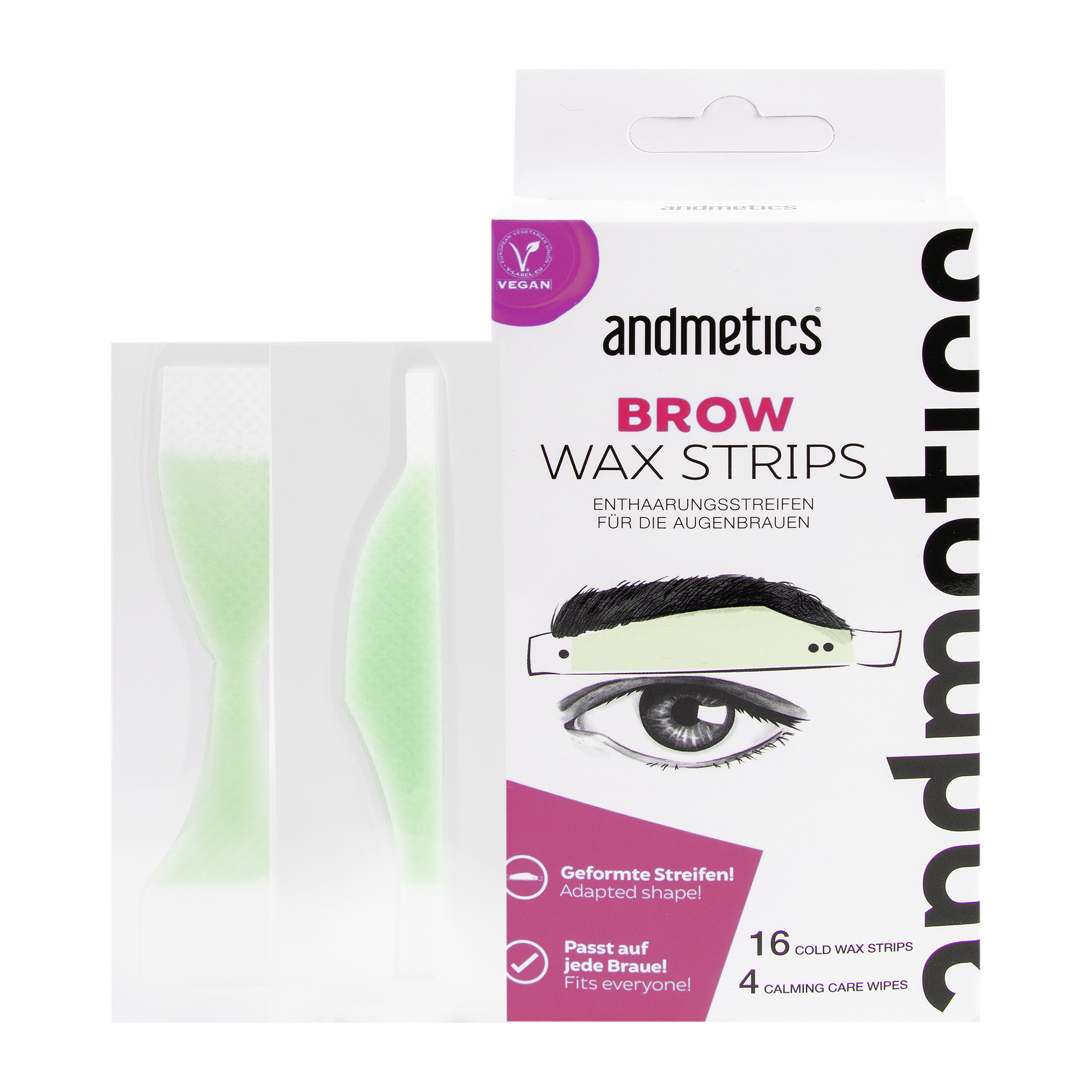 Voskové depilační pásky andmetics Brows vám během pouhých 2 minut vytvoří dokonalý tvar obočí, aniž byste museli navštívit kosmetický salon. Balení obsahuje dostatek pásků na 4 použití – vždy pro obě oči a oblast kořene nosu – a také 4 zklidňující ubrousky po depilaci. Depilační pásky zajišťují dokonale tvarované obočí, dodávají výrazu obličeje přirozený liftingový efekt. Odstraňují všechny přebytečné chloupky i s kořínky, požadovaný tvar obočí je zachován až po dobu 4 týdnů. Pásky lze použít také jako šablonu pro barvení obočí.