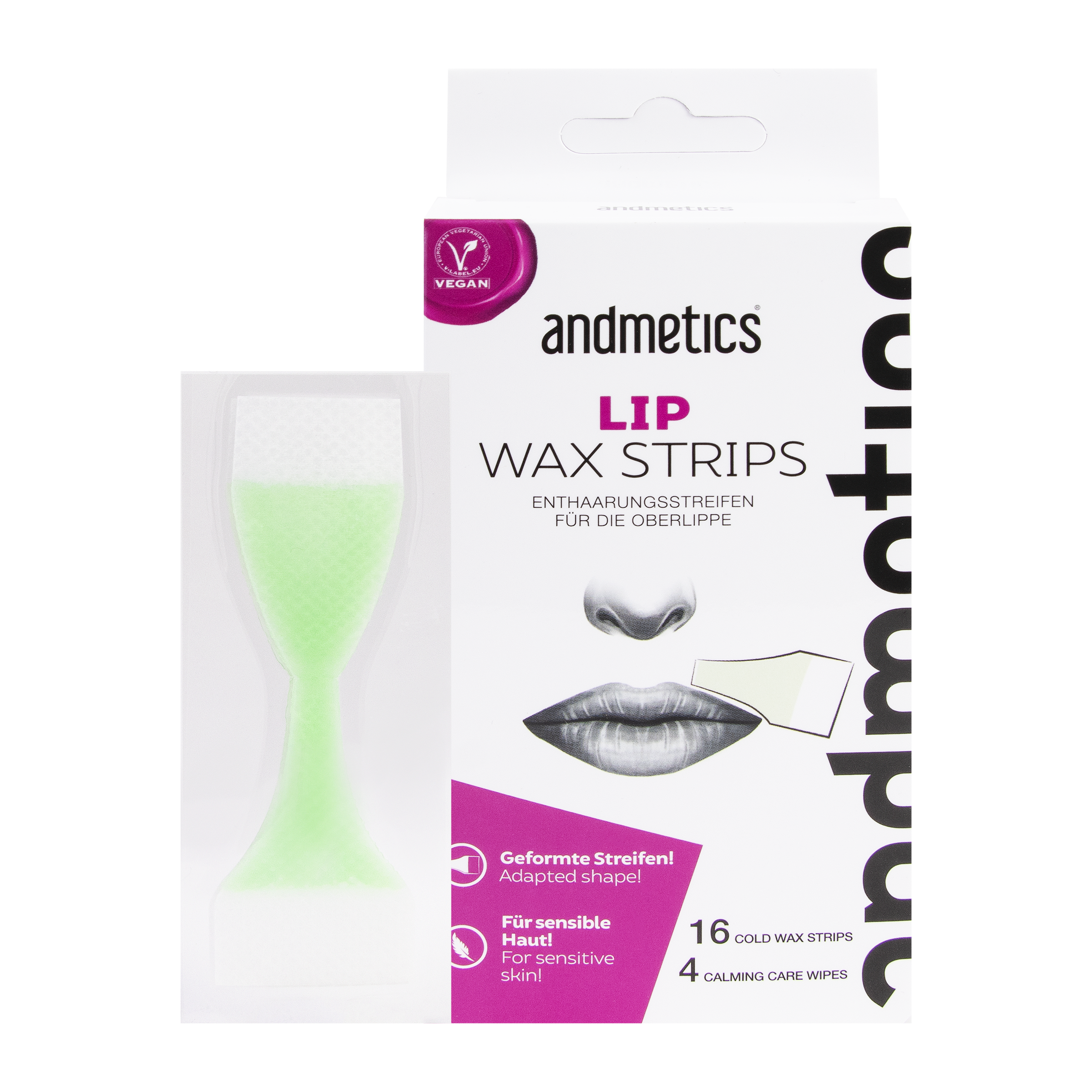 Depilační proužky Andmetics odstraní nad horním rtem všechny chloupky za pouhé 2 minuty. Jsou bezpečné a snadno se používají z pohodlí vašeho domova. Proužek je na rozdíl od tradičních obdélníkových proužků dokonale tvarován ke rtu pro přesné odstranění chloupků – bez zbytečného dráždění jiných oblastí. Chloupky jsou odstraněny až ke kořínkům a dorůstají hedvábně měkké až o 4 týdny později. Jsou rychlé a snadné, perfektní způsob, jak zjednodušit vaši kosmetickou rutinu.
