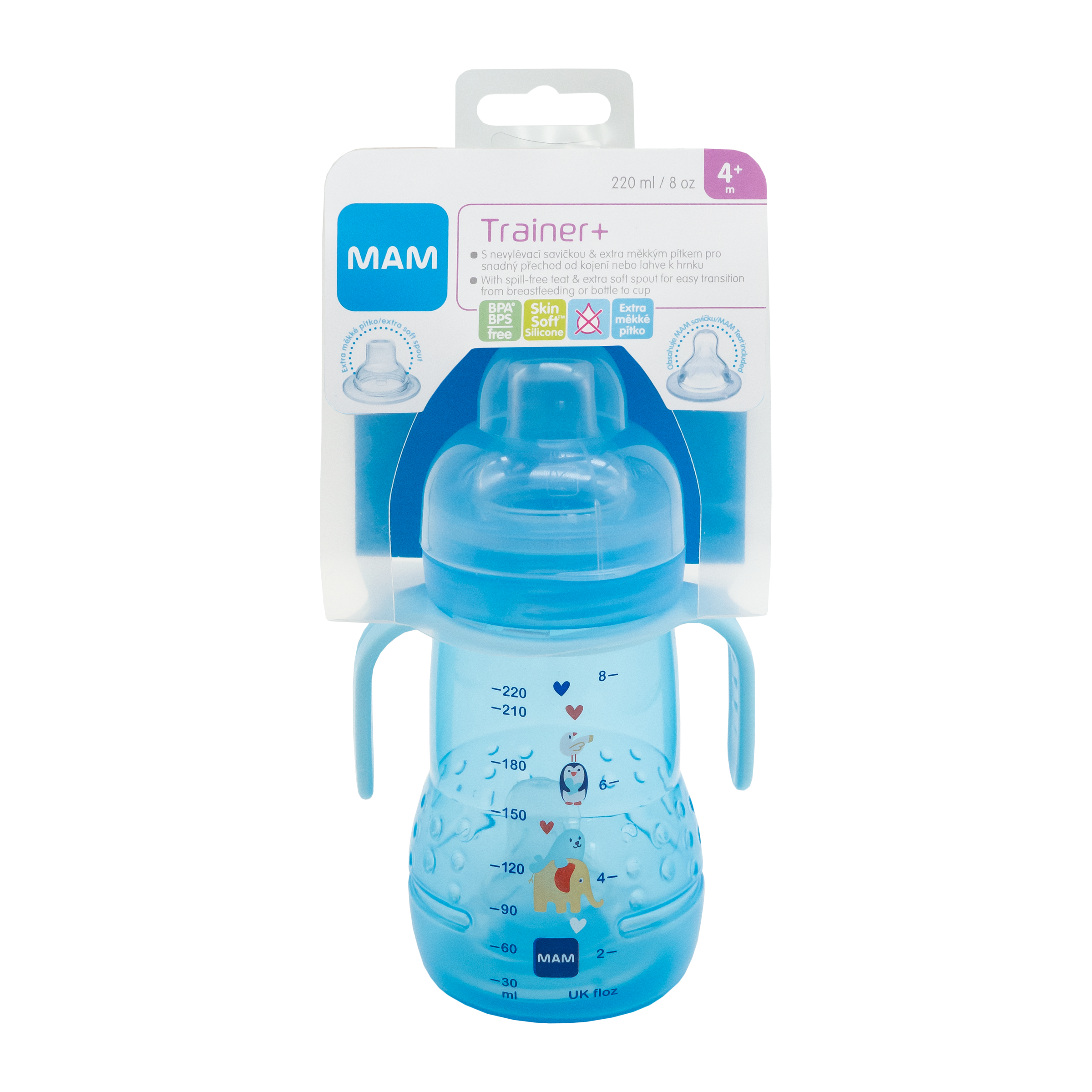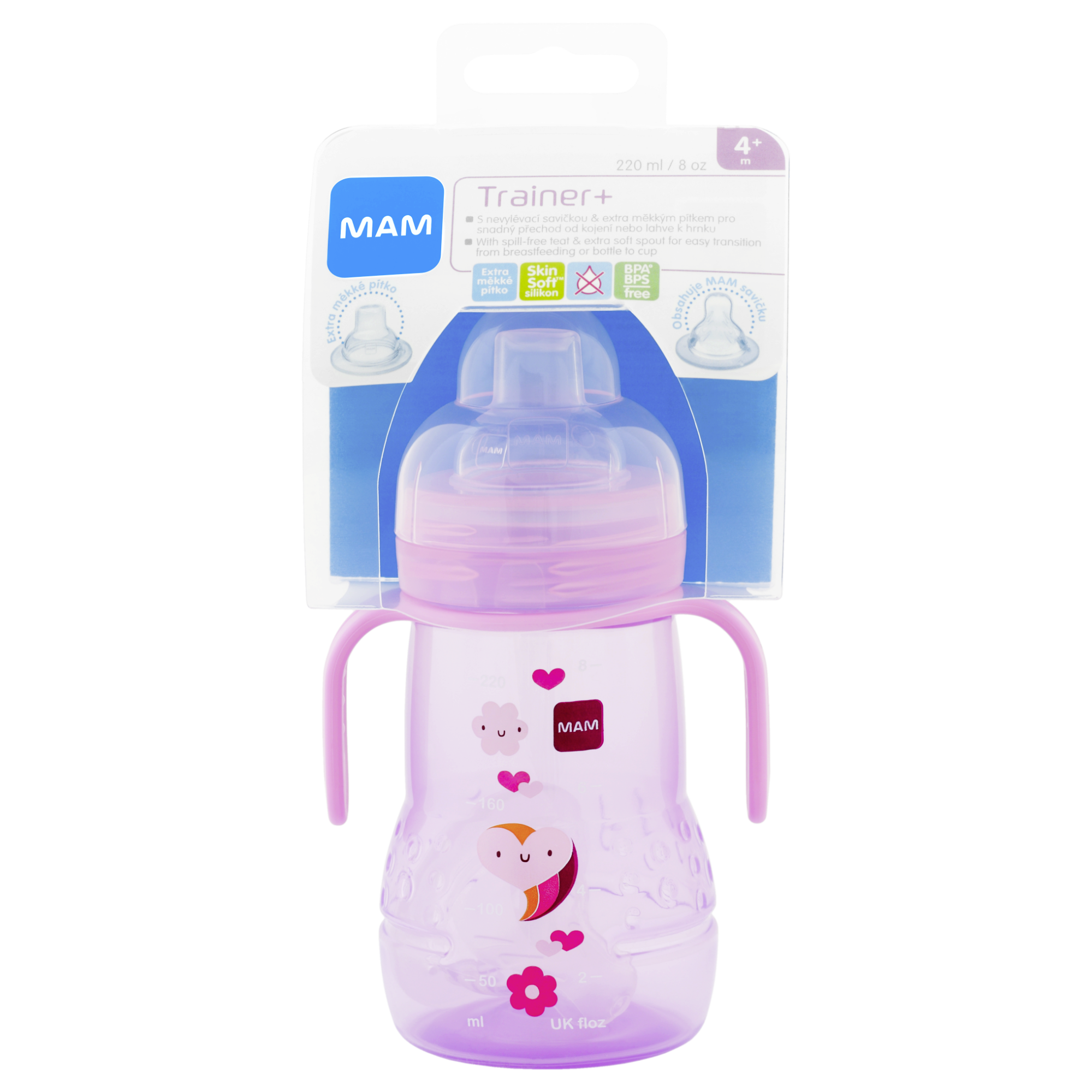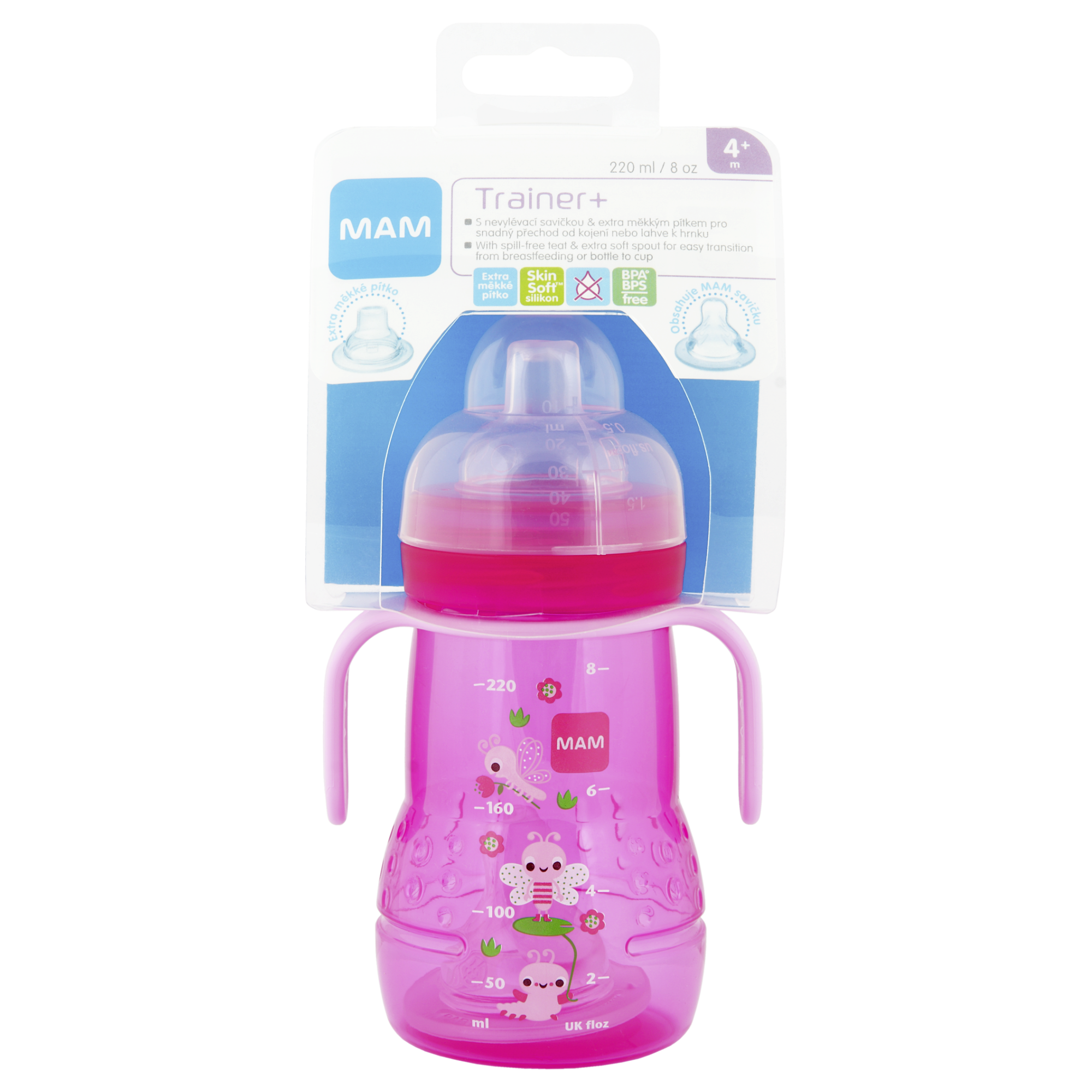 Dětský hrnek s nevylévacím pítkem Trainer MAM je určena pro děti od 6 měsíce a má široké hrdlo pro snadné plnění a čištění. Ideální měkké pítko brání vylití láhve.