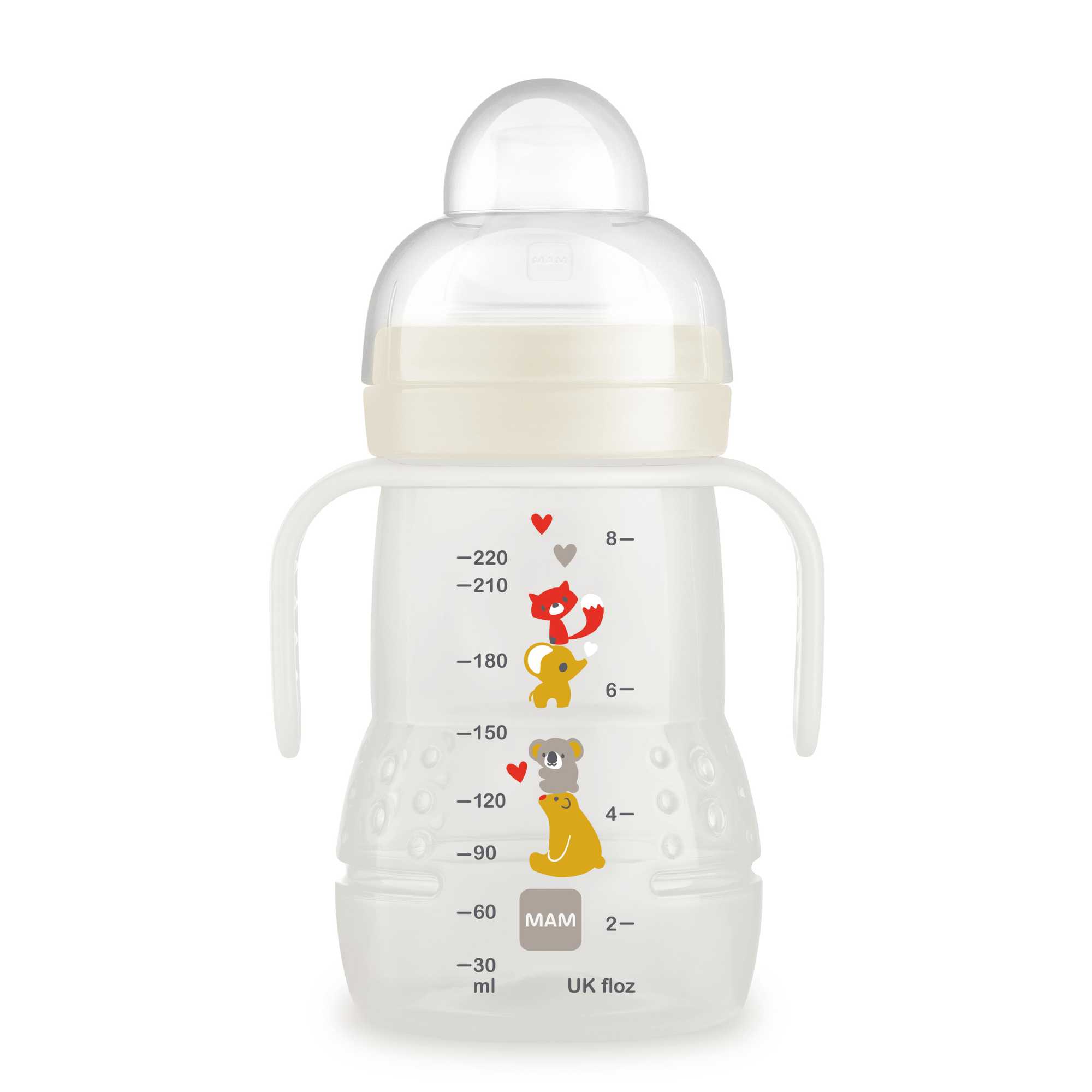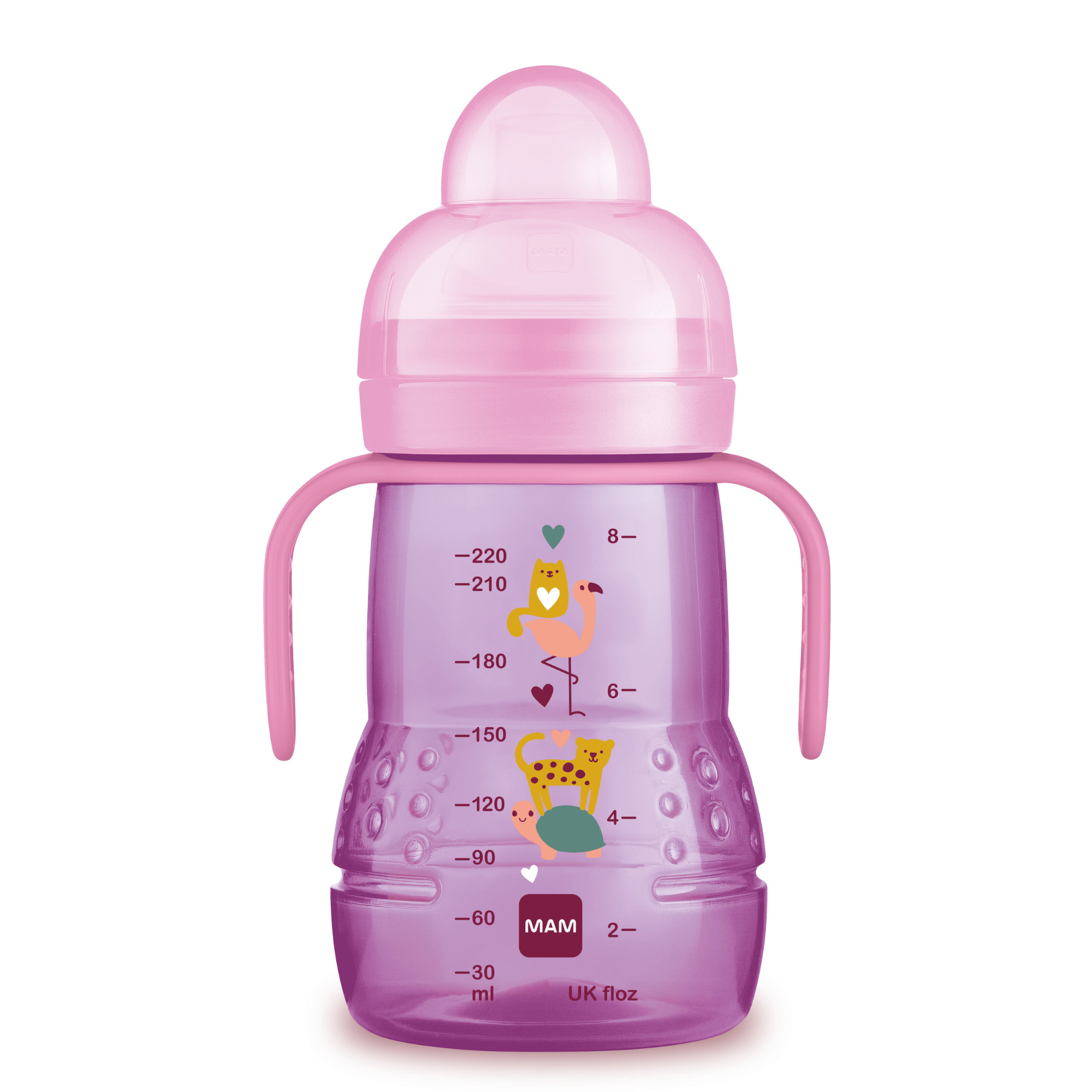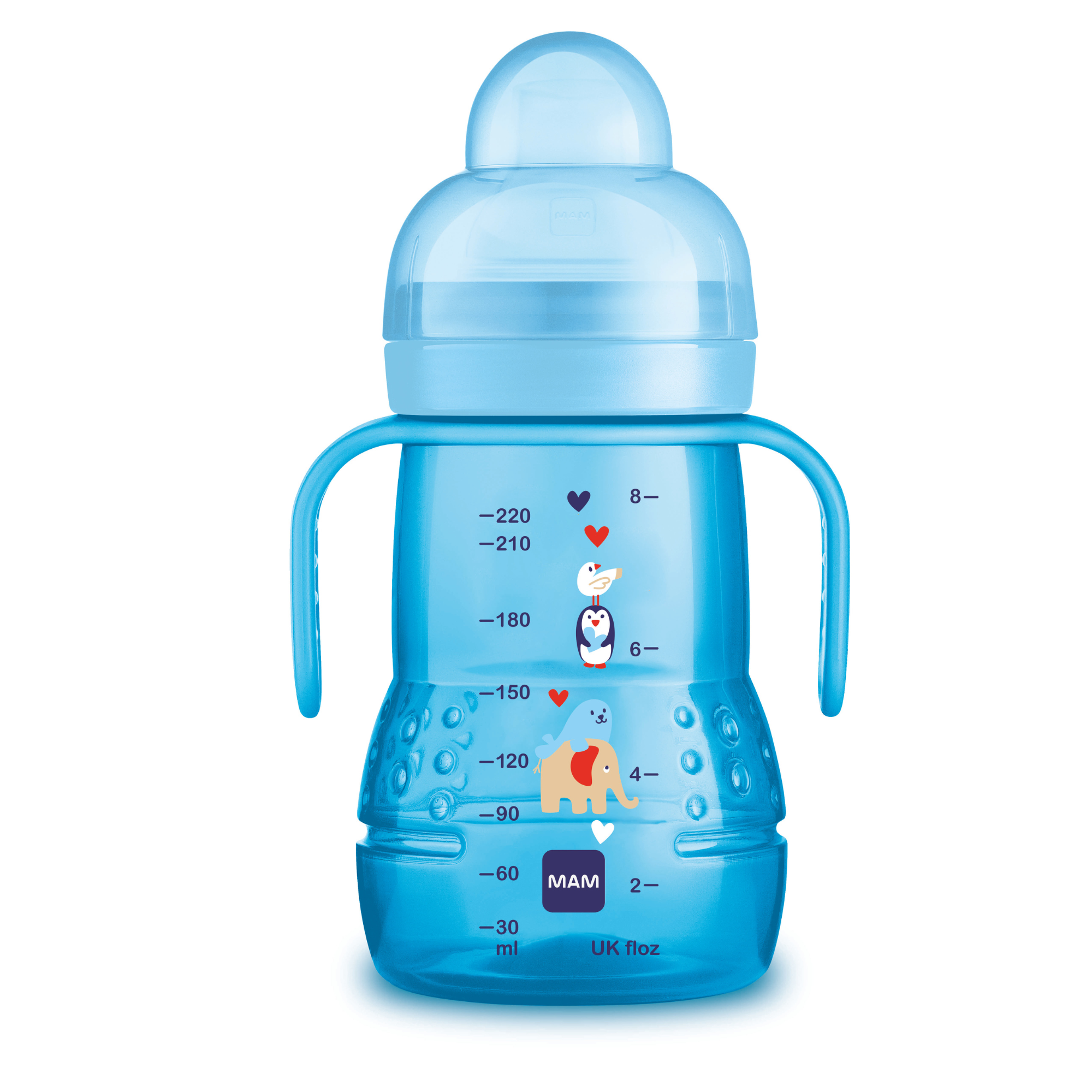 Dětský hrnek s nevylévacím pítkem Trainer MAM je určena pro děti od 6 měsíce a má široké hrdlo pro snadné plnění a čištění. Ideální měkké pítko brání vylití láhve.