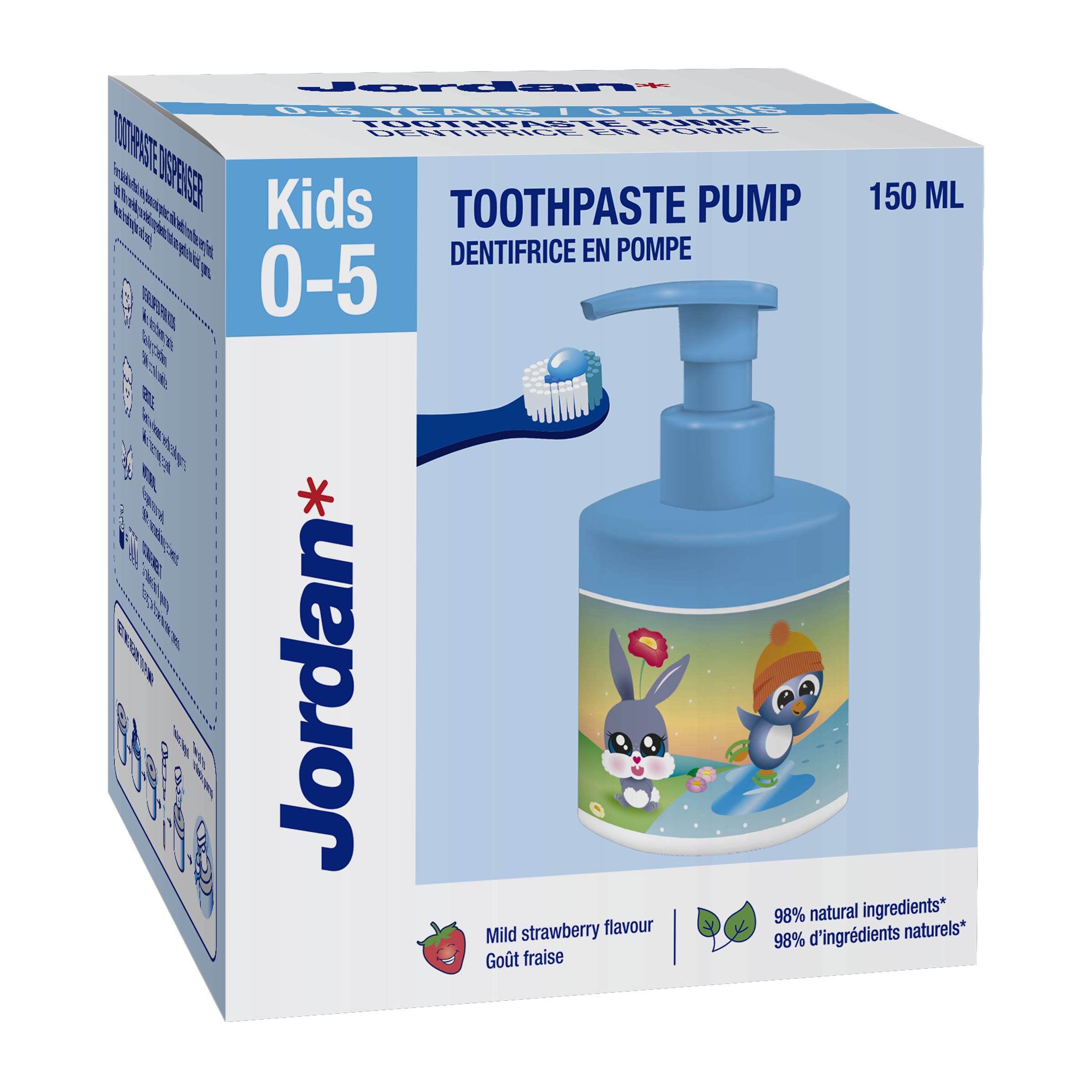 Zubní pasta Jordan Kids v pumpičce je ideální volbou pro děti ve věku 0-5 let, které teprve začínají pečovat o své zuby. Tato pasta má jemnou ovocnou chuť, díky které je každodenní ústní hygiena příjemnější. Doporučená hladina fluoridu 1000 ppm zajišťuje účinnou ochranu před zubním kazem, což je velmi důležité u mléčných zubů. Díky tvaru obalu je používání výrobku snadné a příjemné i pro nejmenší děti. Úsměv vašeho batolete je nejdůležitější. Až 98 % složek pasty pochází z přírodního zdroje. Je bezpečná pro jemnou ústní dutinu dětí. Pasta Jordan Kids je k dispozici v balení po stabilním plastovém obalu o objemu 150 ml. Díky této zubní pastě si vaše dítě může užívat zdravé a krásné zuby již od útlého věku.