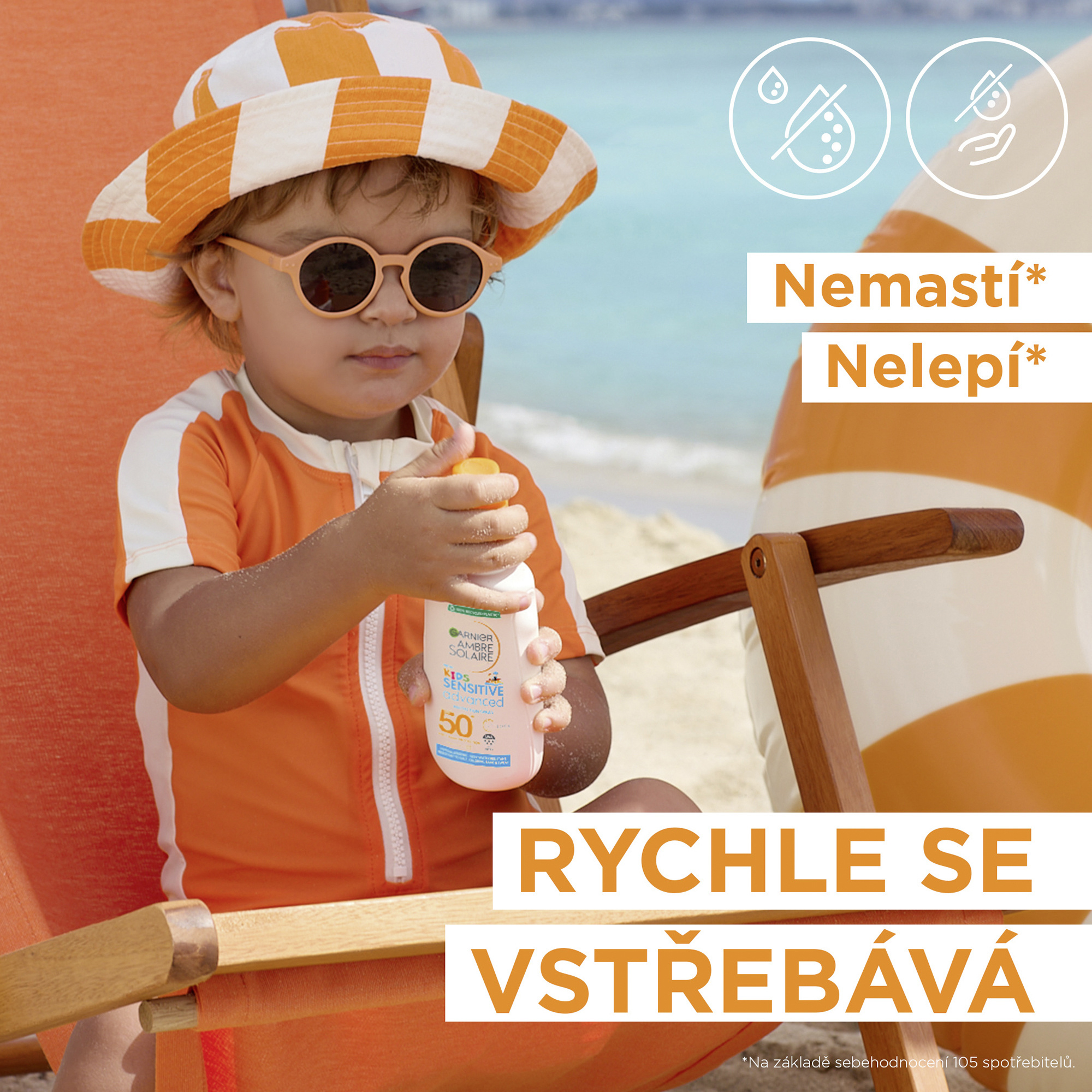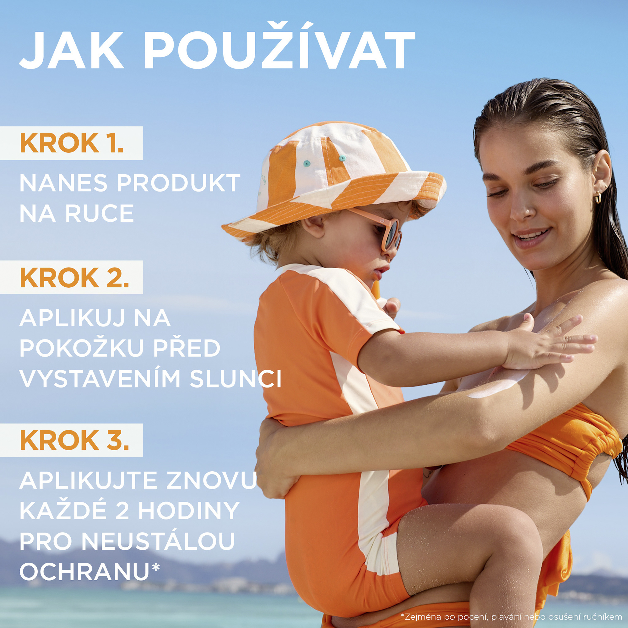 - Vysoký ochranný faktor SPF50+ pro velmi citlivou dětskou pokožku