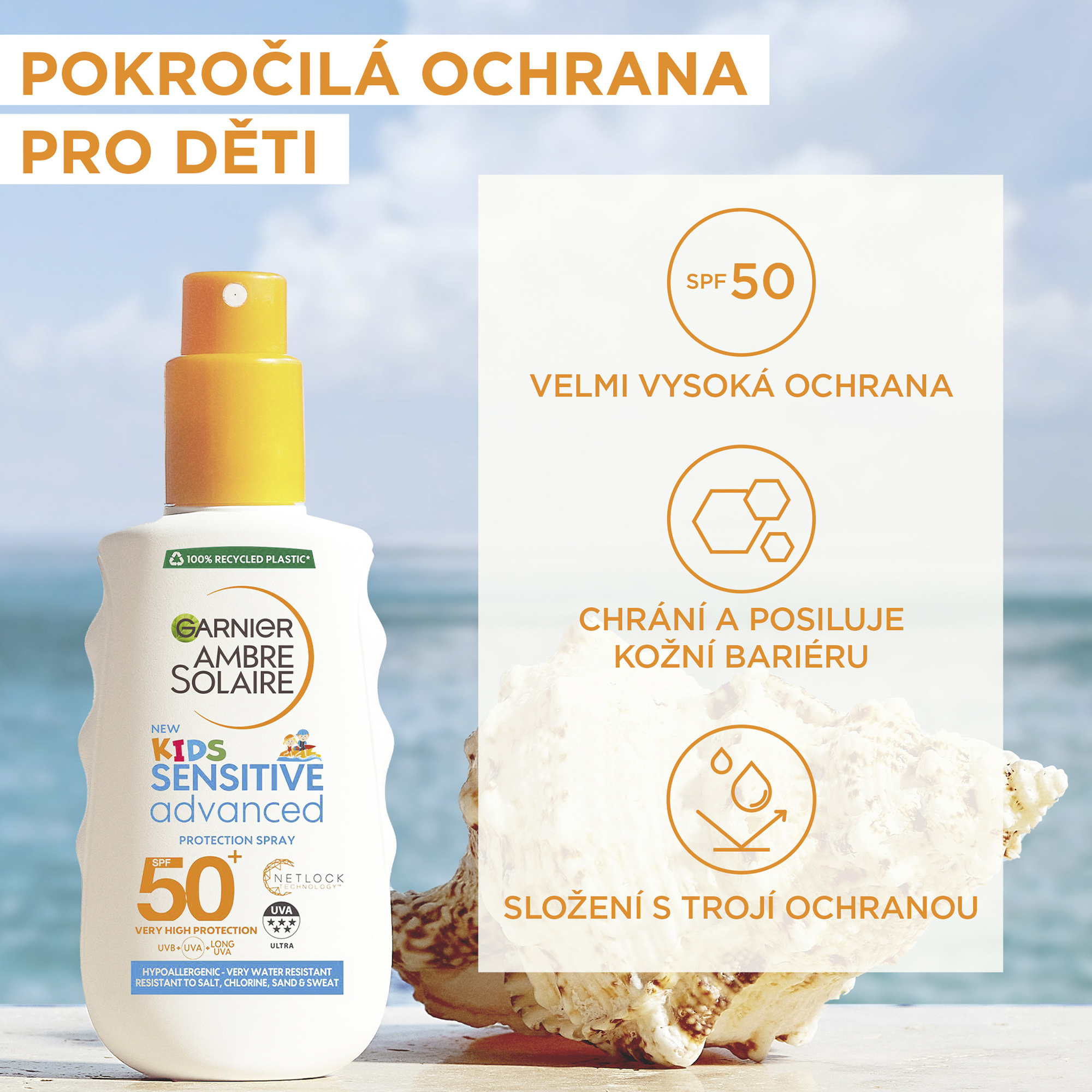 Dětský sprej na opalování Ambre Solaire Sensitive Kids SPF50+ představuje spolehlivou ochranu před slunečním zářením i pro tu nejcitlivější pokožku. Garnier vyvinul tento opalovací sprej speciálně pro děti tak, aby kombinoval velmi vysokou ochranu SPF 50+ s jemným složením, které respektuje citlivost dětské kůže.