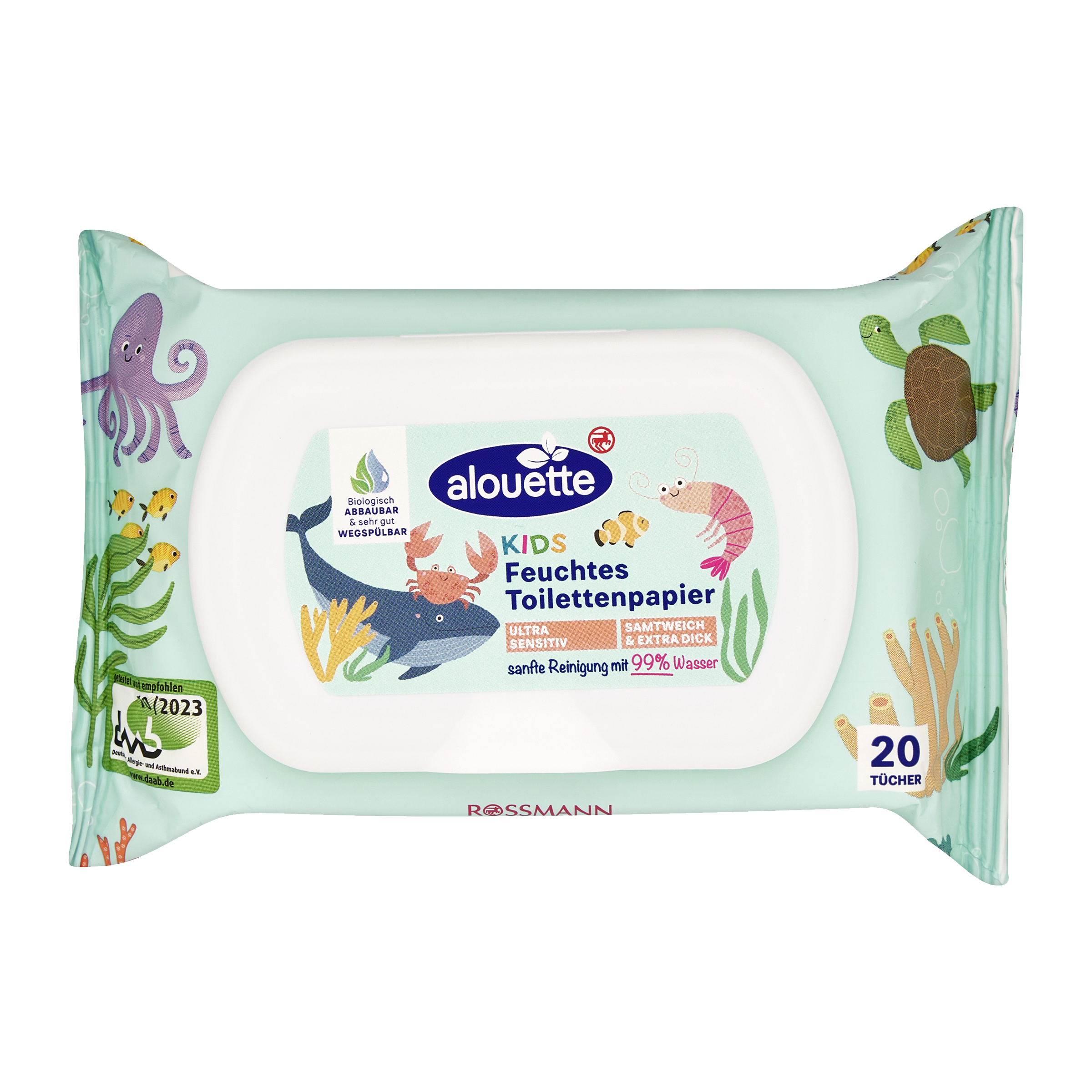 Vlhčené toaletní ubrousky vhodné pro dětskou pokožku, jsou díky praktickému balení vhodné nejen na cesty. Jejich složení obsahuje až 99 % vody a díky neutrálnímu pH jsou vhodné i pro citlivou pokožku a pokožku náchylnou k neurodermatitidě.