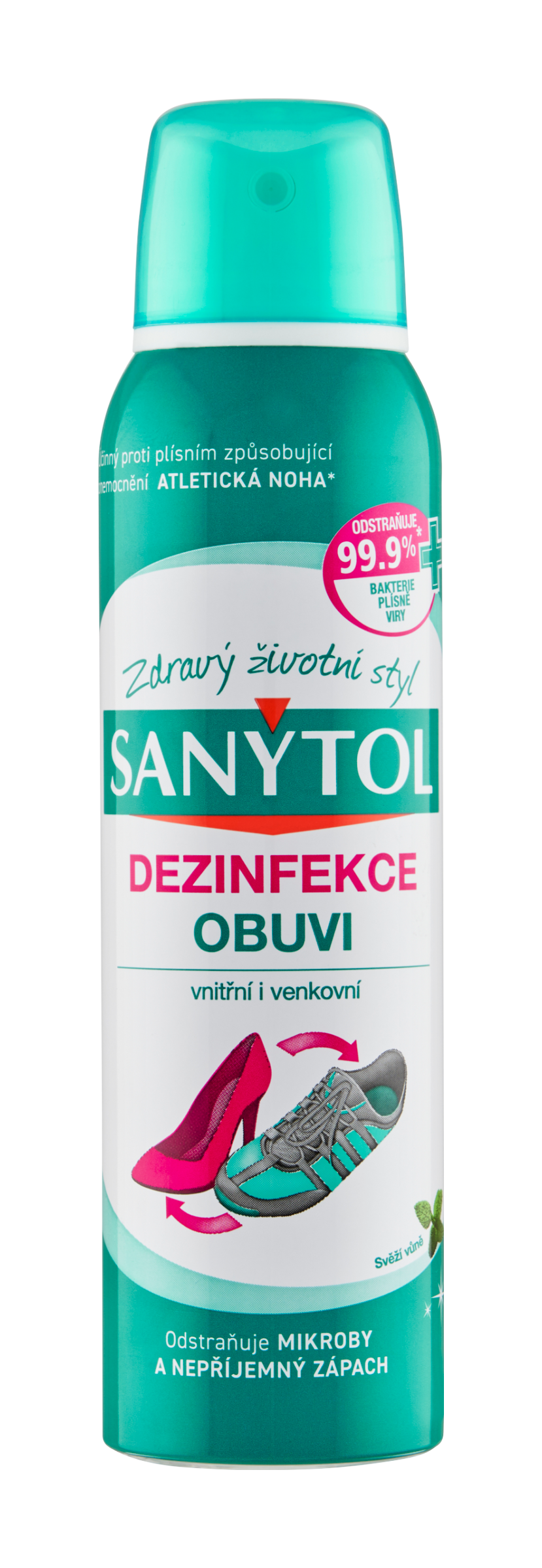 Sanytol, expert v dezinfekci bez chlóru, vyvinul dezinfekční prostředek do obuvi, který odstraňuje mikroby, bakterie, plísně a viry, které způsobují zápach a onemocnění kůže nohou. Jeho unikátní složení pohlcuje pachy a dezinfikuje do hloubky. Zanechává příjemný pocit svěžesti. Odstraňuje mimo jiné patogeny, které způsobují: plísně, bradavice, mykózy tzv. atletická noha... Tento výrobek má trojí účinek: baktericidní podle normy EN 13697 (5 min.), fungicidní podle normy EN 13697 (15min.), virucidní podle normy EN 14476 (30min).