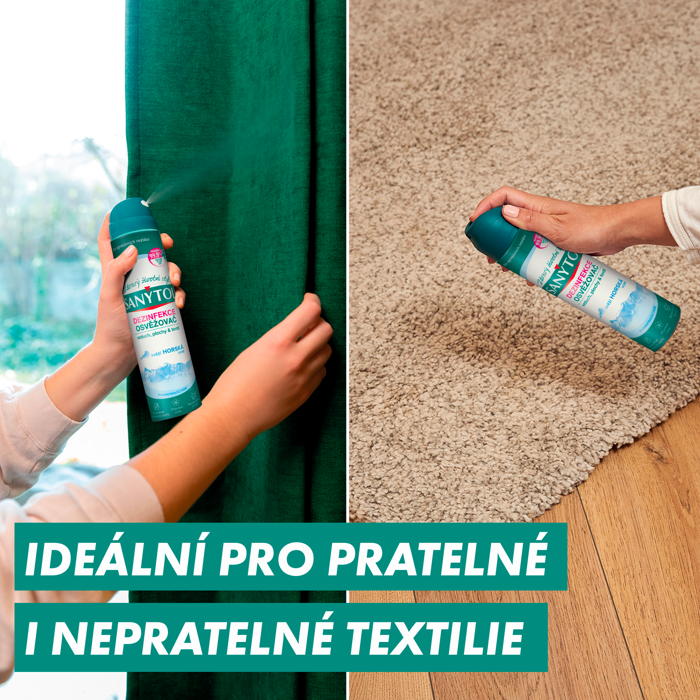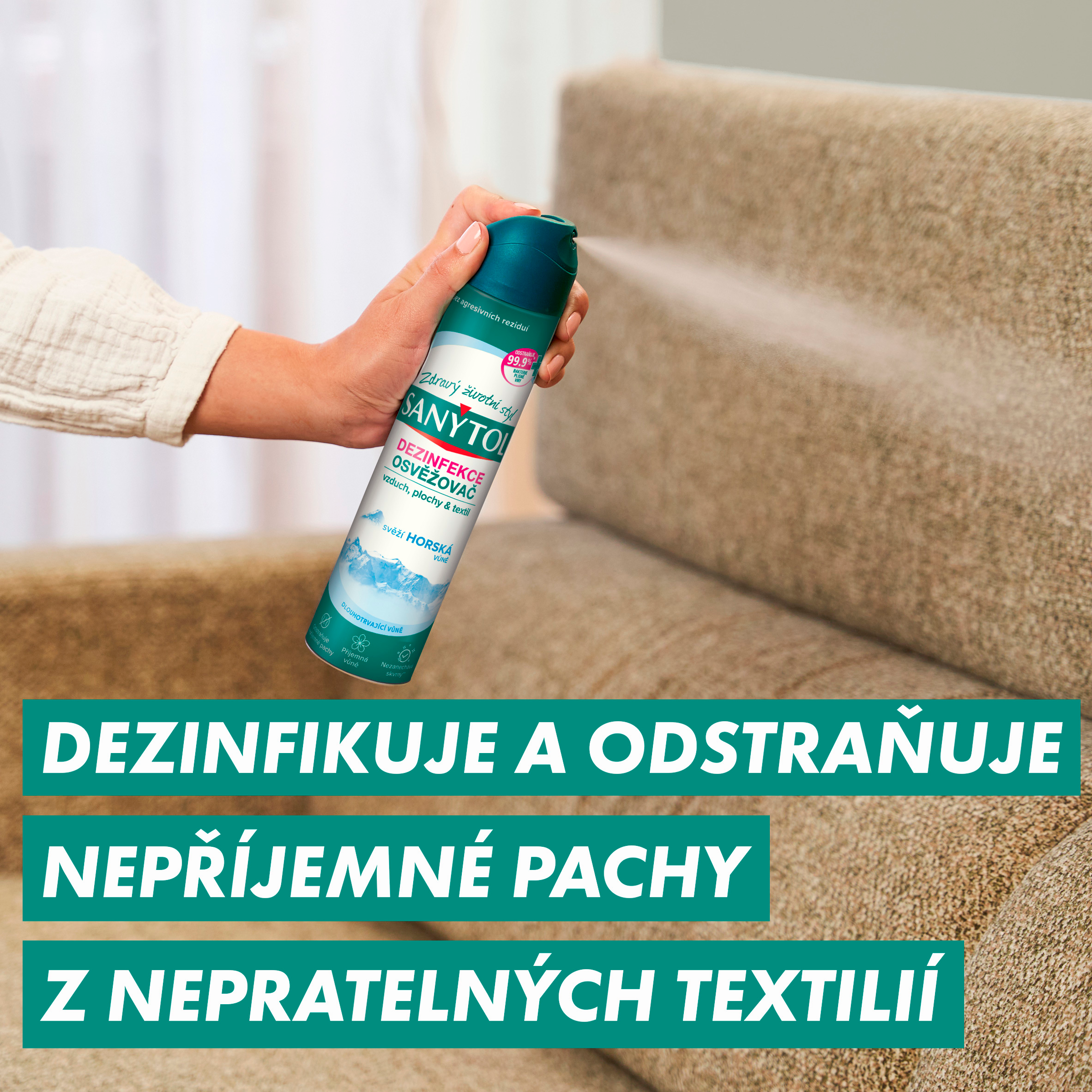 Sanytol, expert na dezinfekci bez chlóru, vyvinul dezinfekční osvěžovač pro perfektní hygienu domova a příjemný pocit svěžesti. Neutralizuje pachy a zabíjí 99,9% mikroorganismů ve vzduchu, na povrchu i textiliích. Zápach nepřekrývá, ale odstraňuje jeho příčiny. Doporučení - jako prevence nebo v období epidemie (chřipka, gastroenteritida, ... )