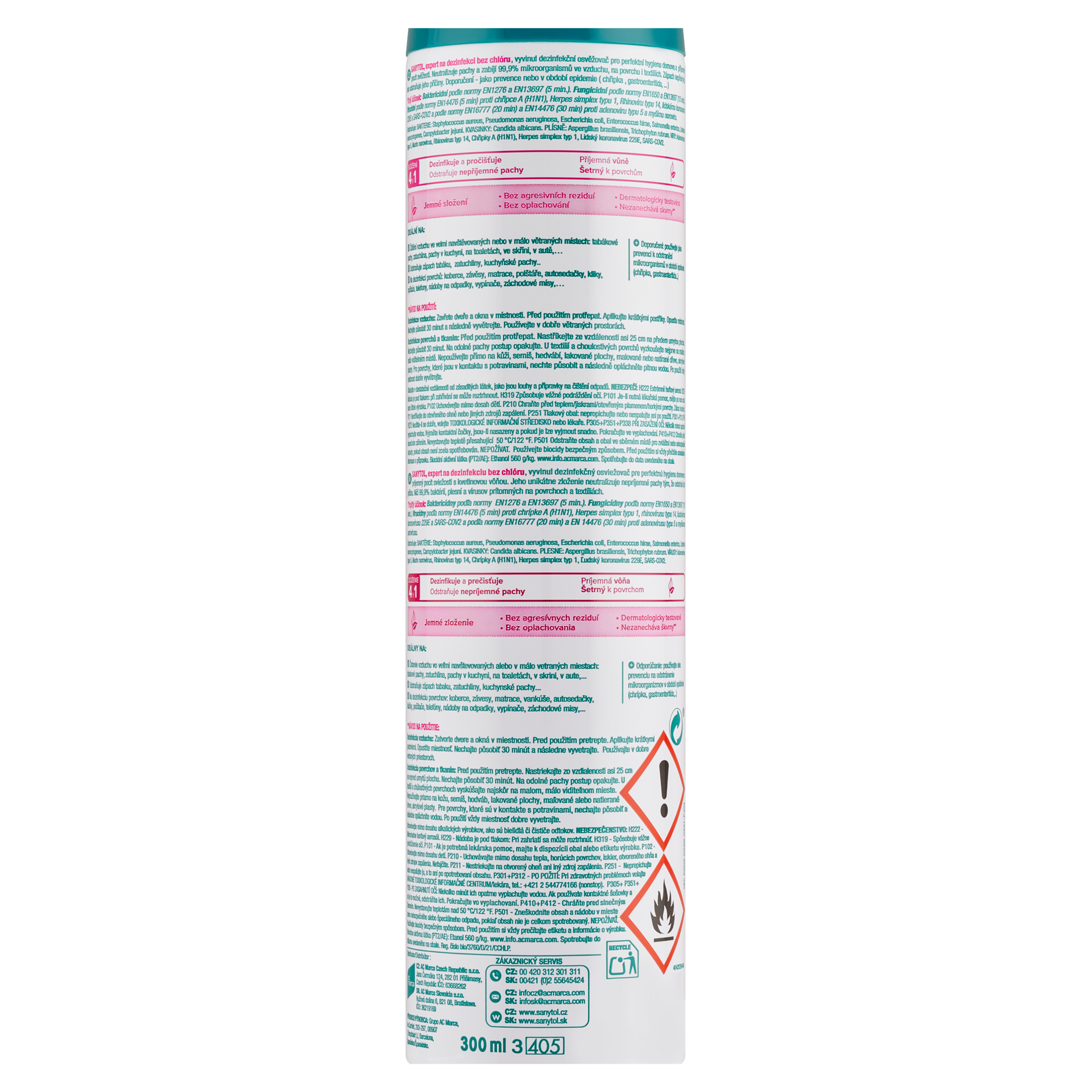 **Návod na použití: Dezinfekce vzduchu: Zavřete dveře a okna v místnosti. Před použitím protřepat. Aplikujte krátkými postřiky. Opusťte místnost. Nechejte působit 30 minut a následně vyvětrejte. Používejte v dobře větraných prostorách. Dezinfekce povrchů a tkanin: Před použitím protřepat. Nastříkejte ze vzdálenosti asi 25 cm na předem umytou plochu. Nechejte působit 30 minut. Na odolné pachy postup opakujte. U textilií a choulostivých povrchů vyzkoušejte nejprve na malém, málo viditelném místě. Nepoužívejte přímo na kůži, semiš, hedvábí, lakované plochy, malované nebo natírané dřevo, akrylové plasty. Pro povrchy, které jsou v kontaktu s potravinami, nechte působit a následně opláchněte pitnou vodou. Po použití vždy místnost dobře vyvětrejte.