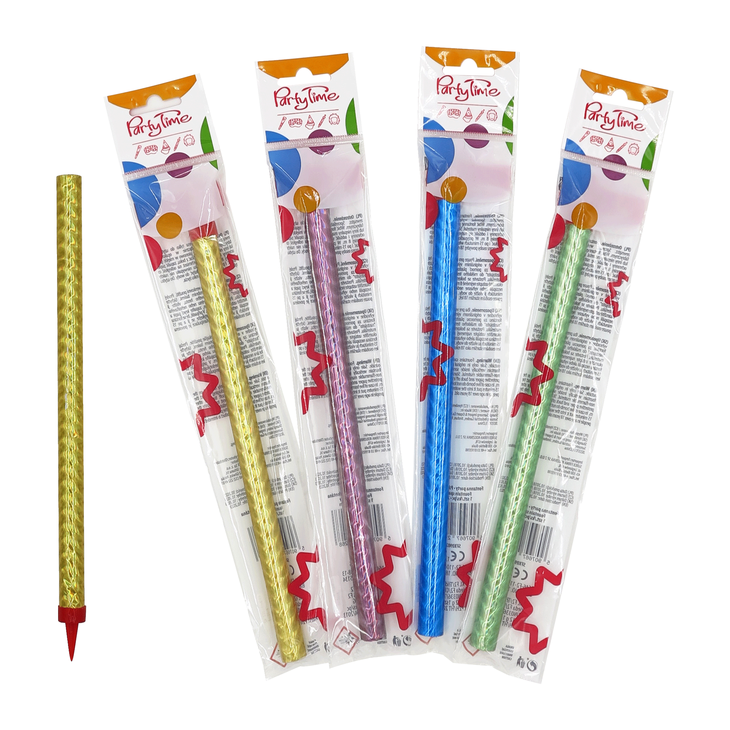 Fontánu stačí zapíchnout do dortu špičkou a horní okraj zapálit. Fontána vytvoří efekt zářících a chrlících jisker.