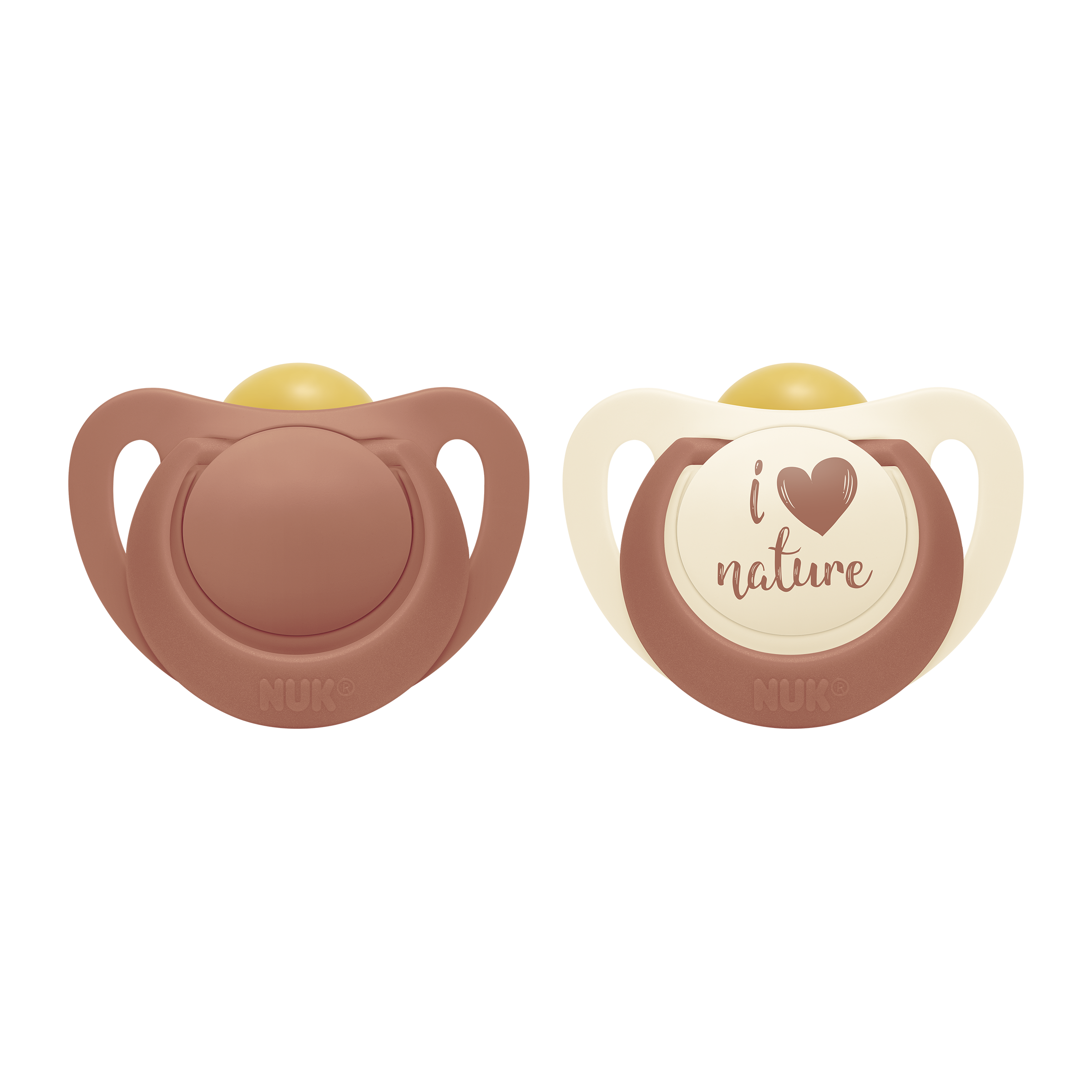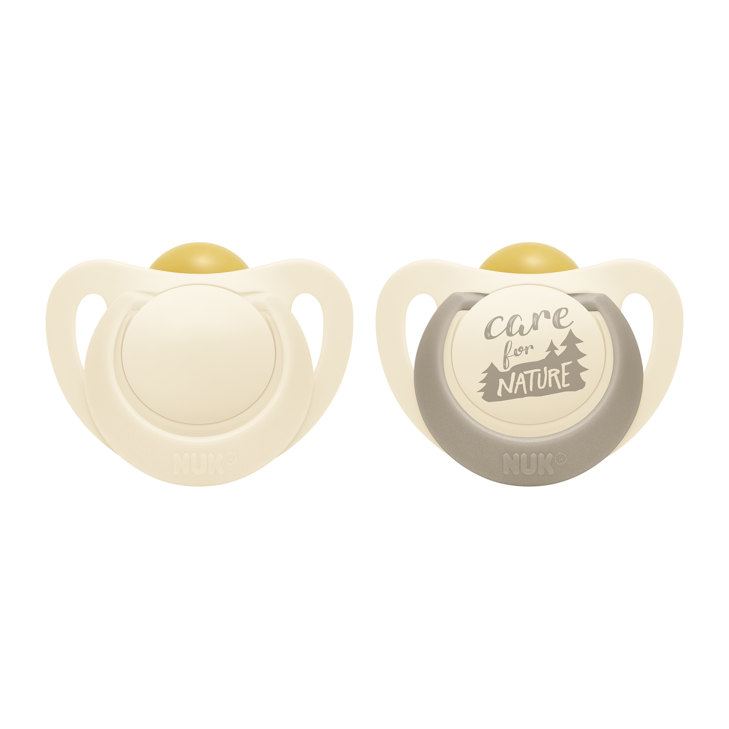 Latexový dudlík NUK for Nature, vhodný pro správný vývoj čelisti, z přírodního kaučukového latexu, 2 kusy, neobsahuje BPA.
