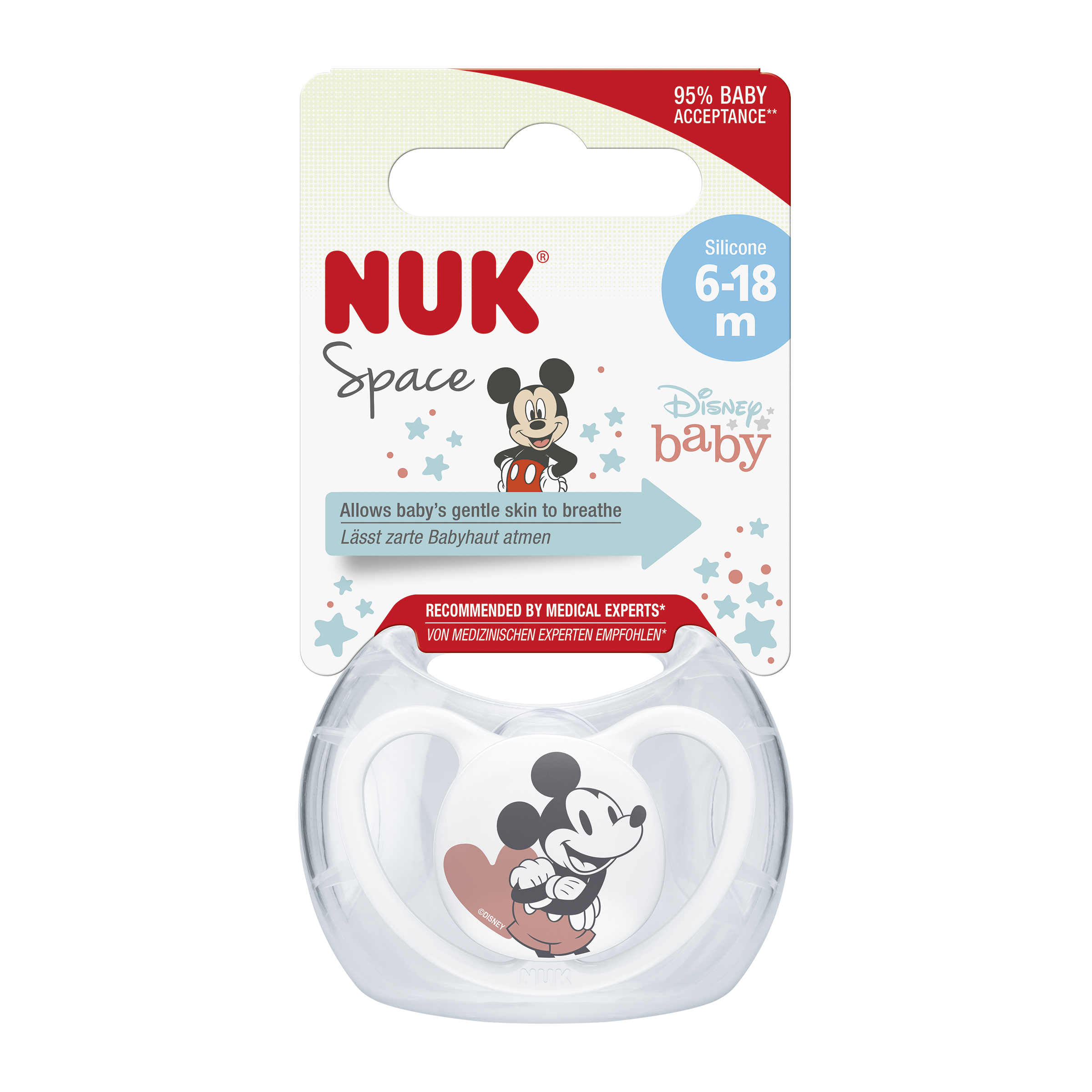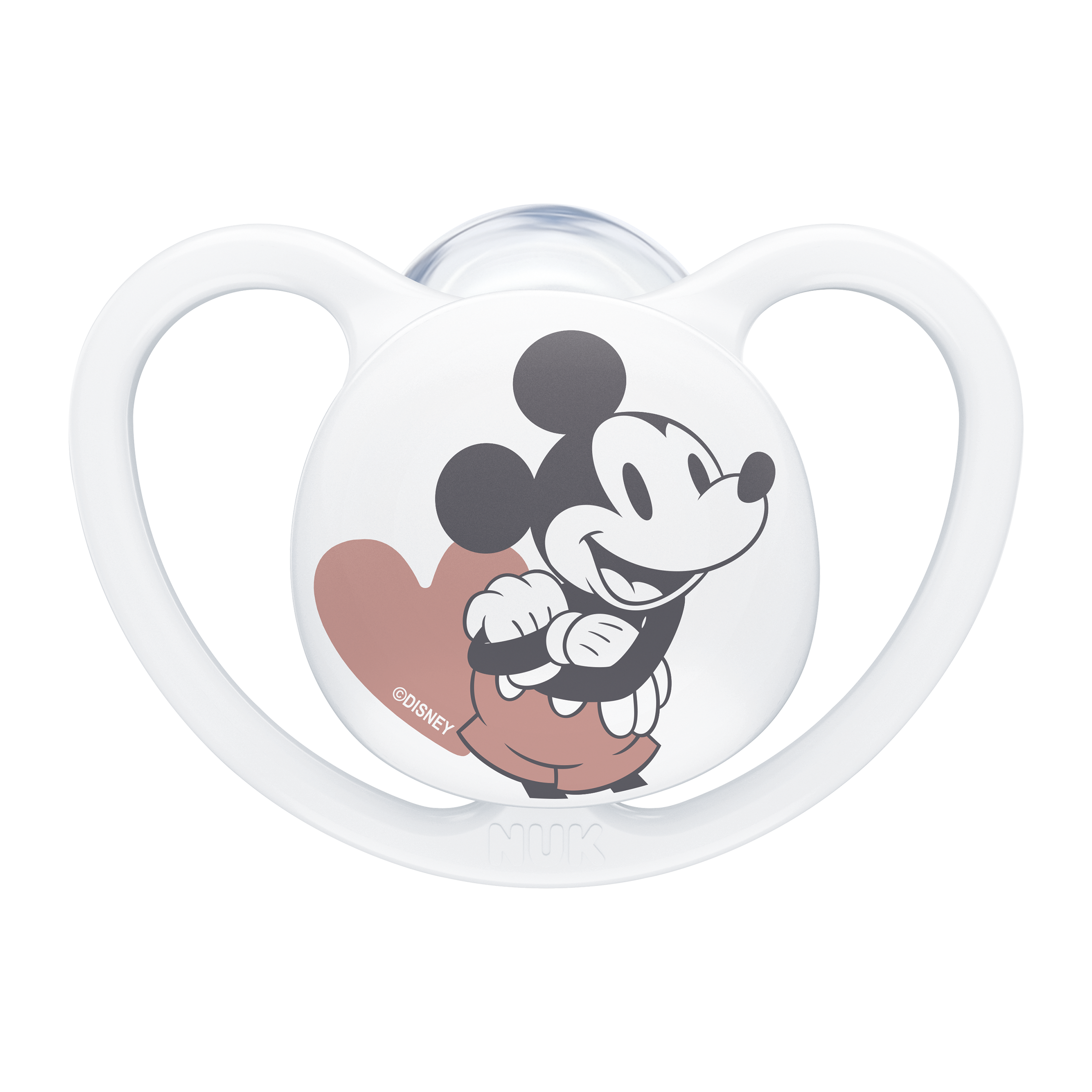 Silikonový dudlík NUK Disney Mickey Mouse Space, vhodný tvar pro správný vývoj čelistí, 6-18 měsíců, 1 ks