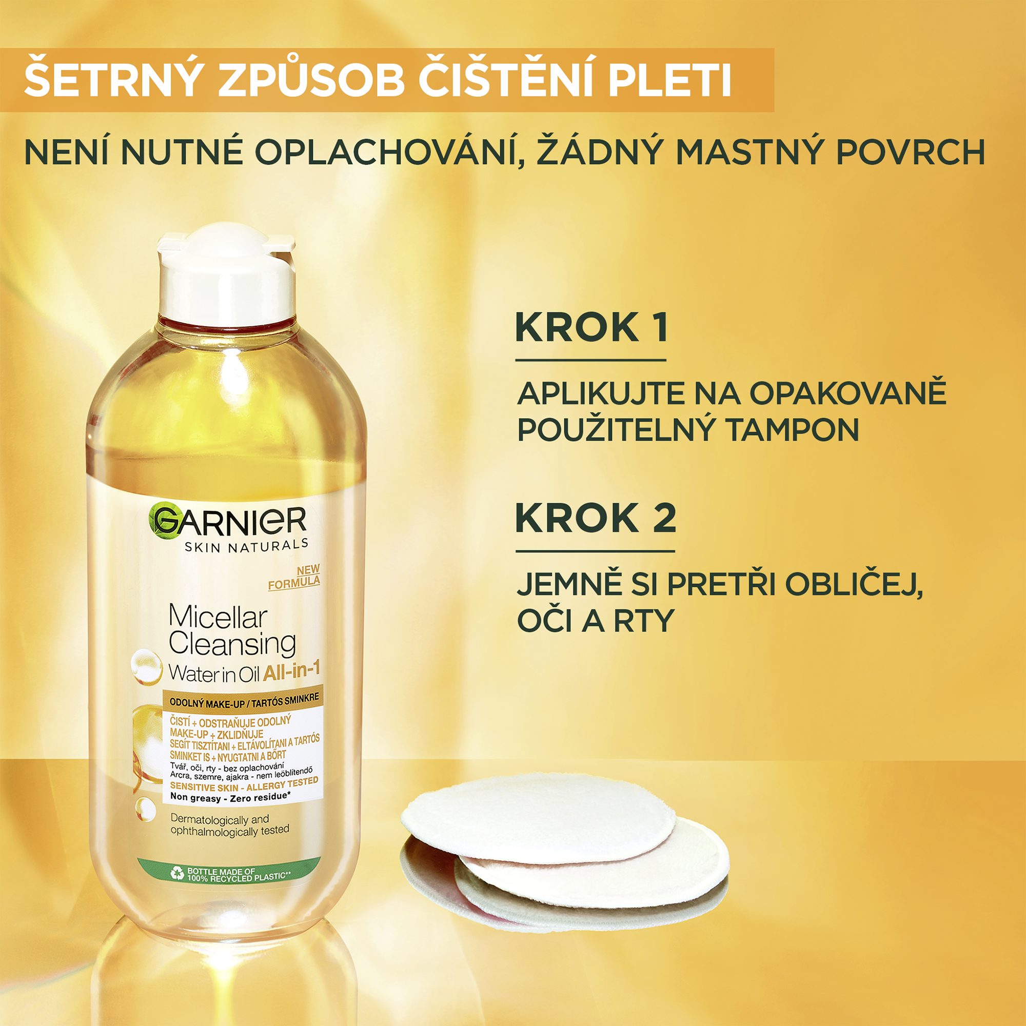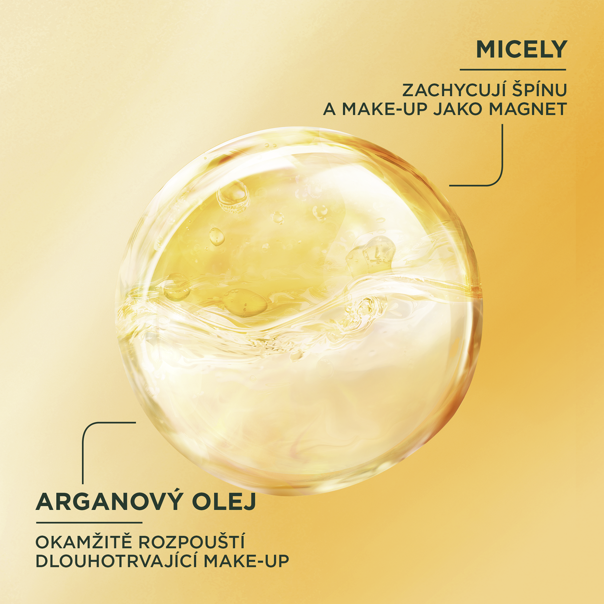 Díky složení obohacenému o micely, odličovací oleje a velmi účinný arganový olej, dvoufázová micelární voda Garnier Skin naturals odstraňuje všechny typy make-upu, eliminuje nečistoty a zklidňuje pleť jedním tahem. Výsledkem je velmi hebká pleť bez mastného filmu.