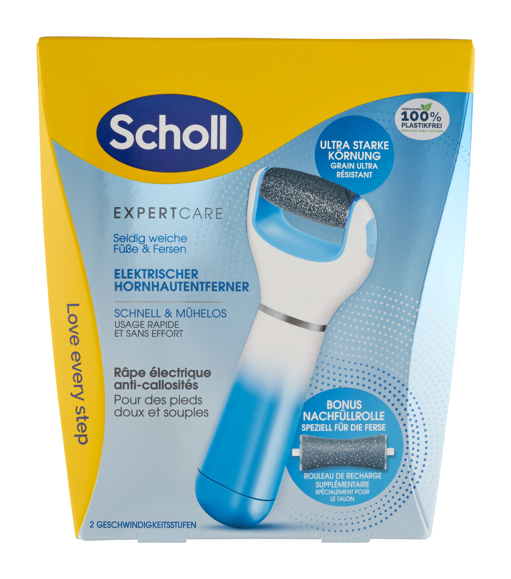 Scholl Expert Care Elektrický pilník na chodidla a ultra drsná rotační hlavice s extra hlavou pro paty. Rotační hlavice na popraskané paty má speciálně navržený dokonale přizpůsobený tvar na paty. Efektivně, snadno a rychle zlepšuje vzhled popraskaných pat.