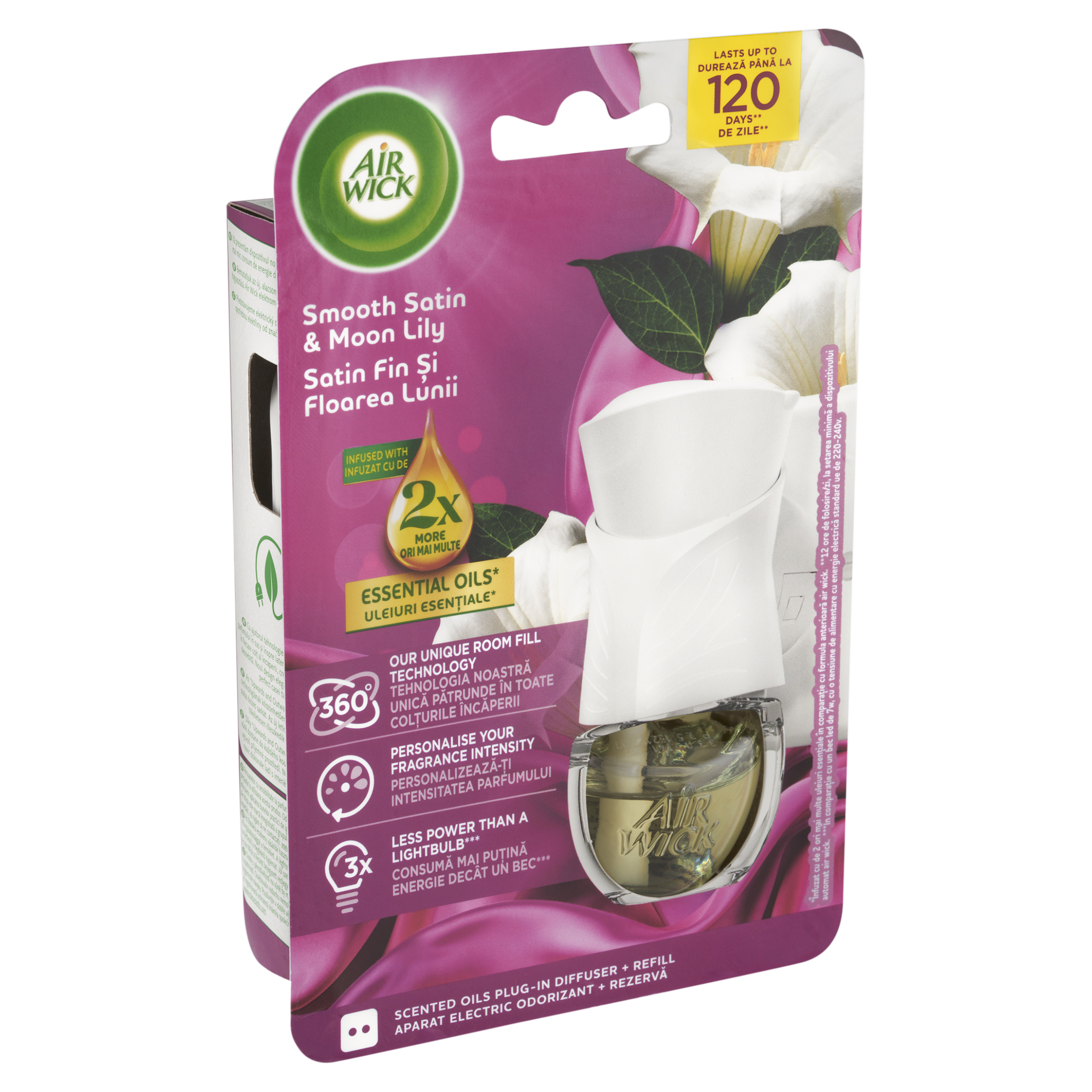 Představujeme elektrický difuzér s nejnižší spotřebou elektřiny od značky Air Wick. Díky “Upwards and Outwards” technologii se vůně dostane do každého koutu vaší místnosti a vytvoří příjemné prostředí. Nový stylový design navíc dokonale ladí s interiérem domácnosti. Naše složení je obohaceno o přírodní esenciální oleje, které vám zprostředkují autentický zážitek z vůně. Lahodná a okouzlující květinová gourmand vůně, která spojuje svěžest citrusových plodů, hřejivost koření a sladkost květinových a gurmánských tónů. Provoňte svůj domov vůněmi inspirovanými přírodou a vytvořte si hřejivou a příjemnou atmosféru. Vůně je obohacena o dvojnásobné množství přírodních esenciálních olejů ve srovnání s předchozím složením Air Wick náplně do elektrického přístroje. Vydrží až 120 dní při používání 12 hodin denně na nejnižší úrovni intenzity vůně.