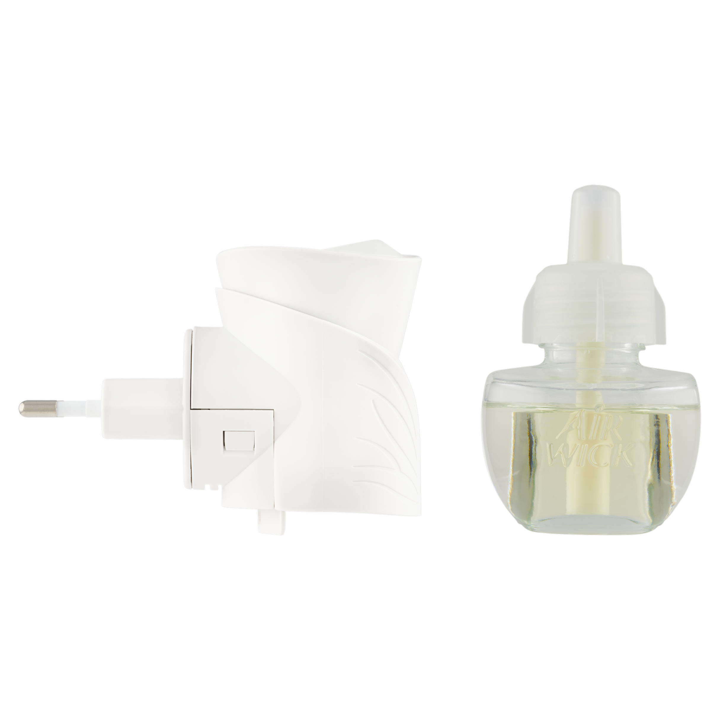 Používejte pouze s elektrickými strojky Air Wick. 1. Odšroubujte uzávěr náplně. 2. Náhradní náplň držte ve svislé poloze a vložte hluboko do spodní části strojku, dokud neuslyšíte cvaknutí. 3. Vložte strojek s náplní do elektrické zásuvky. 4. Pro změnu intenzity uvolňování vůně otočte kolečko na vrchní straně strojku. Největší značka = max. nastavení. 5. Pro výměnu náplně odpojte strojek z elektrické sítě a opatrně vytáhněte náplň směrem dolů.