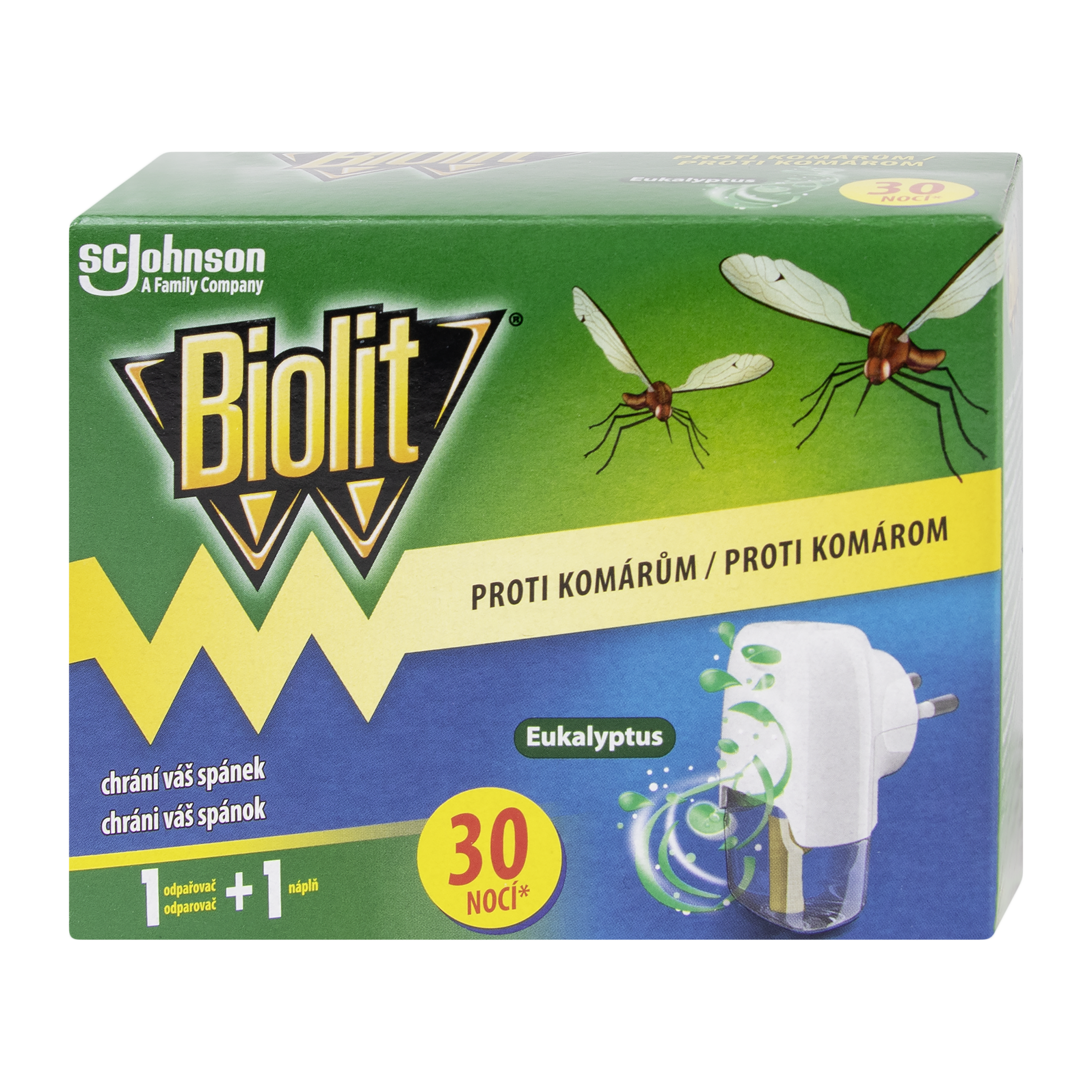 Biolit elektrický odpařovač s tekutou náplní s vůní EUKALYPTUS. Vydrží 30 nocí.