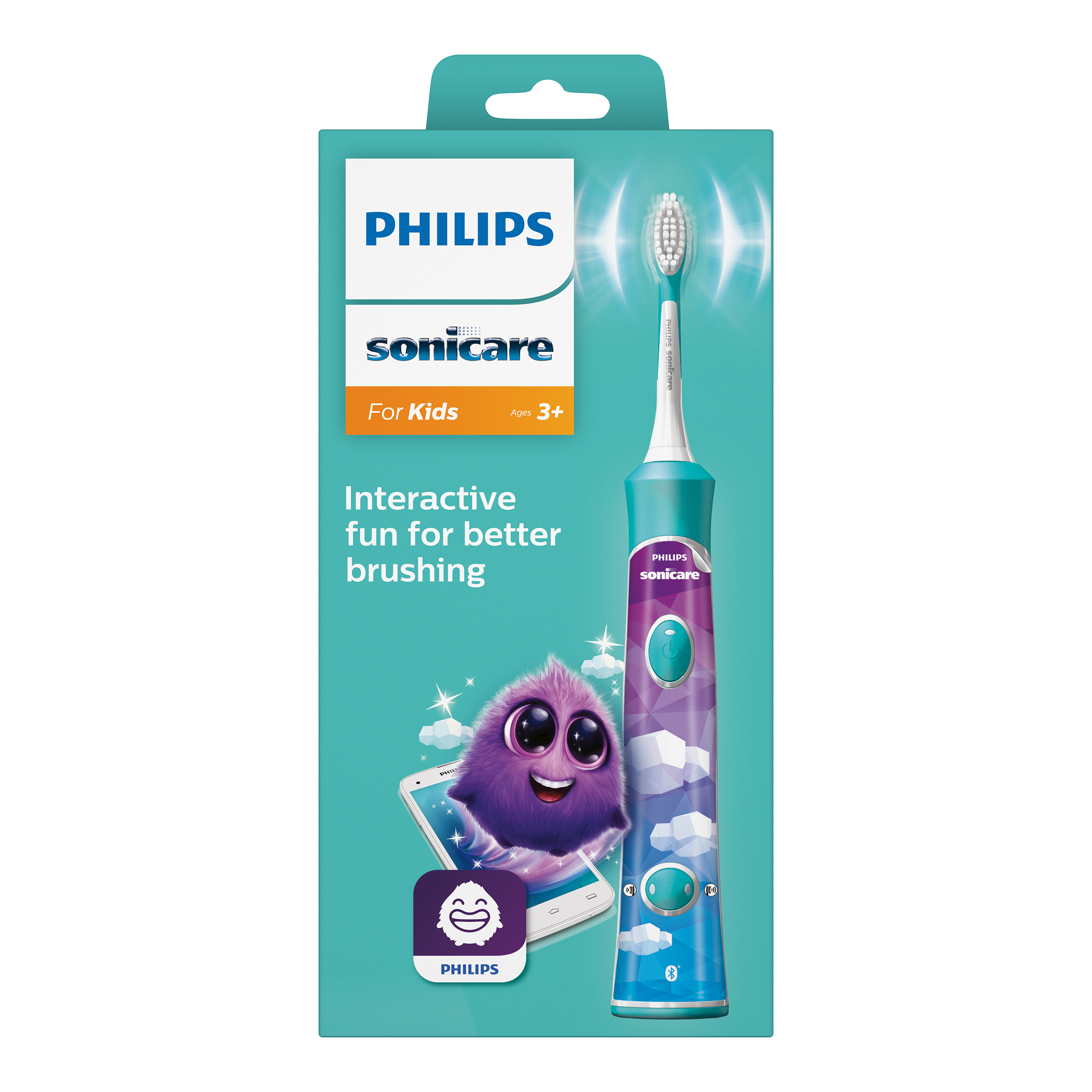 Dětský sonický kartáček Philips Sonicare for Kids s připojením Bluetooth umožňuje interakci se zábavnou aplikací, díky níž si děti čistí zuby lépe a déle. 2 režimy čištění. Nízká intenzita pro děti od 3 let a vyšší pro děti od 7 let. KidTimer and KidPacer zajišťují jemné a účinné čištění. O 75 % efektivnější než manuální dětský kartáček.