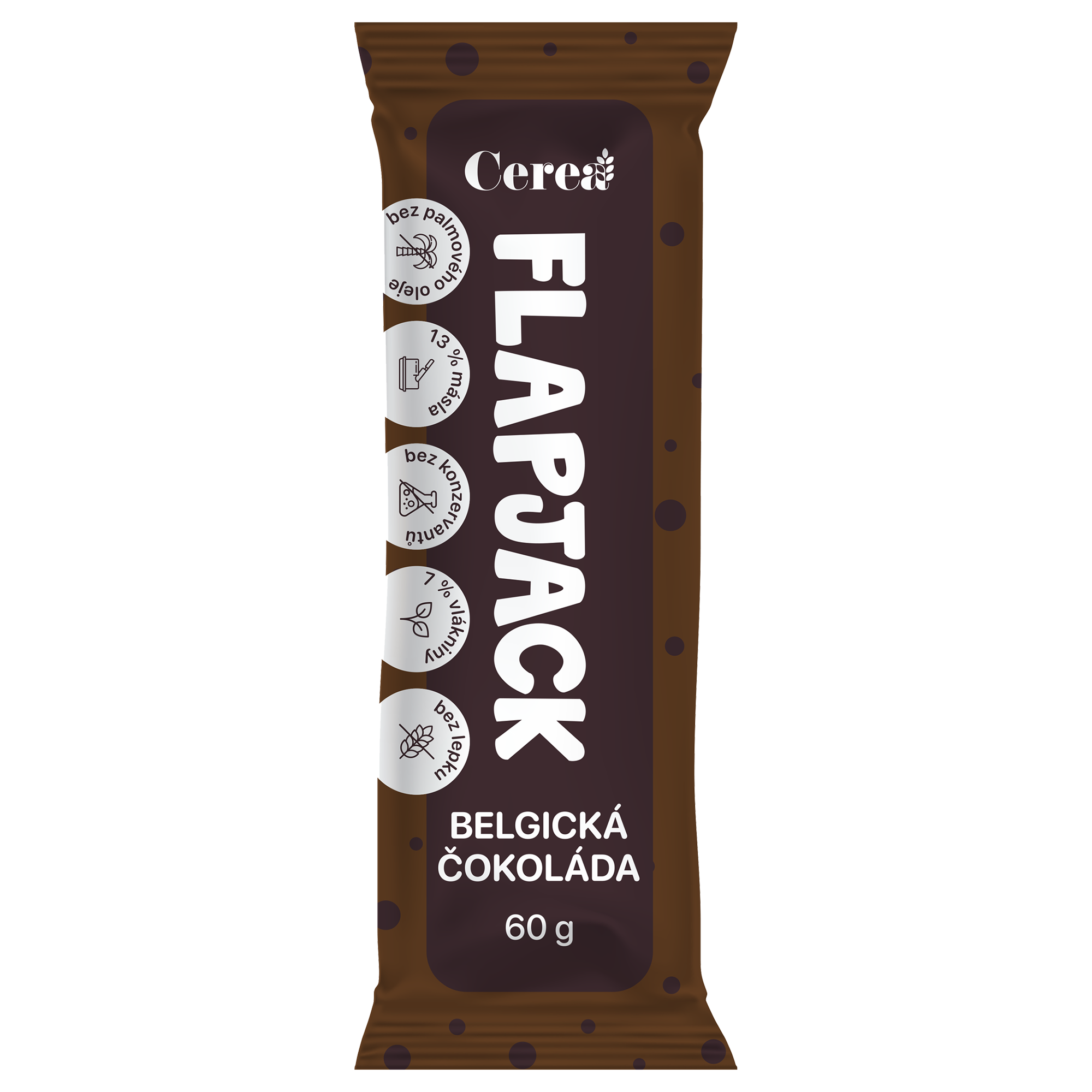 Flapjack je pečená tyčinka, která obsahuje kromě velkého podílu vloček také med a kvalitní máslo. Díky vysokému podílu vloček tyčinka plně zasytí a dodá energii nejen při sportovních výkonech. Tyčinky Flapjack belgická čokoláda jsou bez palmového tuku a konzervantů, neobsahují lepek.