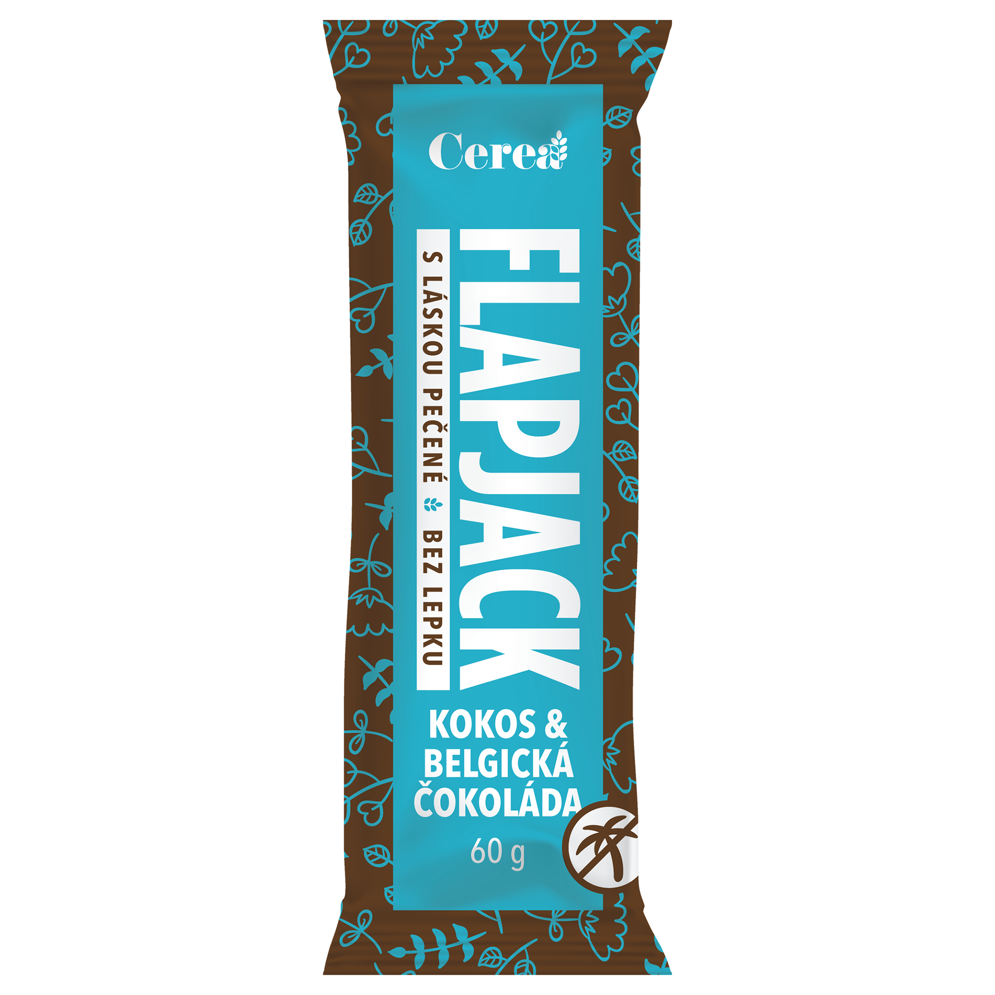 Flapjack je pečená tyčinka, která obsahuje kromě velkého podílu vloček také med a kvalitní máslo. Díky vysokému podílu vloček (ovesné, jáhlové) tyčinka plně zasytí a dodá energii nejen při sportovních výkonech. Tyčinky Flapjack kokos a belgická čokoláda jsou bez palmového tuku a konzervantů.