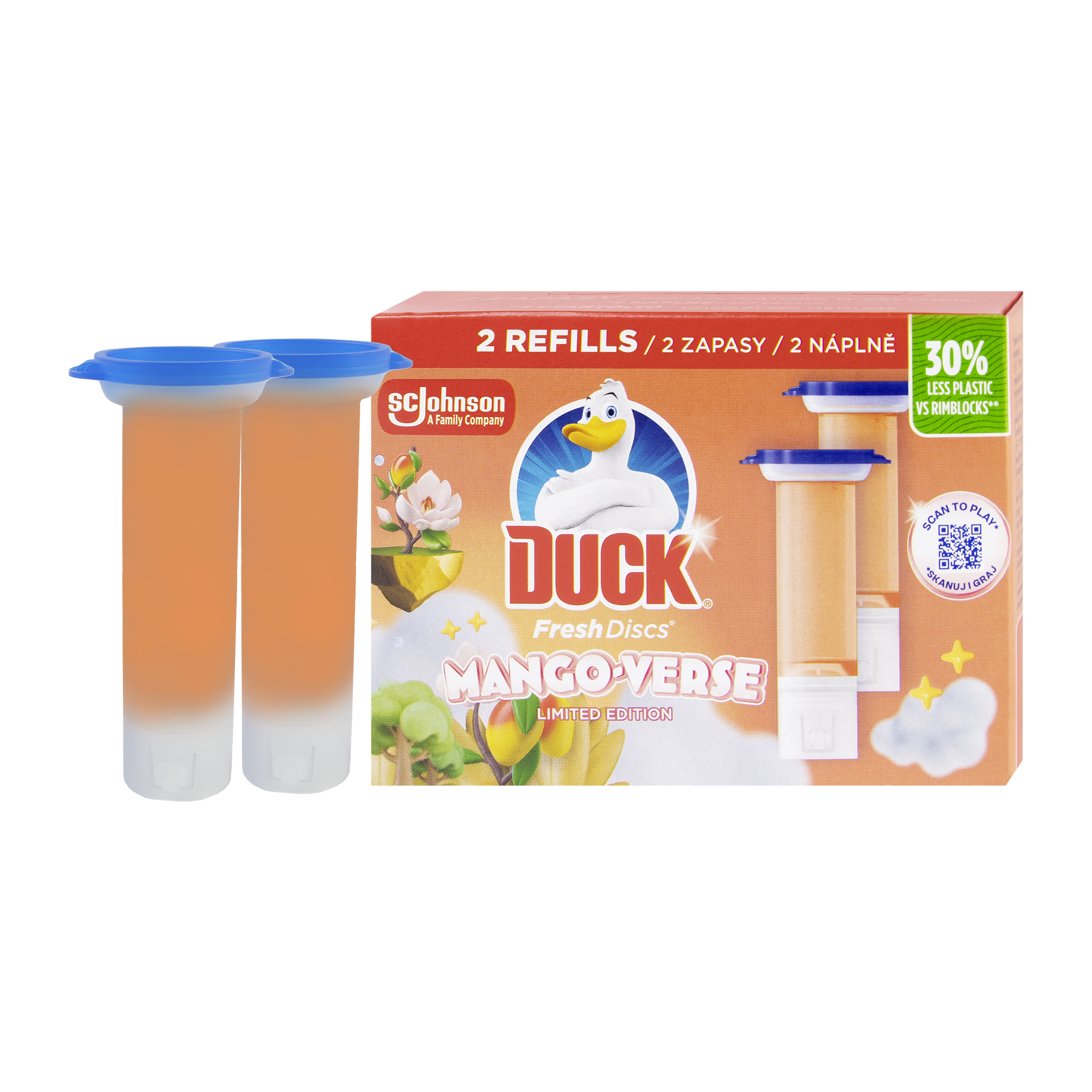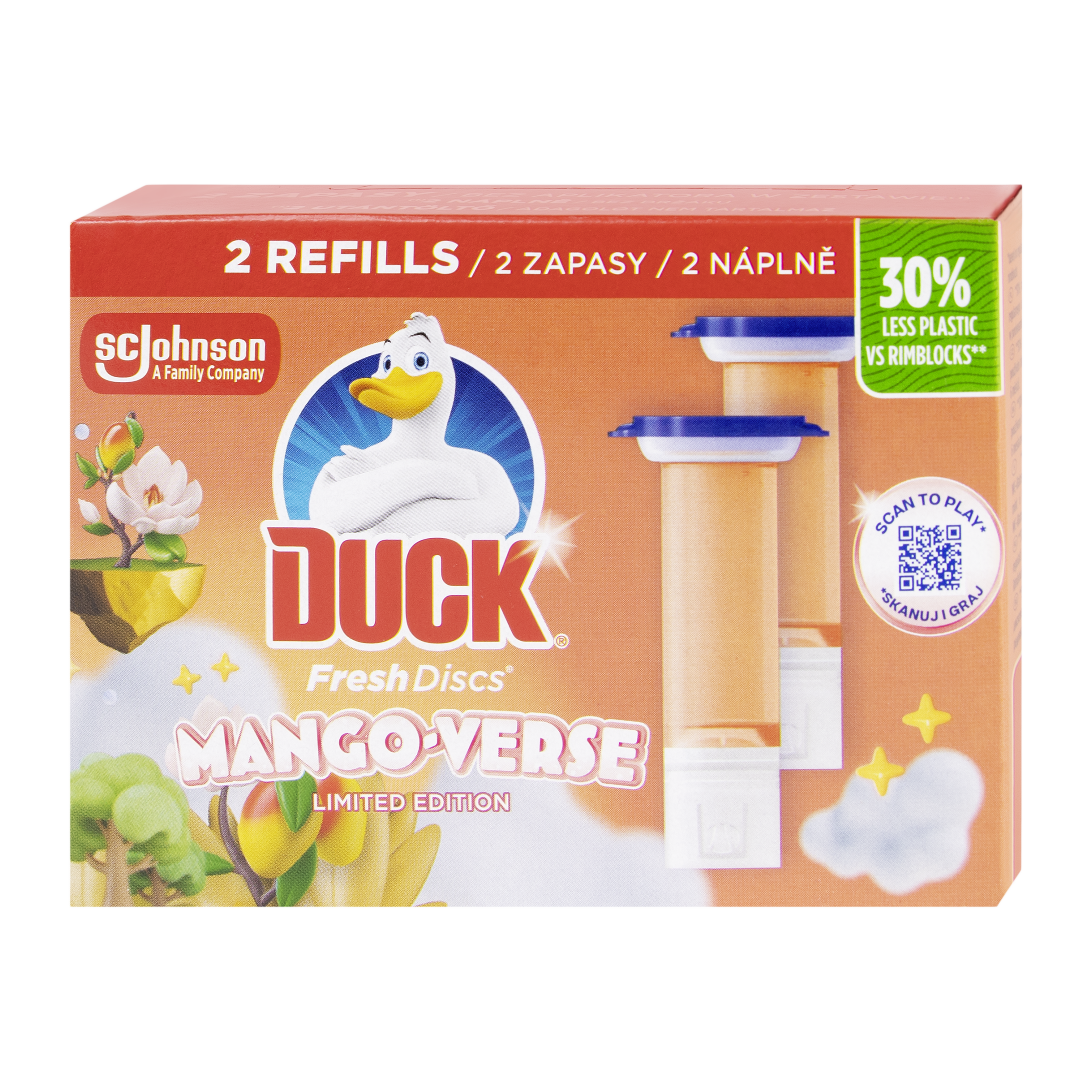 Získejte svěžest a čistotu s každým spláchnutím! Duck Fresh Discs Mango Verse přináší inovativní způsob, jak udržet toaletu hygienicky čistou bez nutnosti používání závěsných bloků. Jednoduchá aplikace gelových disků zaručí dlouhotrvající ochranu proti nečistotám a svěží vůni manga. Proměňte čištění toalety v elegantní a efektivní proces! Balení obsahuje dvě náplně.