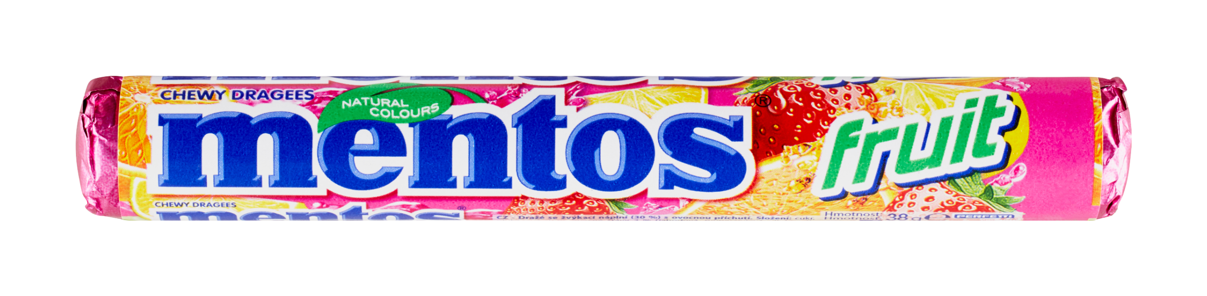 Pro ovocné osvěžení dne sáhněte po žvýkacích bonbónech Mentos Fruit s kombinací příchutí pomeranč, citrón a jahoda v ikonickém ruličkovém balení!