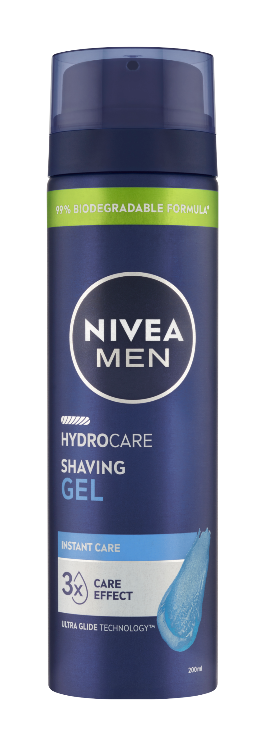 Gel na holení hydrocare. Složení z 99 % biologicky rozložitelné*. *dle OECD nebo ekvivalentních metod.