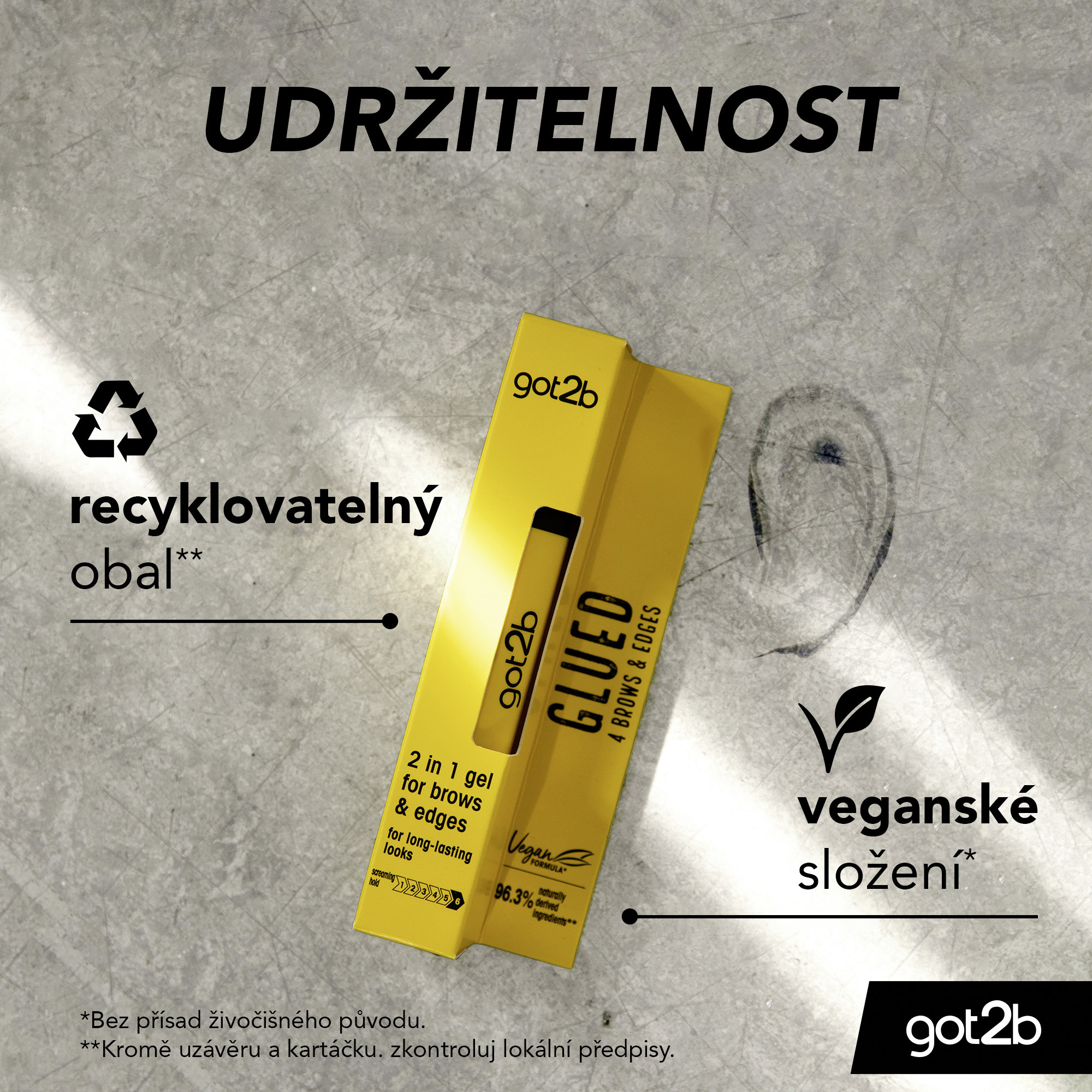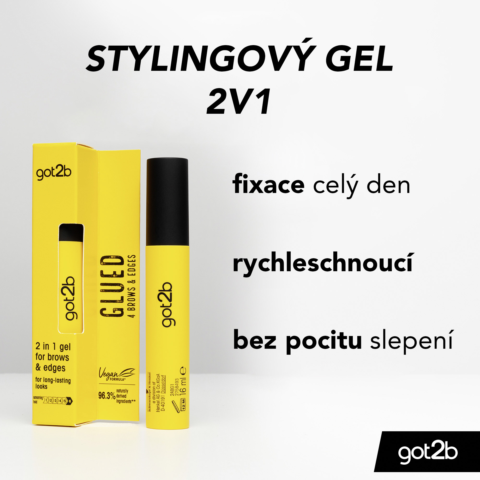 Obočí a dokonalý styling v hledáčku! Upravte obočí a krátké vlásky kdekoli jste díky got2b Brows & Edges. Tento rychleschnoucí transparentní gel 2v1 zajišťuje, že obočí a krátké vlasy zůstanou ve formě po celý den. Gel je dermatologicky testován. Složení je veganské* s 96,3% přírodních složek**.