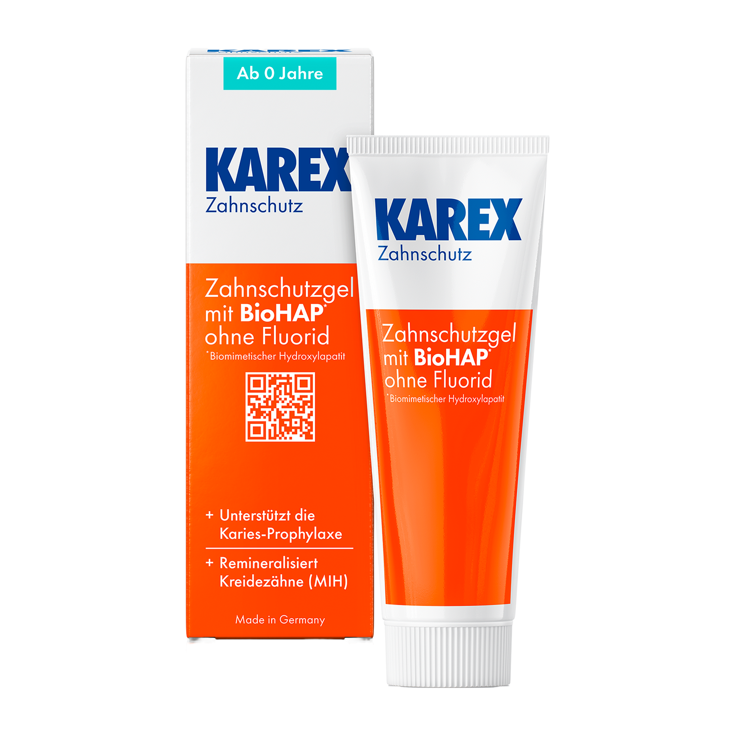 KAREX Gel na ochranu zubů, jako doplněk zubní pasty, poskytuje účinnou prevenci před tvorbou zubního kazu. Díky obsahu BioHAP (biomimetickému hydroxyapatitu) vytváří na zubech ochrannou vrstvu, která remineralizuje zubní sklovinu a pomáhá snižovat citlivost zubů způsobenou její hypomineralizací. Gel může také pomoci zmírnit bolest spojenou s tvorbou křídových skvrn (MIH). Díky tomu, že neobsahuje fluorid je bezpečný i pro malé děti od narození. Je vhodný pro každodenní použití.