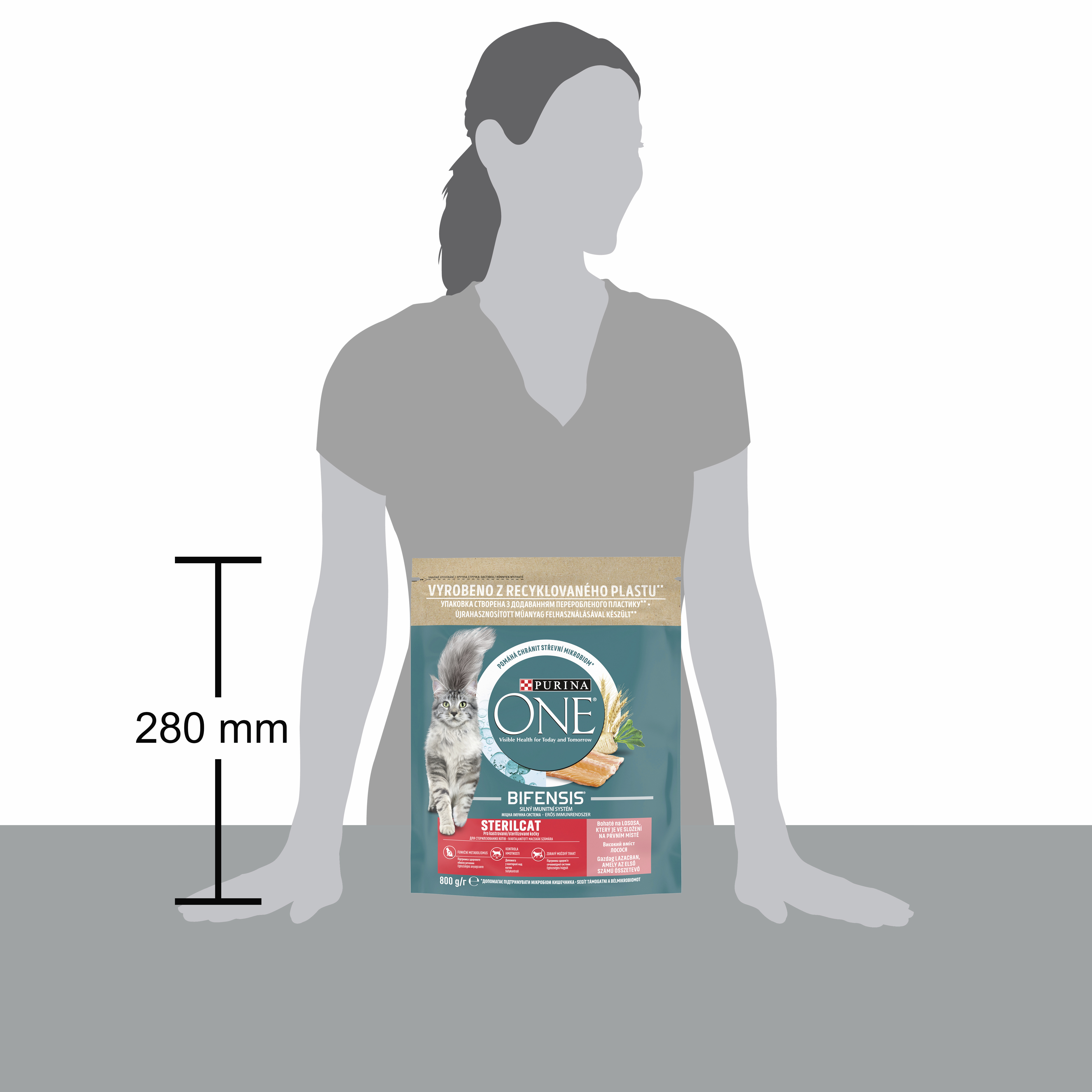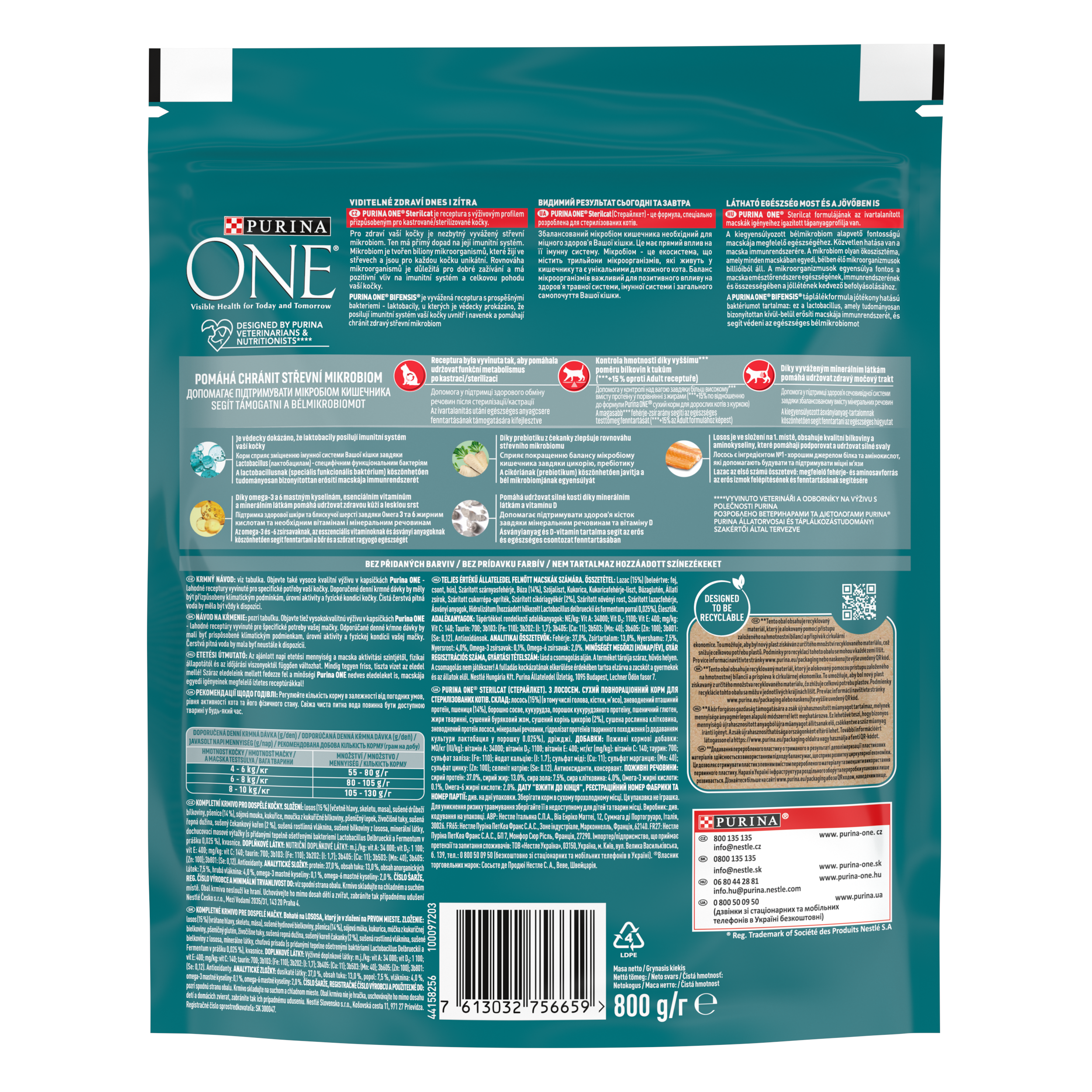 Kompletní krmivo Pro kastrované/sterilizované kočky. PURINA ONE BIFENSIS® Sterilcat je receptura s výživovým profilem přizpůsobeným pro kastrované/sterilizované kočky. Pro zdravý vaší kočky je nezbytný vyvážený střevní mikrobiom. Ten má přímý dopad na její imunitní systém. Mikrobiom je tvořen biliony mikroorganismů, které žijí ve střevech a jsou pro každou kočku unikátní. Rovnováha mikroorganismů je důležitá pro dobré zažívání a má pozitivní vliv na imunitní systém a celkovou pohodu vaší kočky. PURINA ONE® BIFENSIS® je vyvážená receptura s prospěšnými bakteriemi - laktobacily, u kterých je vědecky prokázáno, že posilují imunitní systém vasší kočky uvnitř i navenek a pomáhají chránit zdravý střevní mikrobiom. PURINA ONE® BIFENSIS® obsahuje vysoce kvalitní suroviny včetně prebiotik z čekanky, které vyživují prospěšné bakterie ve střevech. Díky tomu zlepšují střevní mikrobiom, a tak pomáhají udržovat vaši kočku zdravou. Od dobrého zažívání a silného imunitního systému až po lesklou srst můžete sledovat viditelné výsledky na zdraví vaší kočky dnes i zítra.