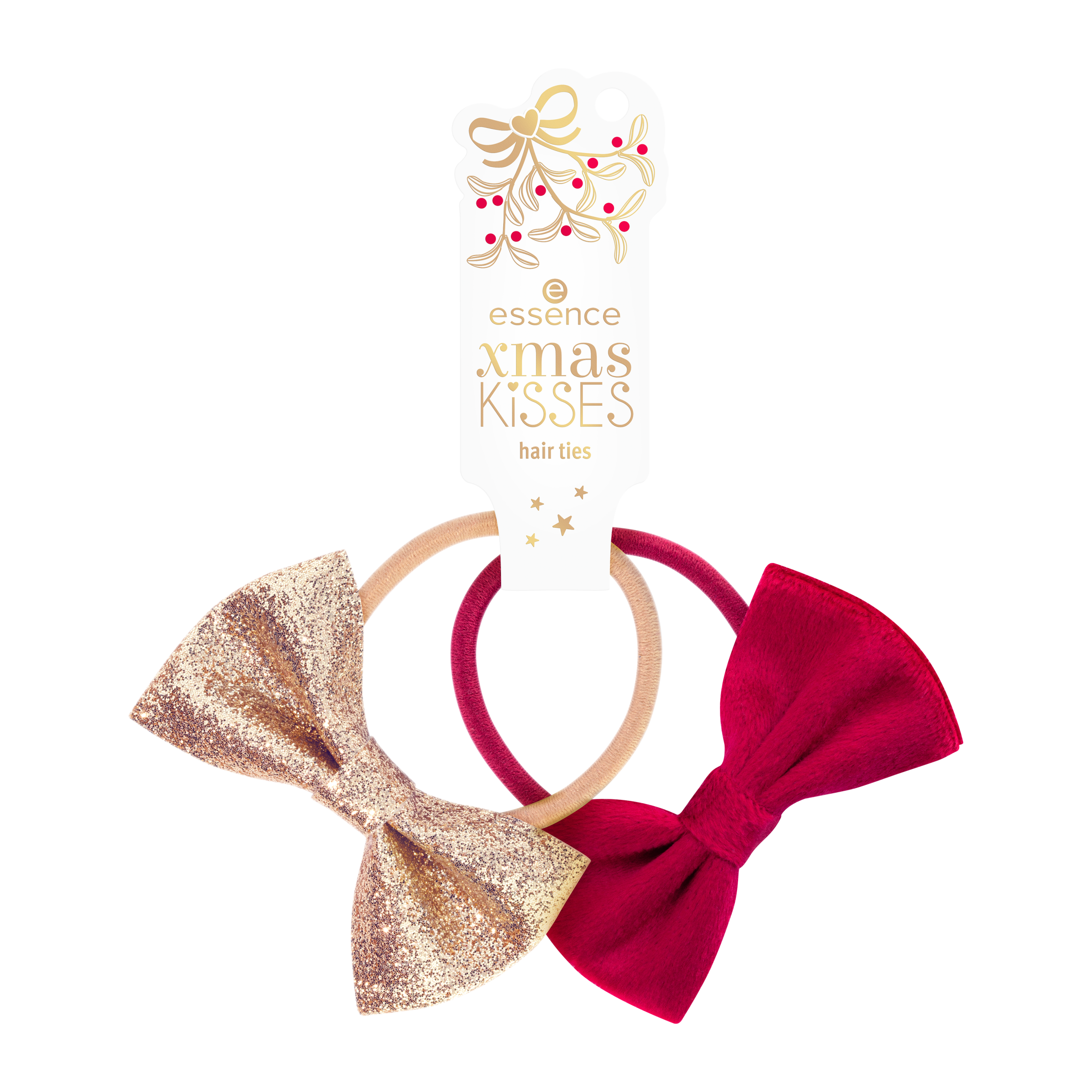Připravte své vlasy na Vánoce s essence xmas KISSES gumičkami do vlasů 01 Mistletoe’s Bow, Kiss below! Sada obsahuje dvě elegantní gumičky na vlasy. Jedna je z hedvábně jemné a sametové červené tkaniny, druhá v zářivě zlatém odstínu s třpytivými částečkami. Flexibilní gumička pohodlně udrží vaše vlasy na místě po celý den a zároveň dodá vánočnímu outfitu sváteční detail.