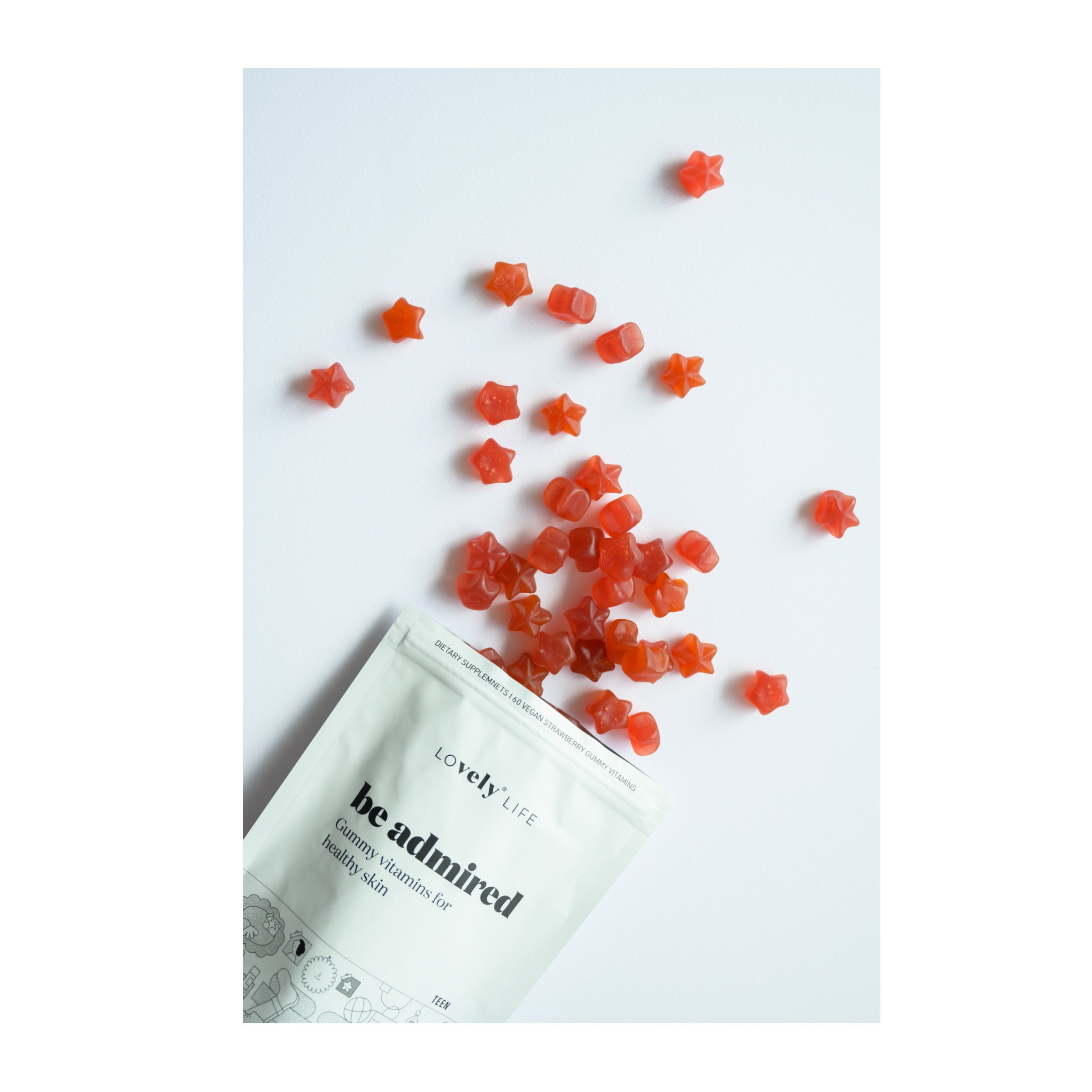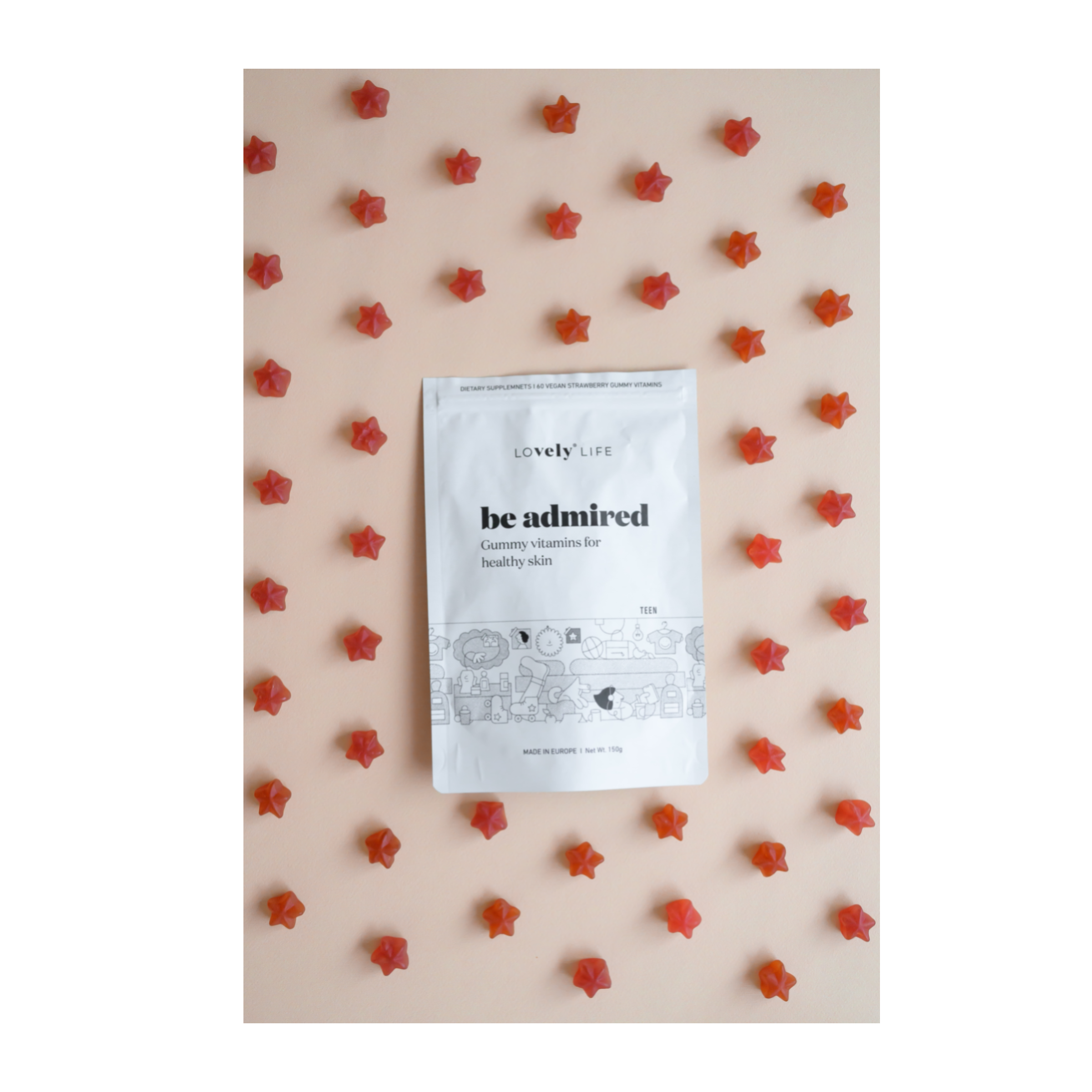 Formule Vely be admired vyvinutá farmaceuty – pro nejkrásnější verzi tebe samé. Komplex 13 šťavnatých vitamínů, minerálů a antioxidantů, pomáhá zbavit se nedokonalostí pleti, bojuje proti stárnutí, přispívá k správné funkci pokožky, komplexně podporuje zdravou pleť, lahodná cesta ke zdravé pleti v ekologickém balení, Gumové vitamíny pro zdravou pleť be admired ti dodají množství potřebných živin, které tě zbaví nedostatků na tvé tváři.