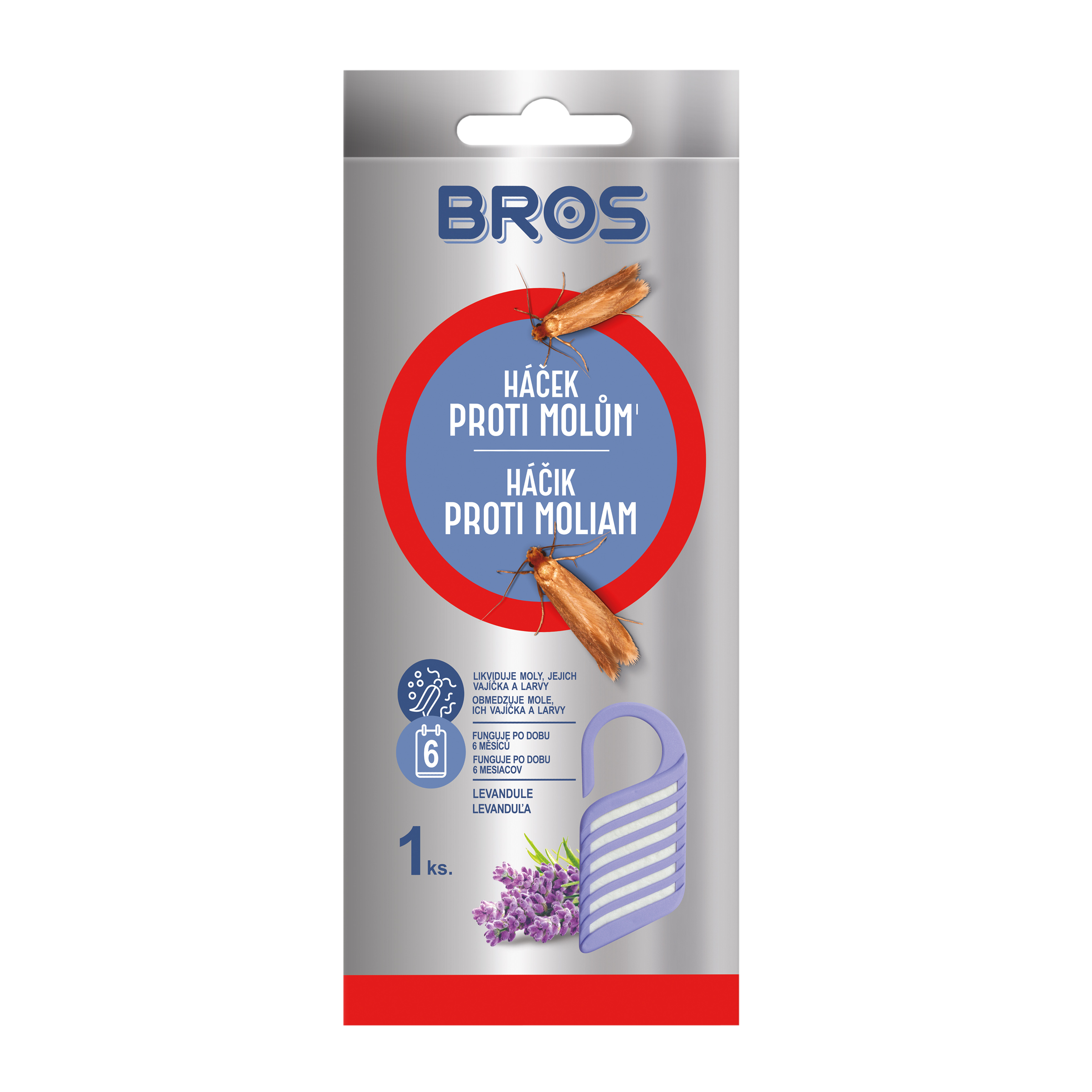 Účinně chrání oblečení v šatnách, zásuvkách a šatních skříních před poškozením moly. Chrání po dobu až 6 měsíců před šatními moly ve všech fázích vývoje - likviduje vajíčka, larvy a dospělé jedince. Dodává oděvům čerstvou a příjemnou vůni.