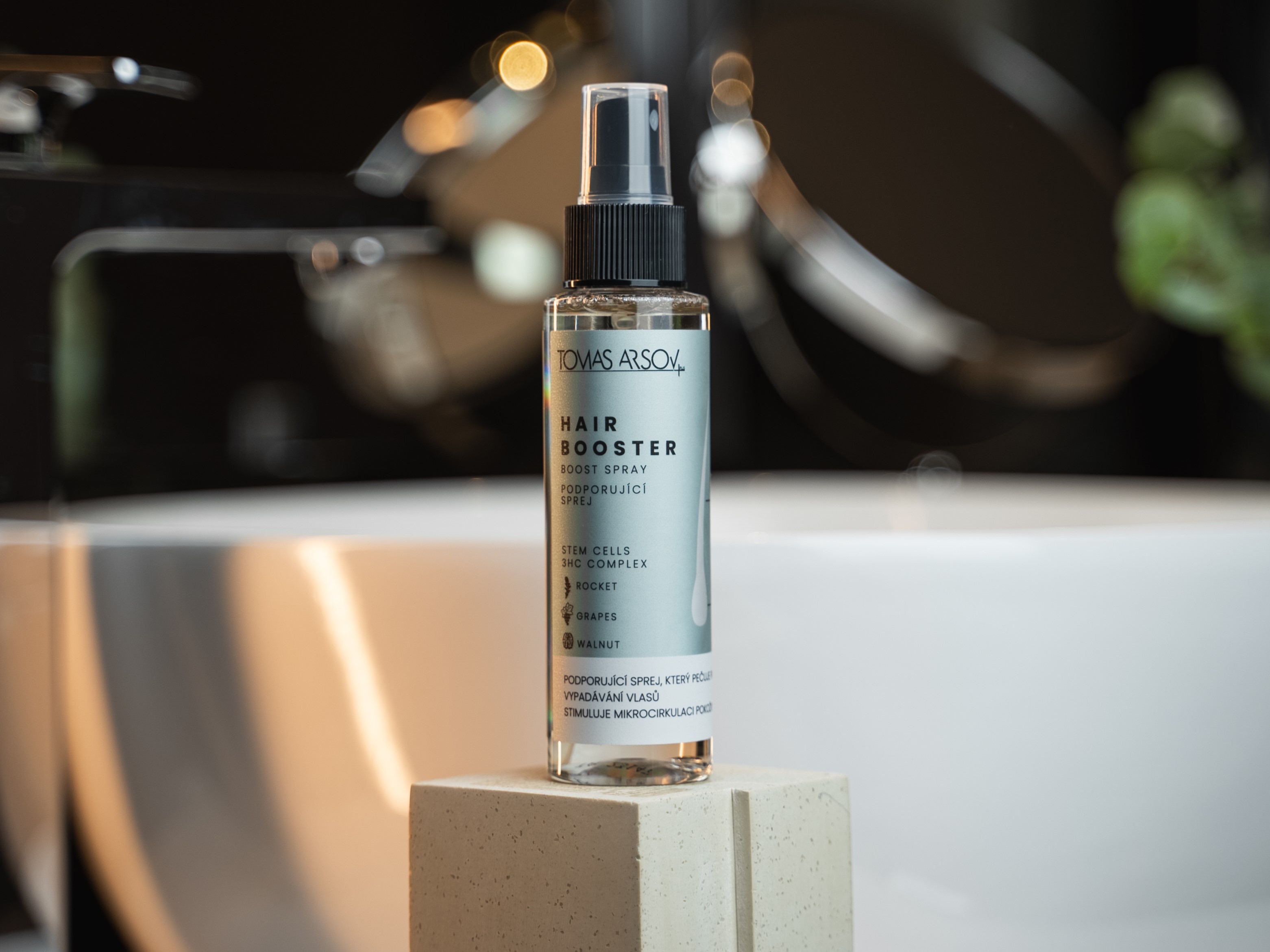 Hair Booster dlouhodobě stimuluje buněčný růst a aktivně podporuje růst vlasů. Díky svému složení chrání pokožku hlavy a podporuje její prokrvení. Kombinace řady důležitých vitaminů a 3HC komplexu - kmenových buněk zeleného vlašského ořechu, hroznového vína a rukoly zpomaluje proces stárnutí vlasové pokožky a má antioxidační účinky.