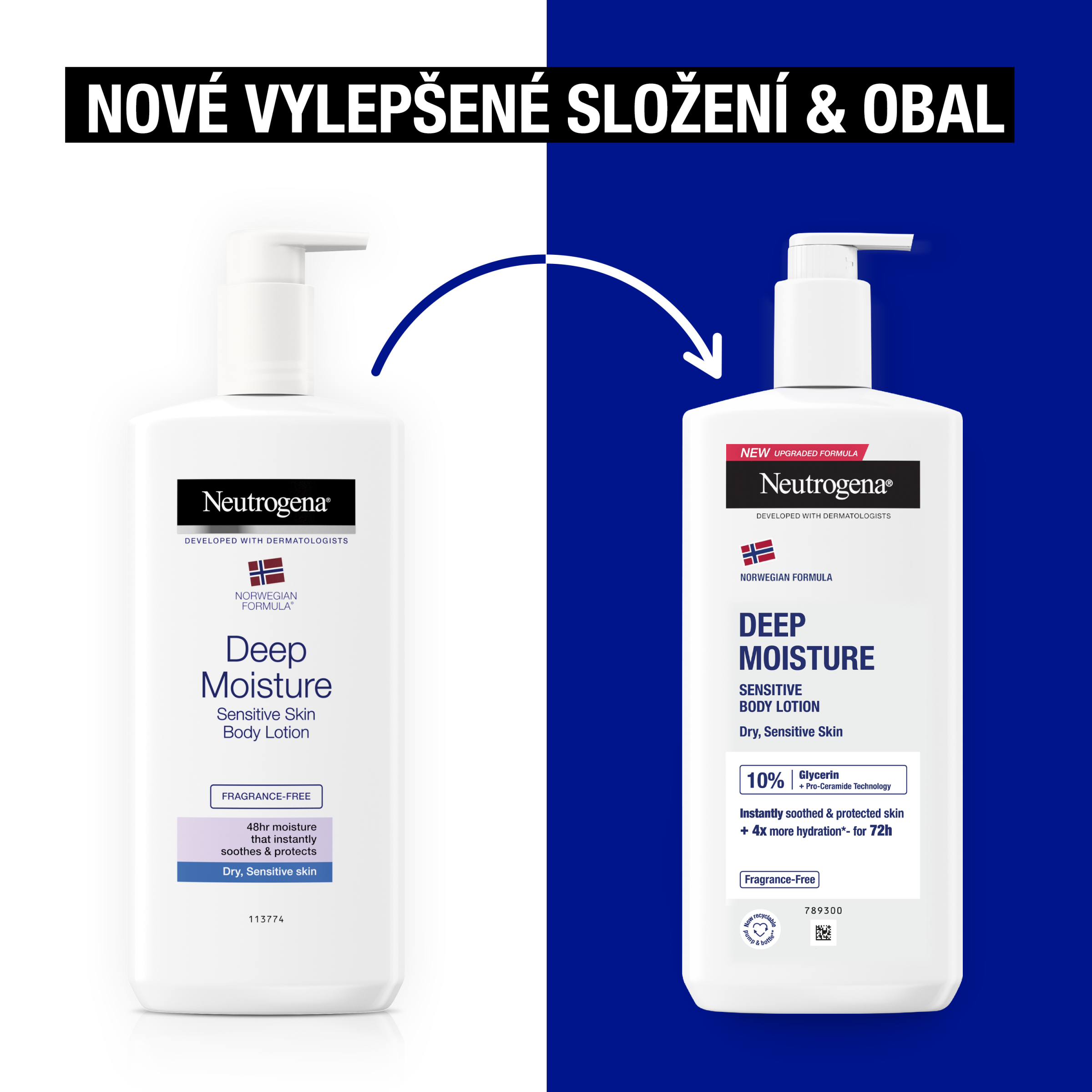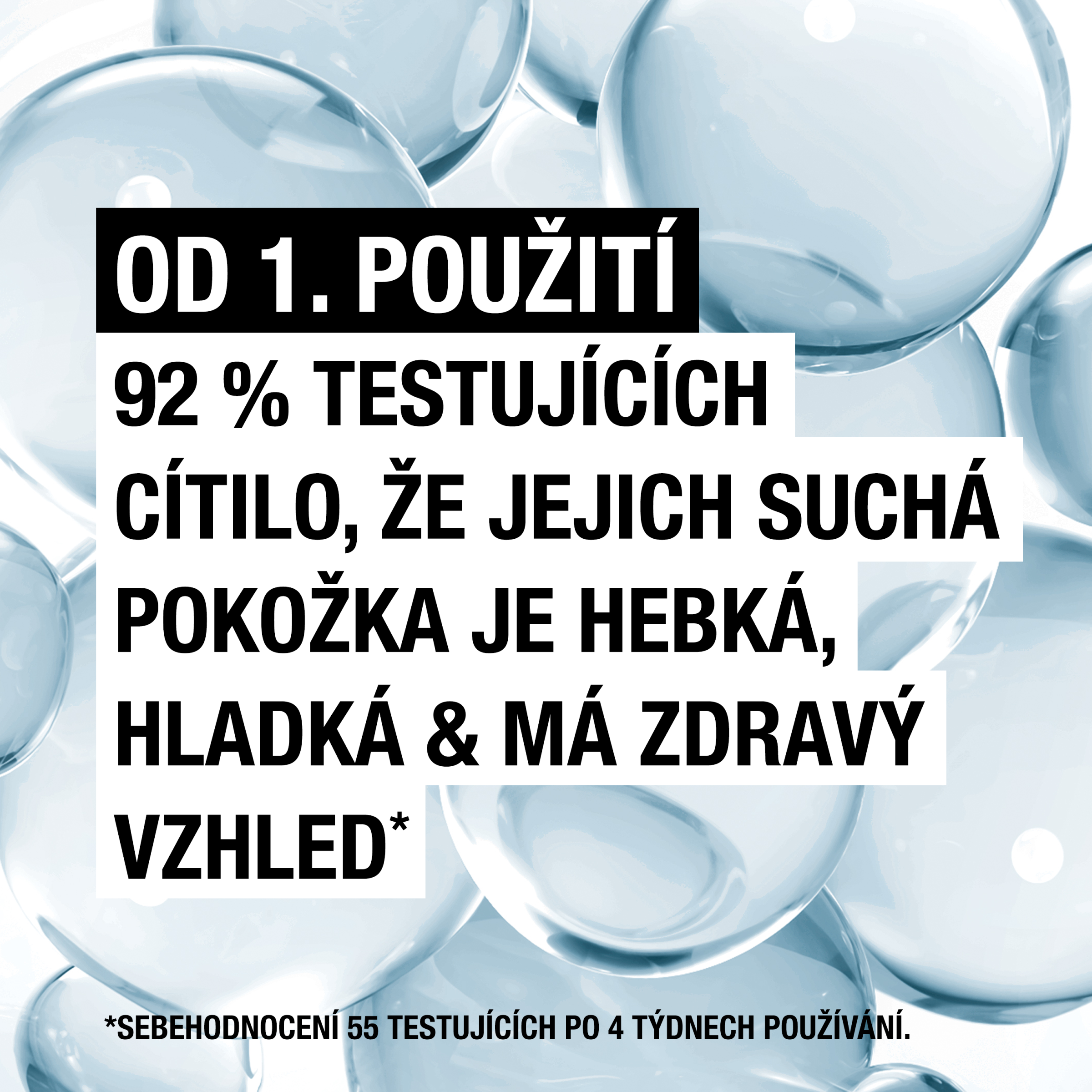 Dermatologicky testovano pro použití na suchou a citlivou pokožku. Toto neparfemované tělové mléko okamžitě zklidňuje a chrání pokožku tím, že jí okamžitě dodává 4x více hydratace & poskytuje o 85 % silnější kožní bariéru* - pro intenzivní hydrataci po dobu 72 hodin. Kožní bariéra, tvořená více než 100 ceramidy, udržuje přirozenou hydrataci a zdravý vzhled pokožky. Pokud je vaše kůže suchá, je čas na doplnění ceramidů. NOVÁ Pro-Ceramide technologie inovativním způsobem posiluje esenciální ceramidy pokožky. 92 % testujících cítilo, že jejich suchá pokožka je už po 1. použití hebká, hladká a má zdravý vzhled*. Okamžitě se vstřebává do pokožky, takže se můžete ihned po aplikaci obléknout. Nemastná textura. Složení s vysokou tolerancí vhodné pro citlivou pokožku - vyvinuto tak, aby se minimalizovalo riziko vzniku alergie.