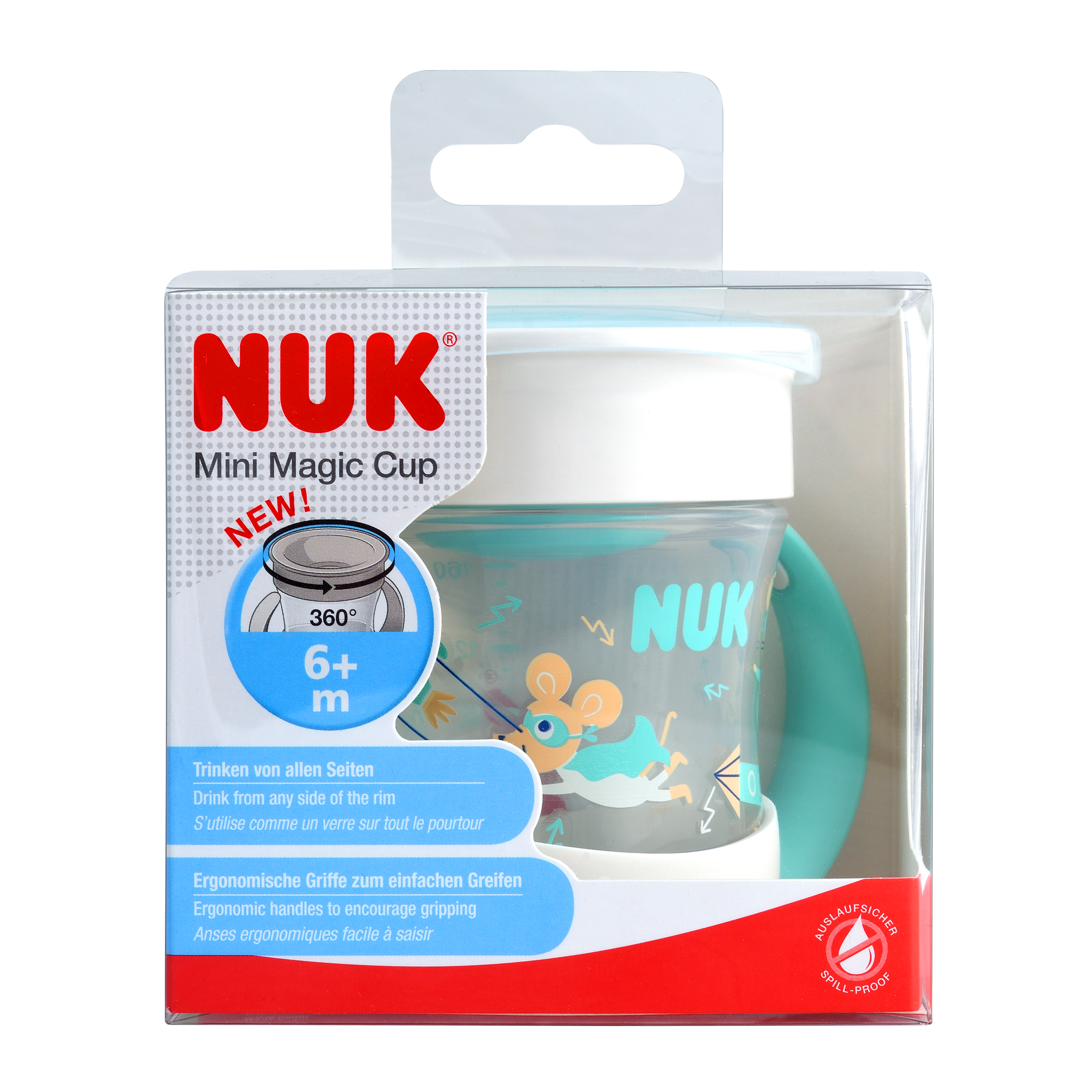 - dětský hrneček NUK Mini Magic Cup, 160 ml, jedinečný pitný okraj, těsnicí silikonový disk, od 6 měsíců, 1 kus