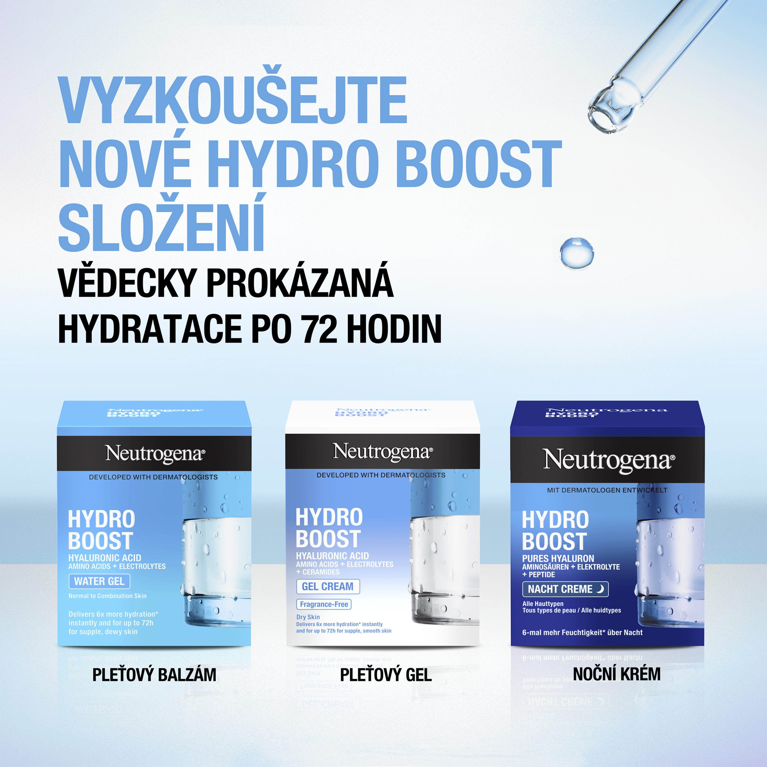 Pro suchou pleť. Obsahuje čistou kyselinu hyaluronovou + aminokyseliny + elektrolyty + ceramidy. 6× více hydratace** - po dobu 72 hodin. Tento neparfemovaný intenzivně pečující krém je obohacen o složky, které se také přirozeně vyskytují v kůži a podporují proces hydratace pokožky - obsahuje o 20 % více kyseliny hyaluronové*, aminokyseliny, elektrolyty a ceramidy. Je vědecky prokázáno, že Hydro Boost Gelový krém okamžitě dodává pokožce 6× více hydratace** - po dobu 72 hodin. Pro okamžitě hladkou a pružnou pleť a o 80 % silnější kožní bariéru po 2 týdnech.
