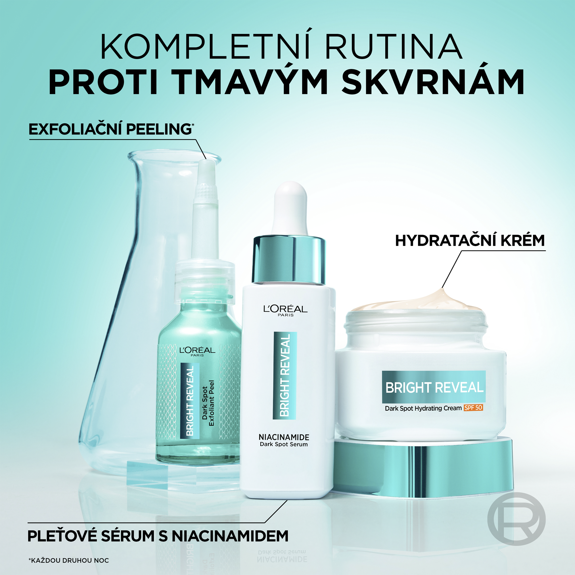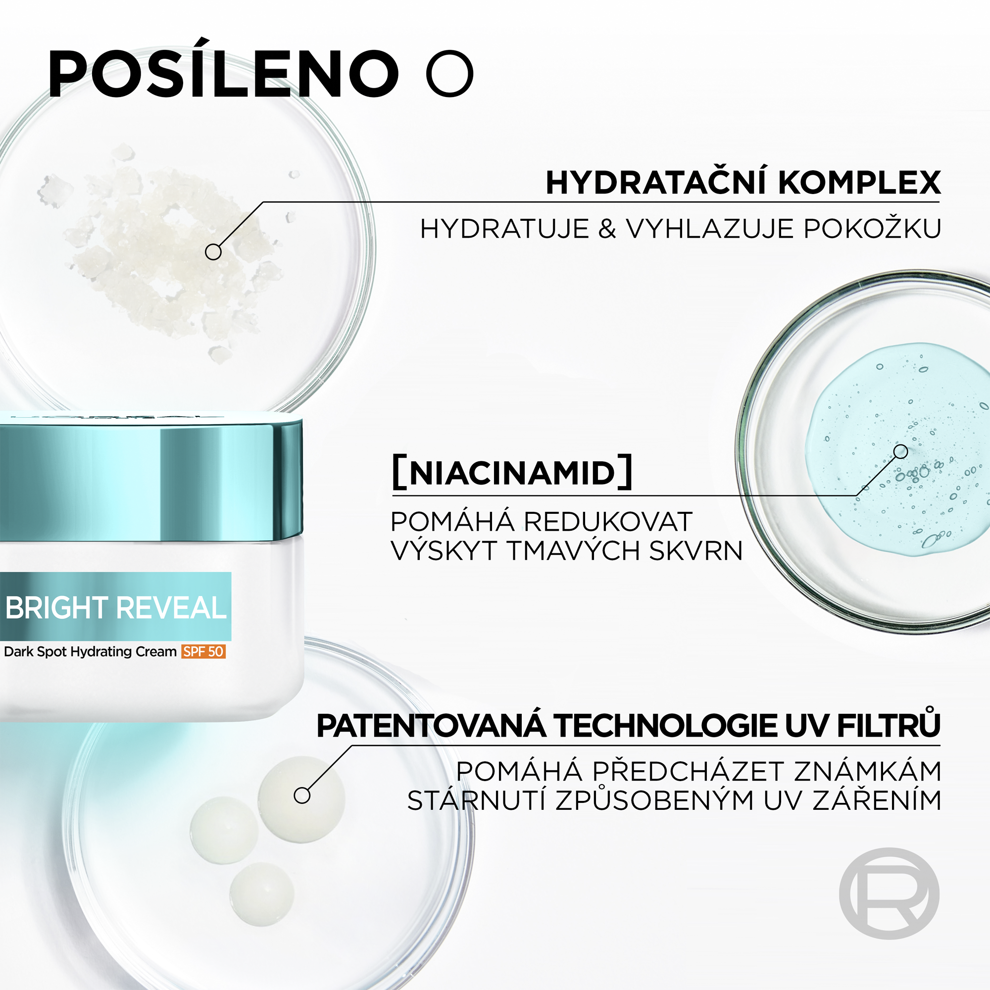Bright Reveal Hydratační krém proti tmavým skvrnám poskytuje vysokou ochranu proti UVB a UVA záření a zároveň předchází známkám stárnutí a vzniku tmavých skvrn způsobených slunečním zářením. Obohacený o hydratační komplex a niacinamid, hydratuje, rozjasňuje a sjednocuje pleť.