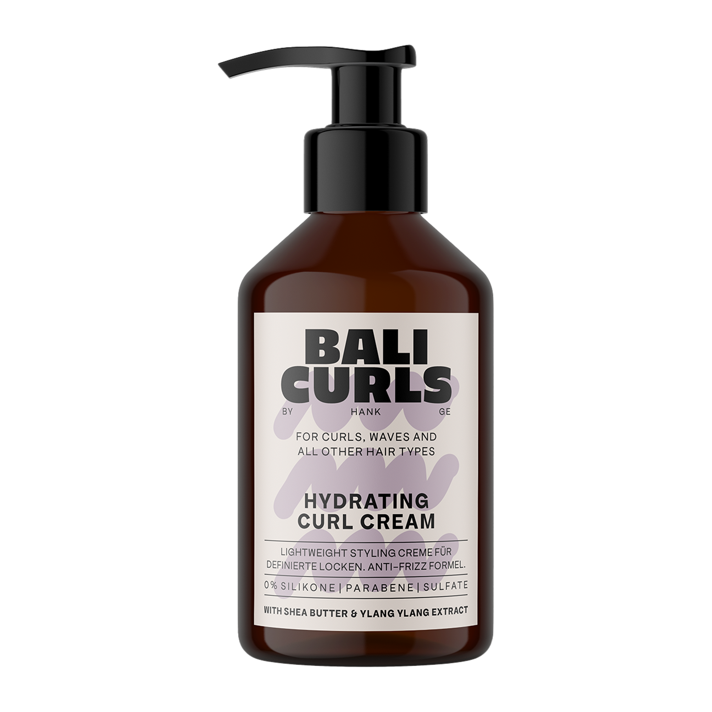 Bali Curls hydratační leave-in pro vlnité a kudrnaté vlasy či pro vlasy suché, pevné, barvené, nepoddajné a krepaté. Obsahuje bambucké máslo a ylang ylang. Je ideální pro dodání hydratace a pro přípravu vlasů na další styling. Zanechává vlasy vyživené a pružné. Účinně je také zbavuje krepatění. Nezatěžuje, vhodný i pro jemné vlasy.