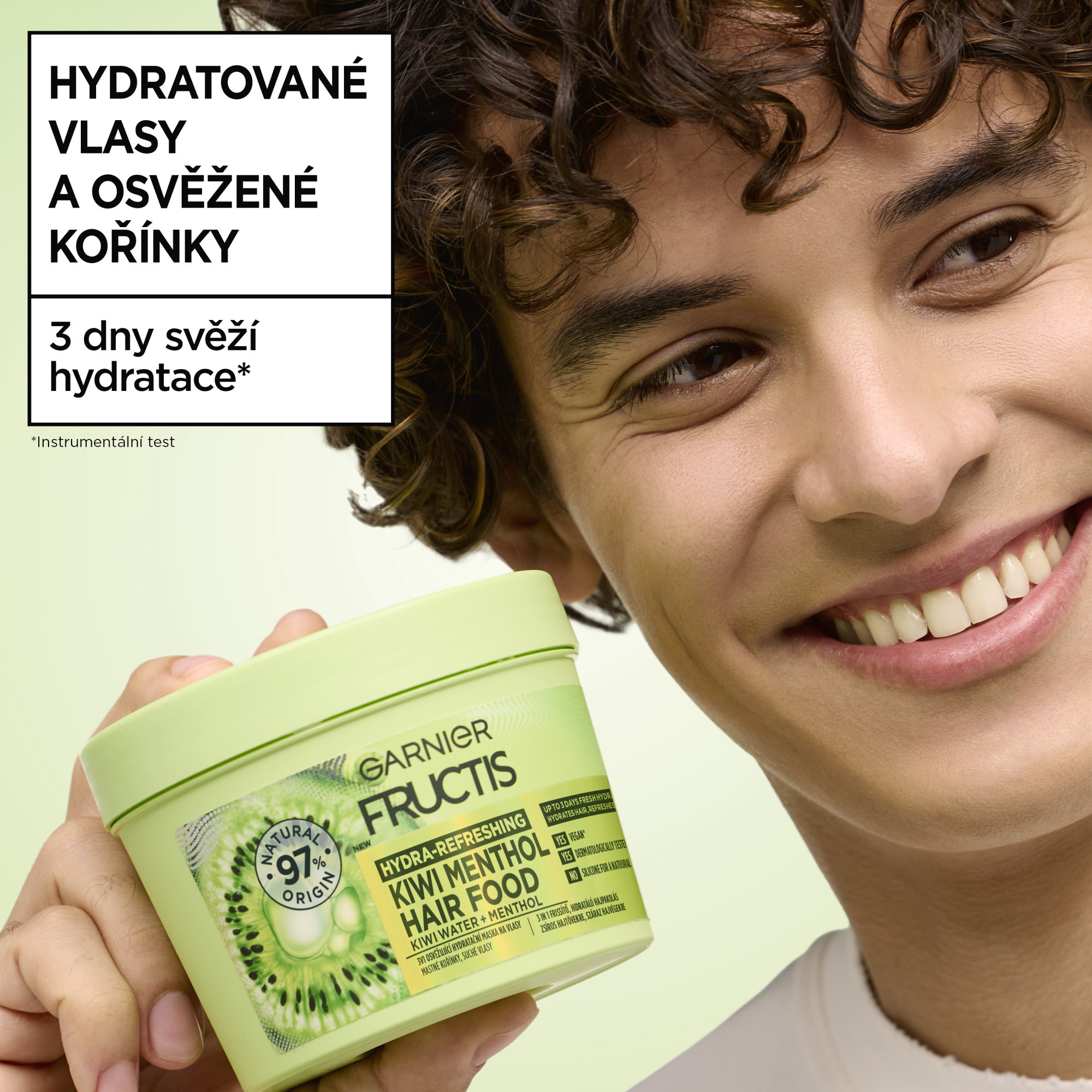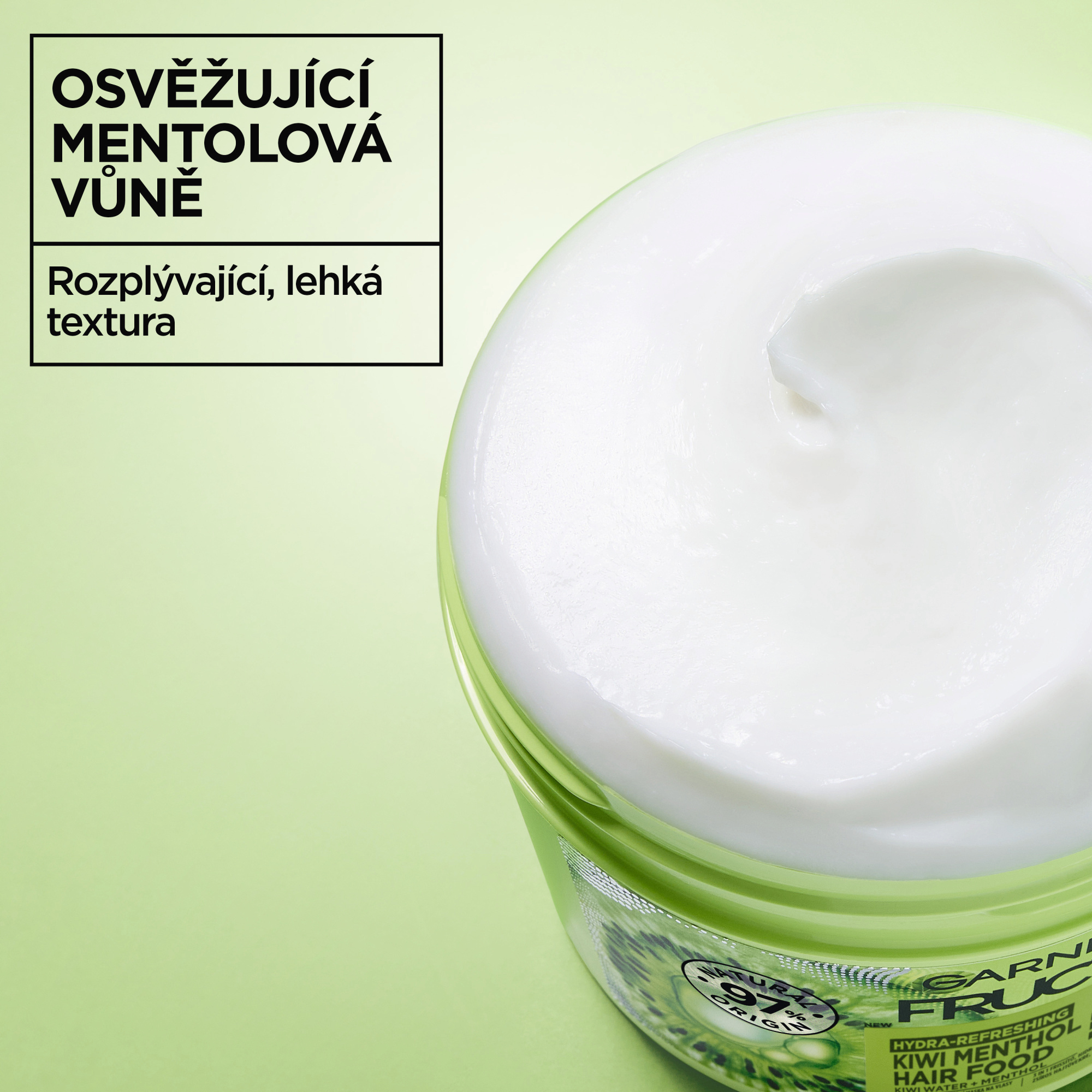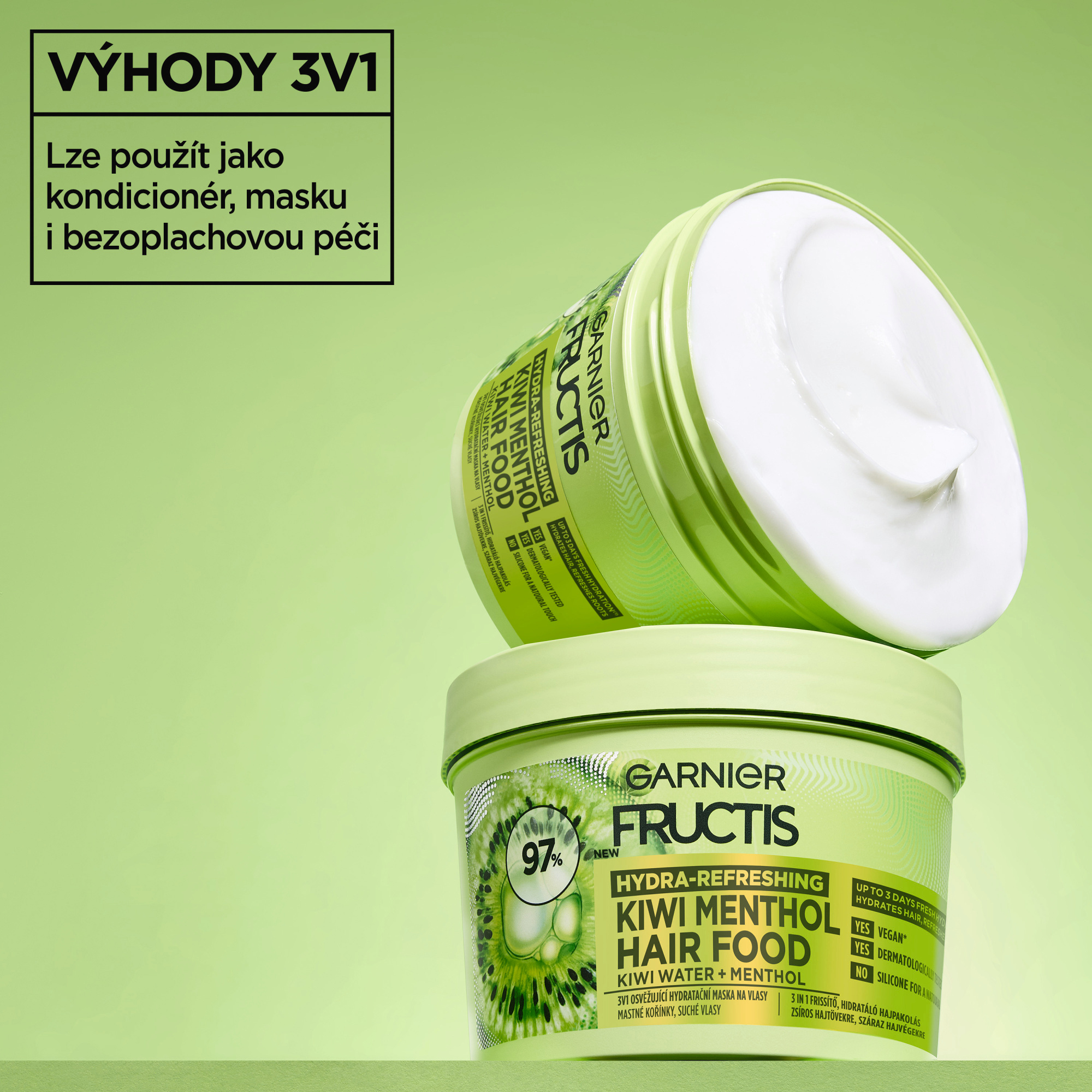 Garnier Fructis 3v1 Osvěžující hydratační maska na vlasy s kiwi a mentolem okamžitě osvěžuje vlasy bez zatížení. Maska na vlasy se 3 možnostmi použití:
