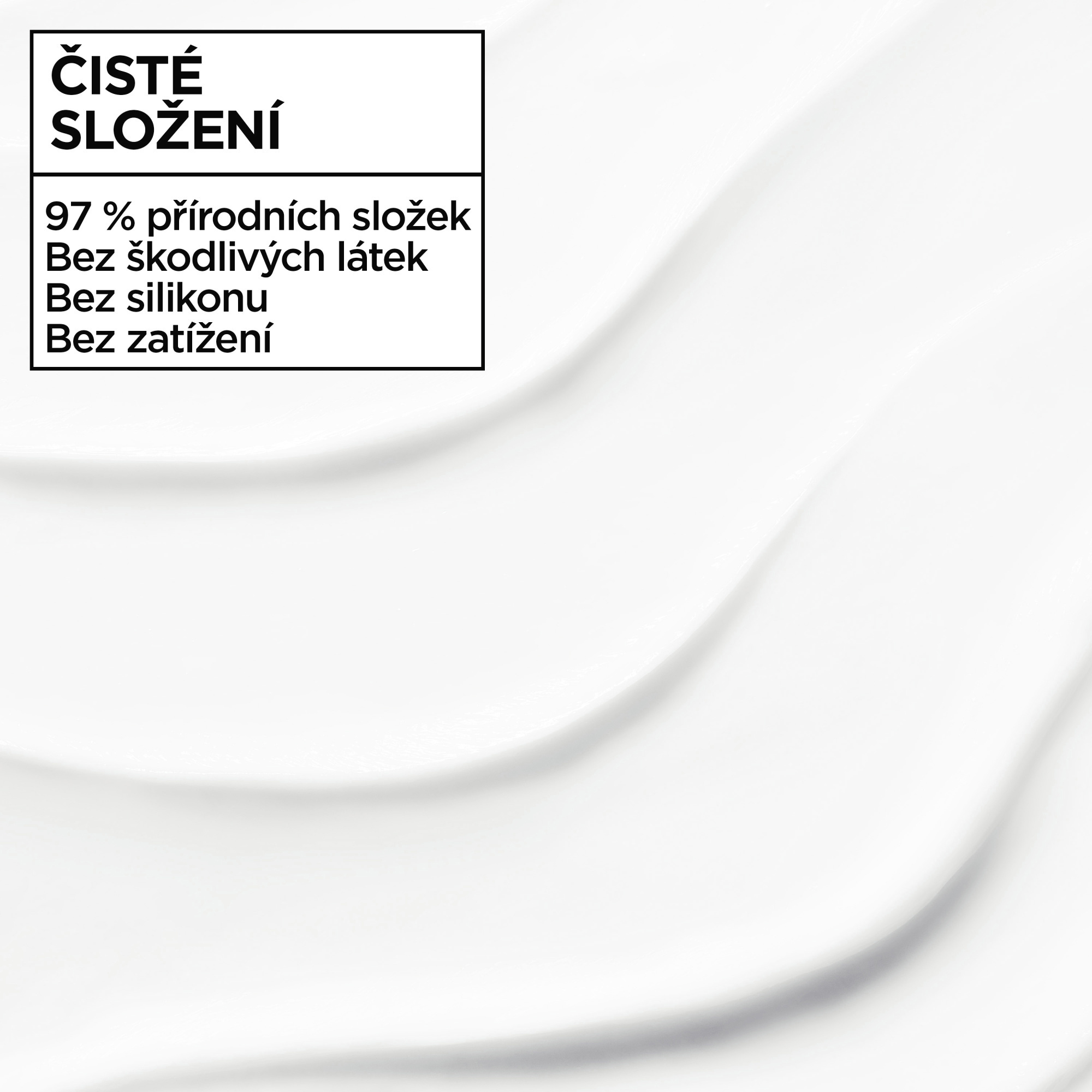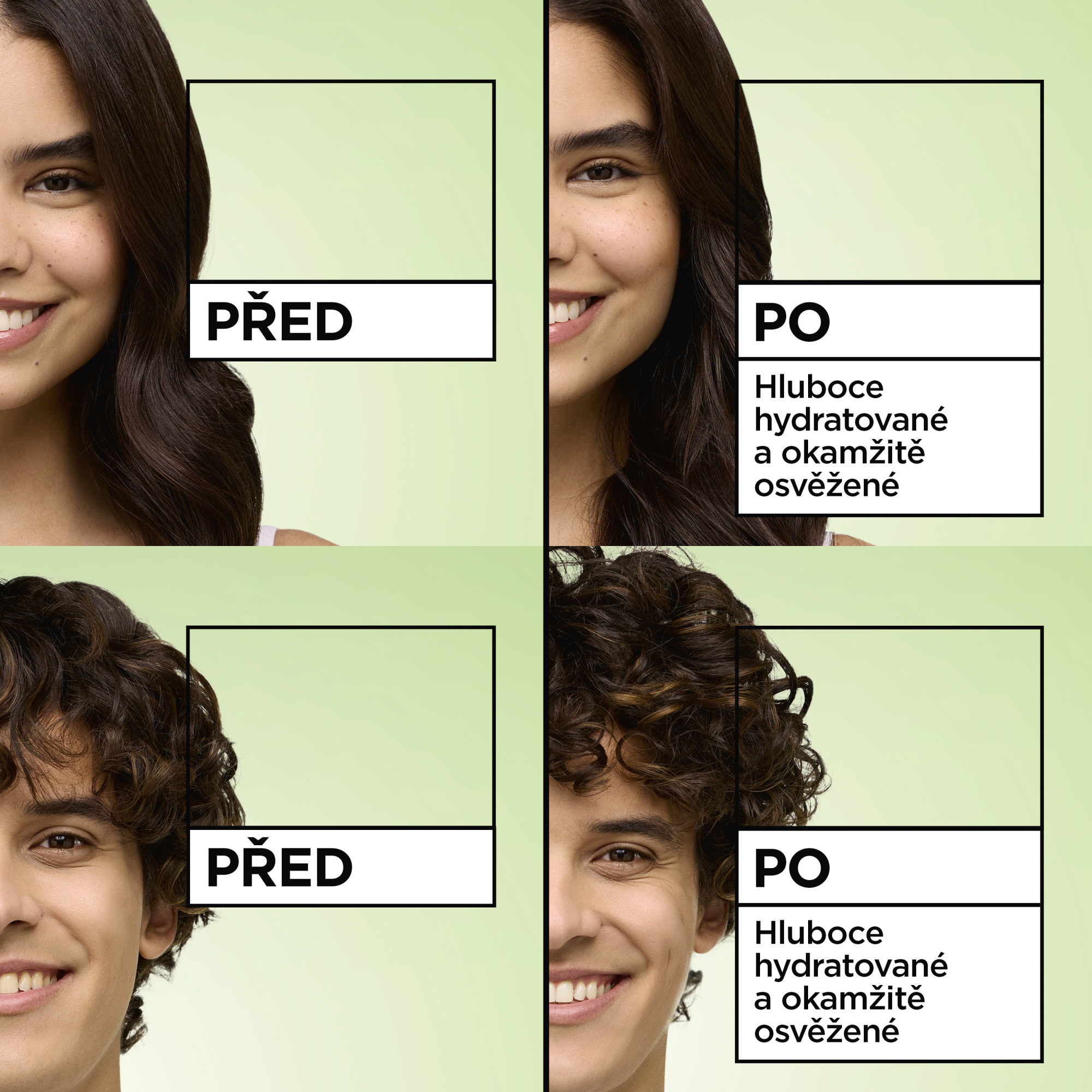Veganské složení s 97 % přírodních složek. Zaměřuje se na mastné kořínky a suché vlasy, vhodné pro všechny typy vlasů. Po použití jsou vlasy hloubkově hydratované a okamžitě osvěžené. Výsledek: až 3 dny svěží hydratace.