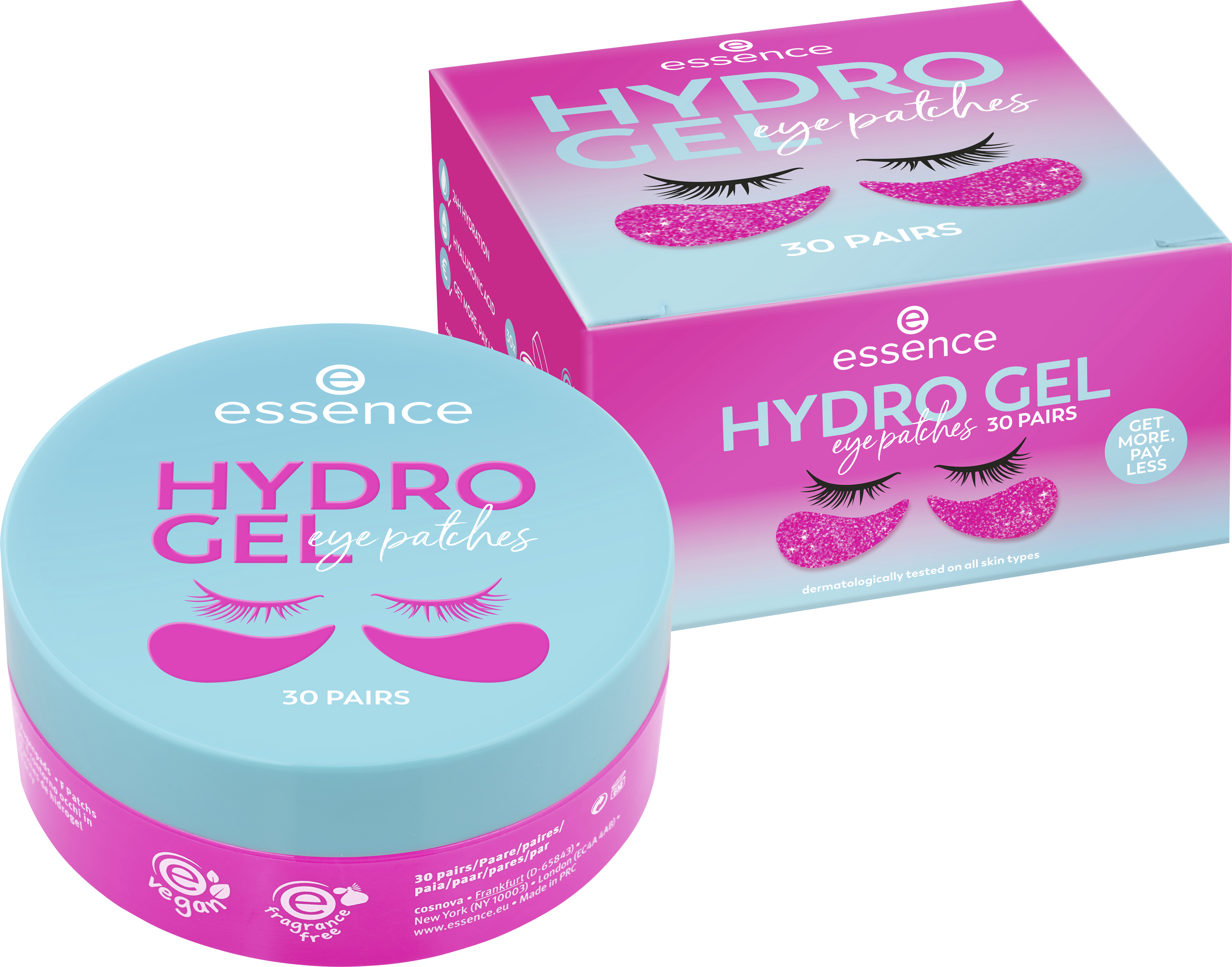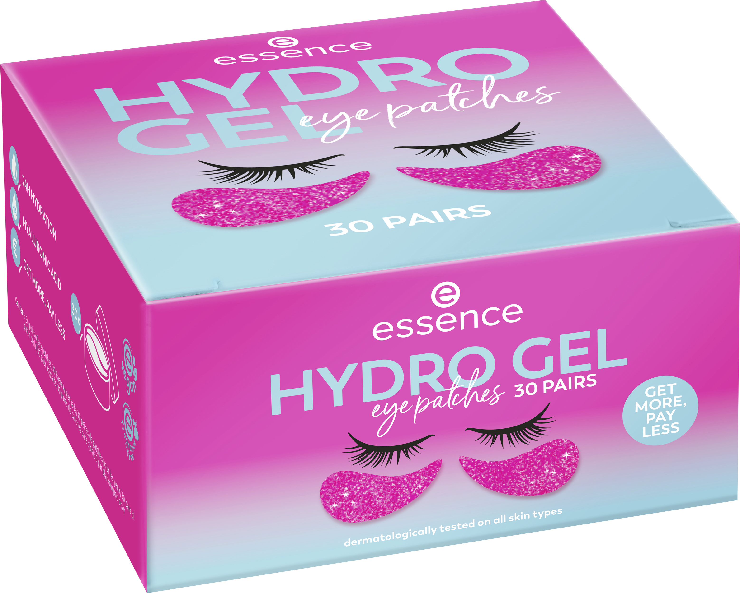 Mimořádná péče o oční okolí – žádný problém díky hydrogelovým polštářkům pod oči essence. Polštářky pod oči obsahují kyselinu hyaluronovou a poskytují hydrataci až na 24 hodin. Dermatologicky testováno na všech typech pleti.