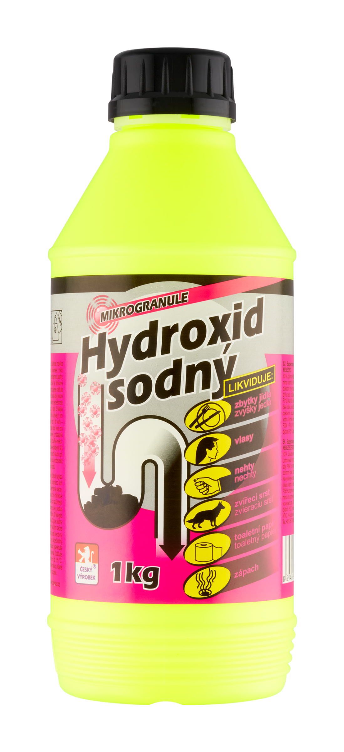 Hydroxid sodný je základní chemická surovina pro obecně známé použití. Jeho účinnost nejvíce oceníte v sifonech umyvadel, van, dřezů, sprchových koutů a v různých potrubích. Dokonale z nich odstraní vlasy, chlupy, zvířecí srst, nehty, zbytky potravin, toaletní papír a také nepříjemné pachy. Mikro perličky se velmi rychle rozpustí a efektivně odstraní usazeniny. Nelze používat na hliníkové potrubí!
