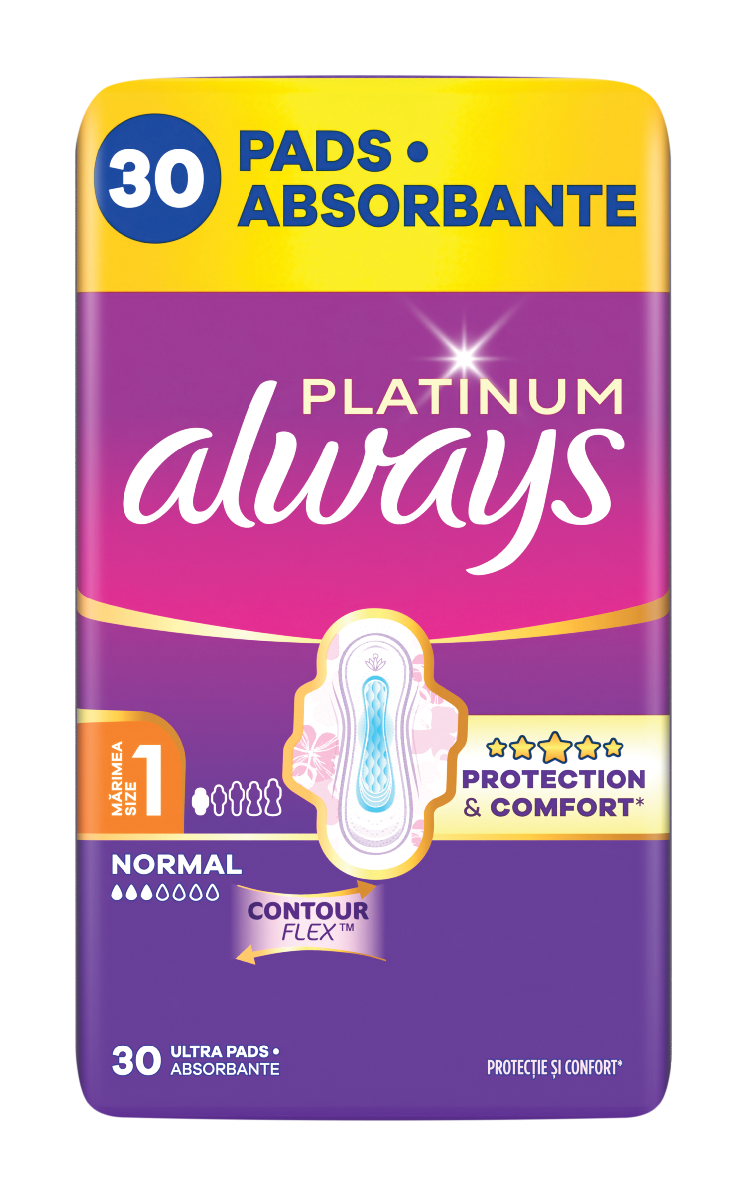 Hygienické vložky Always Platinum s křidélky ComforLock jsou navržené tak, aby vám lépe seděly* a zcela zabraňovaly protékání, posunování a nepohodlí. S hygienickými vložkami Always Platinum bude vaše menstruace to poslední, na co budete muset myslet. Hygienické vložky Always Platinum Normal (velikost 1) s křidélky jsou doporučovány pro použití během dne při slabé až středně silné menstruaci. Vyzkoušejte vložky Always Platinum Secure Night Extra (velikost 5), nejlepší hygienické vložky řady Always Platinum pro ochranu během noci. *v porovnání s předchozím produktem