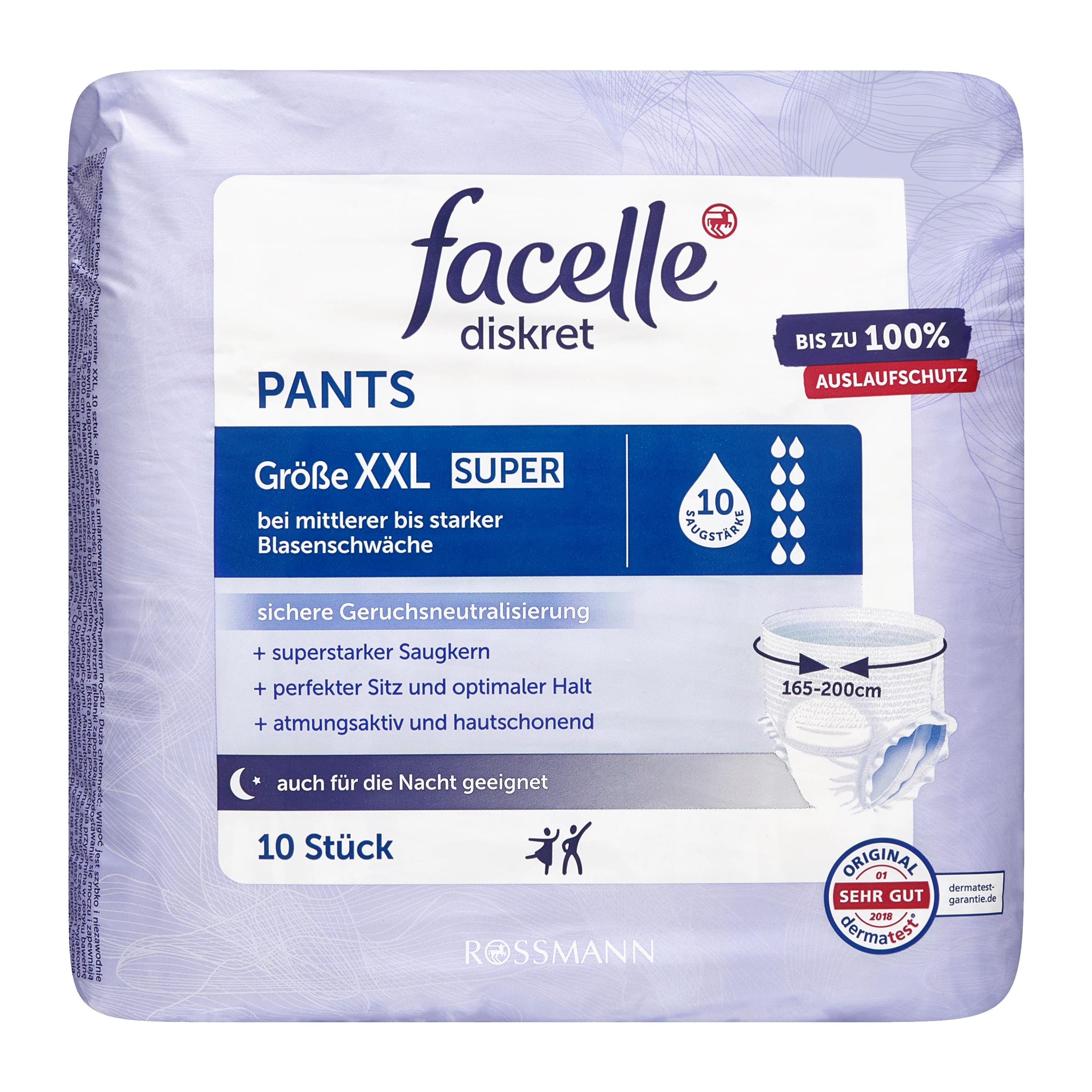 Užívejte si života a nenechte se omezovat slabostí močového měchýře! Diskrétní kalhoty facelle odvádějí tekutinu rychle a bezpečně do absorpční vložky pro dlouhotrvající pocit sucha. Elastické vnitřní manžety zabraňují úniku a zajišťují maximální bezpečnost. Extra měkký povrch působí jako bavlna a je příjemný na nošení. Šetrnost k pokožce byla potvrzena dermatologicky. Textilní a prodyšný vnější povrch je obzvláště měkký a diskrétní. Úzké savé tělo a optimální střih s extra měkkým materiálem v pase zajišťují nejlepší možný komfort při nošení. Jsou stejně diskrétní jako spodní prádlo a poskytují optimální ochranu v každodenním životě. Zápach je zachycen rychle a bezpečně. Pro příjemný a dlouhotrvající pocit svěžesti pochází výrobek z výroby s neutrálním obsahem CO2. Celulóza ve výrobku pochází z udržitelného materiálu z certifikovaných a kontrolovaných lesů a je bělena bez chlóru. Obal je zcela recyklovatelný.