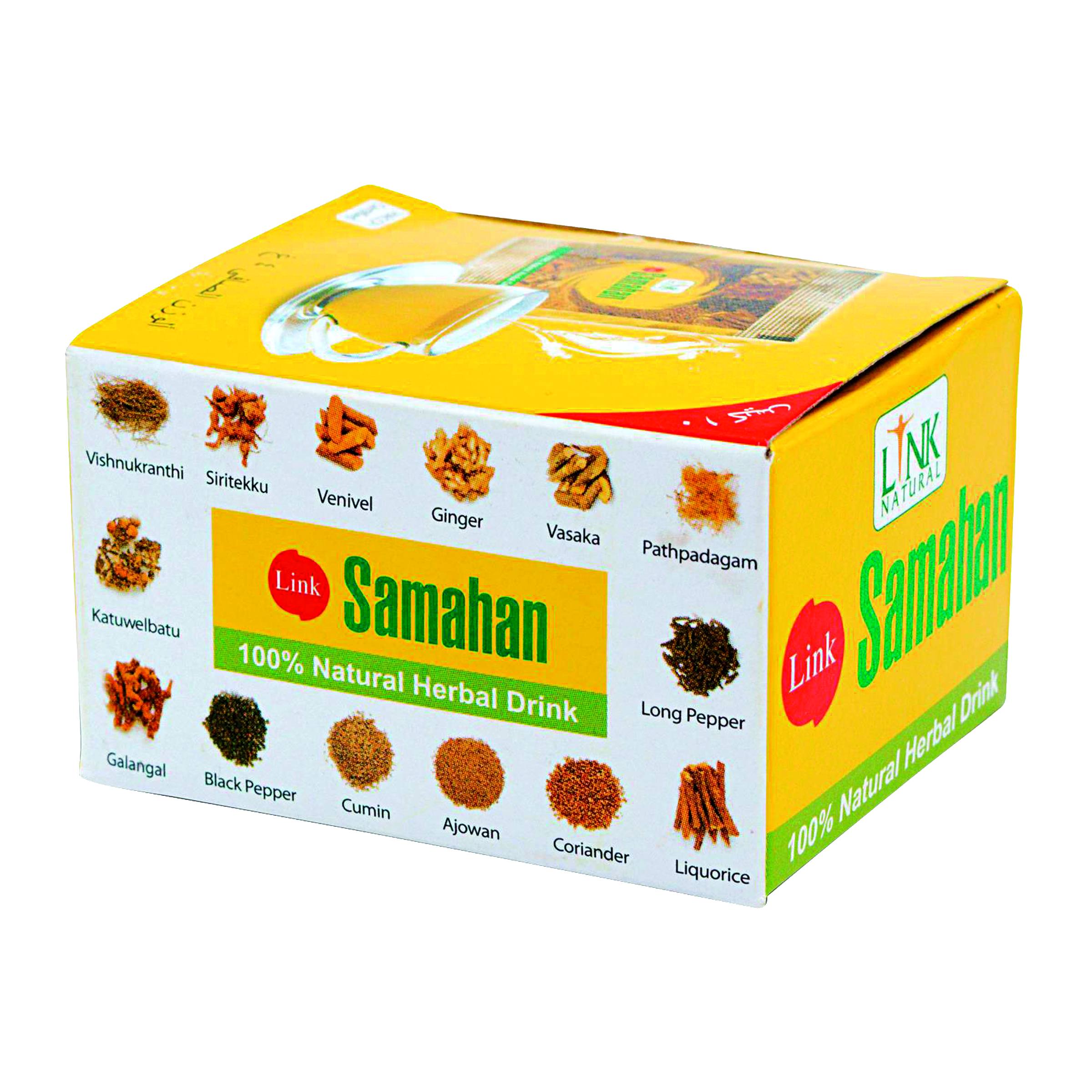 Samahan je tradiční bylinný nápoj, který se připravuje z jedinečné směsi 14 pečlivě vybraných bylin a koření. Receptura vychází ze starověkých ájurvédských znalostí a na Srí Lance je známá pod označením peyawa. Používá se jako přírodní podpora při nachlazení, kašli či oslabené imunitě.